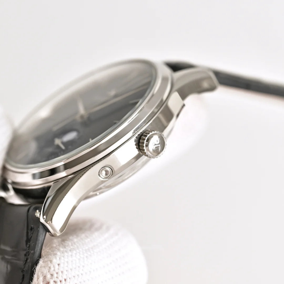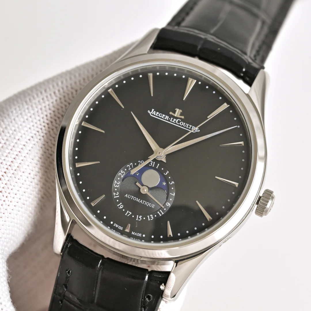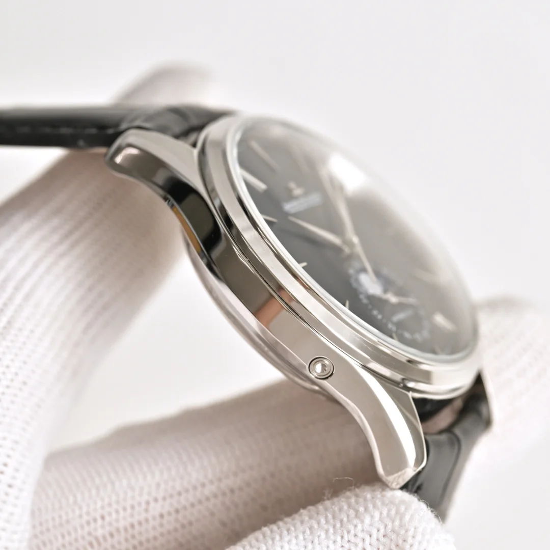 积家 JL 月相大师 表壳直径39mmX9.9mm六点钟的子盘为24小时同步时针功能 技术突破 采用海鸥2824改积家自产Cal.925/1机芯 功能百分百同步原装自产机芯 走时稳定 素质坚挺 细节突破 从侧面观察腕表盘面发现有微微的弧度 神韵和感觉能与原装相媲美 积家月相大师 满足您对的一切美好情怀 立即抢购