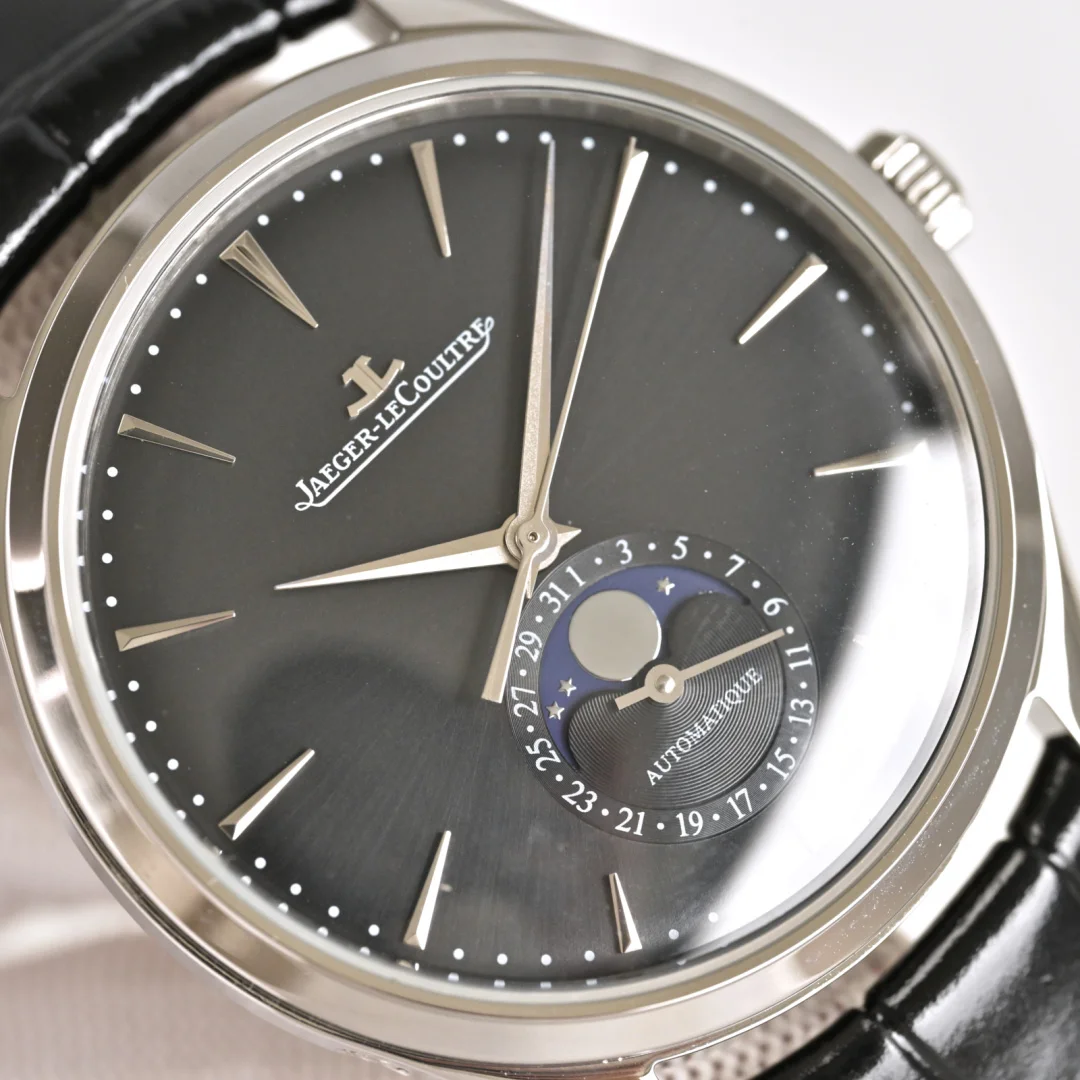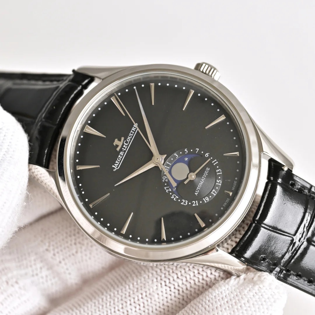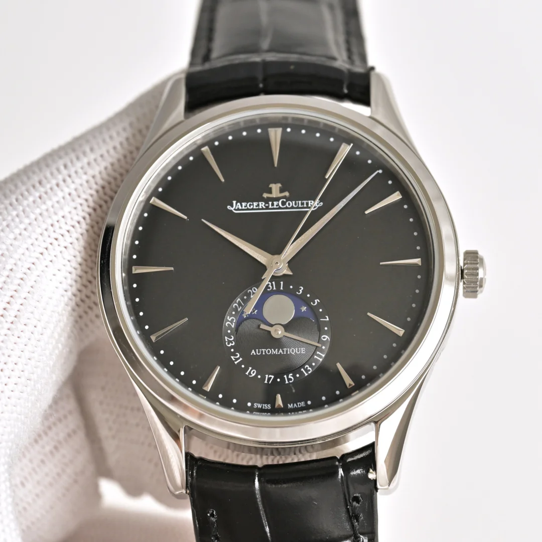 积家 JL 月相大师 表壳直径39mmX9.9mm六点钟的子盘为24小时同步时针功能 技术突破 采用海鸥2824改积家自产Cal.925/1机芯 功能百分百同步原装自产机芯 走时稳定 素质坚挺 细节突破 从侧面观察腕表盘面发现有微微的弧度 神韵和感觉能与原装相媲美 积家月相大师 满足您对的一切美好情怀 立即抢购