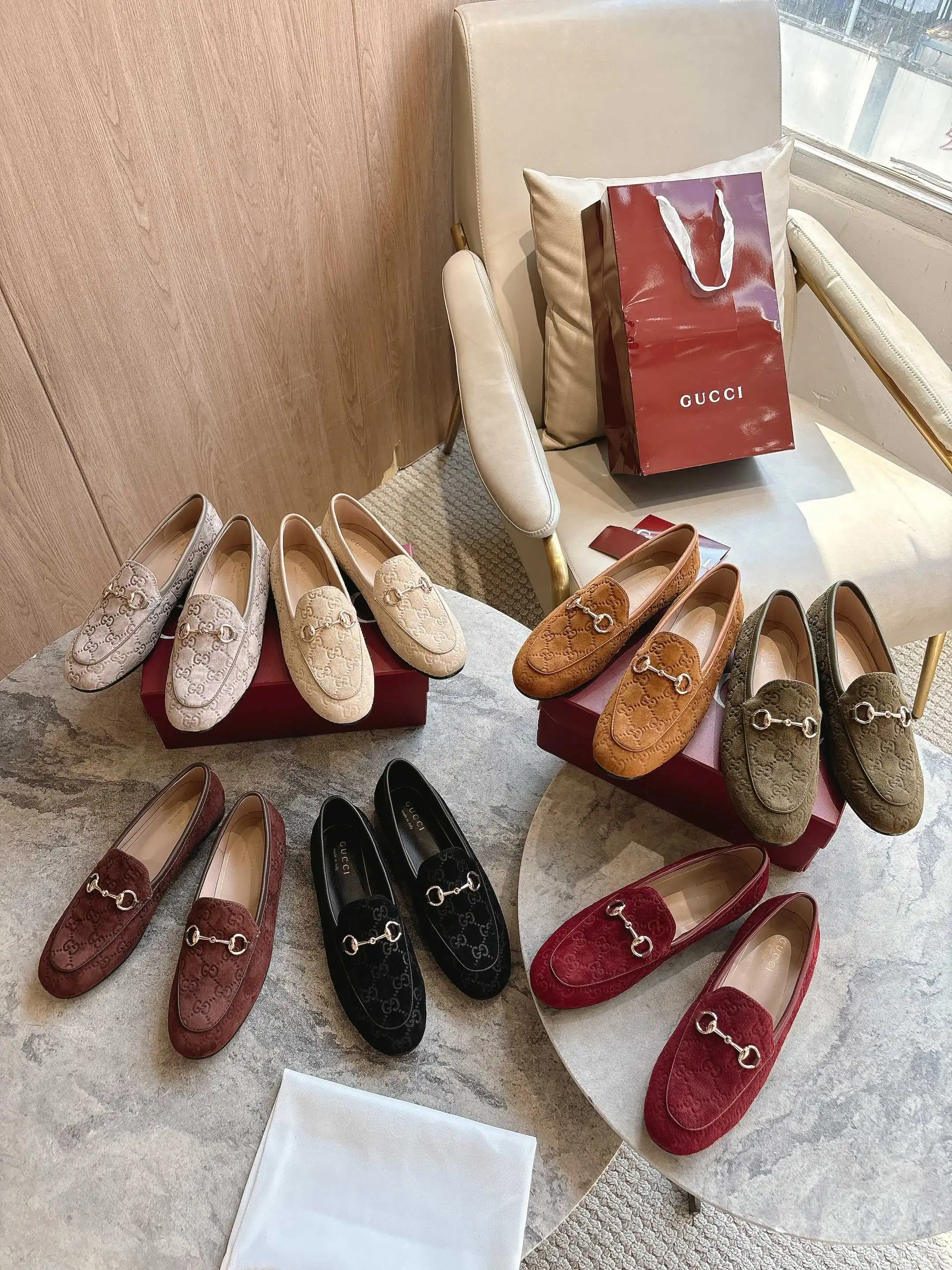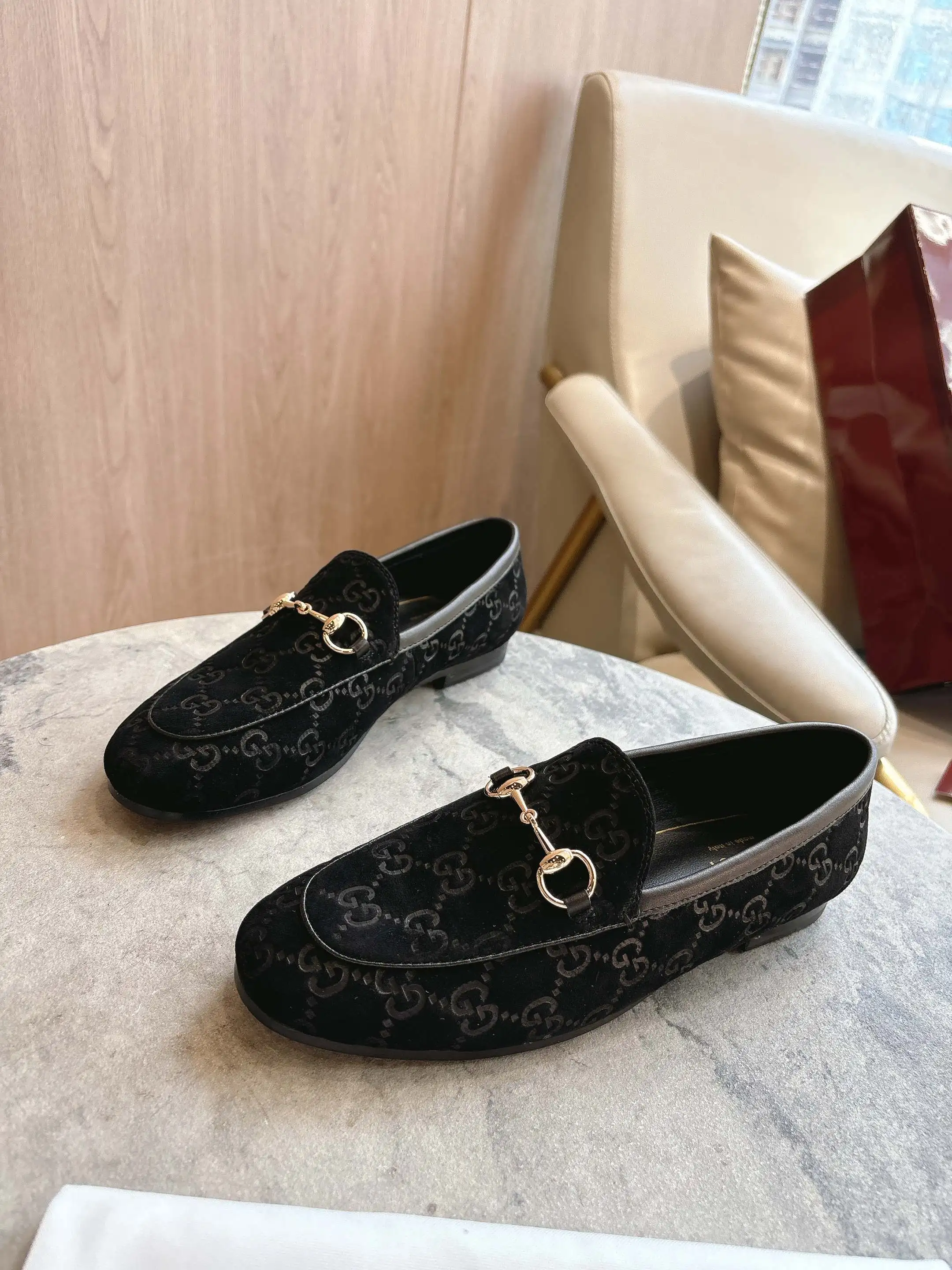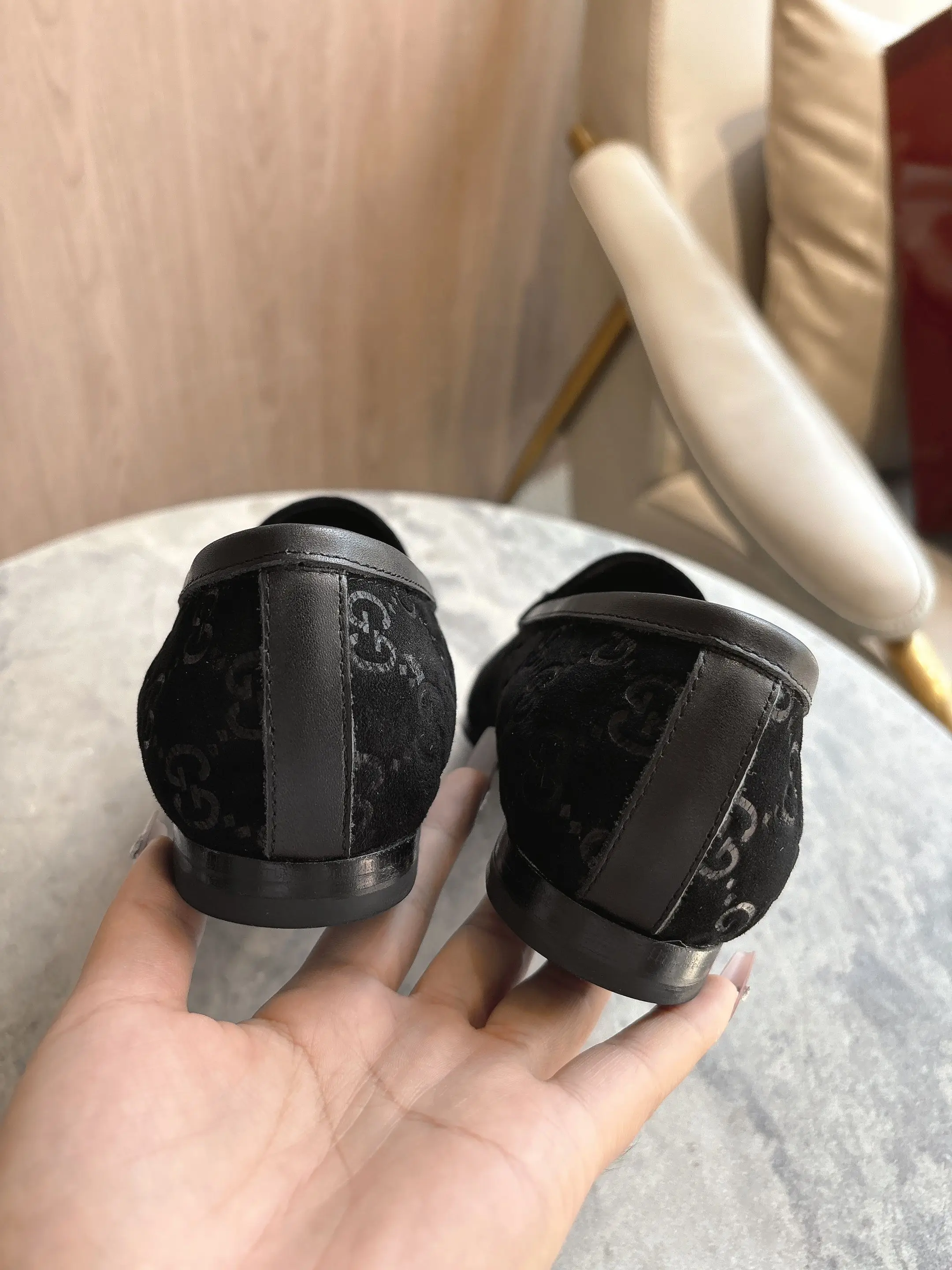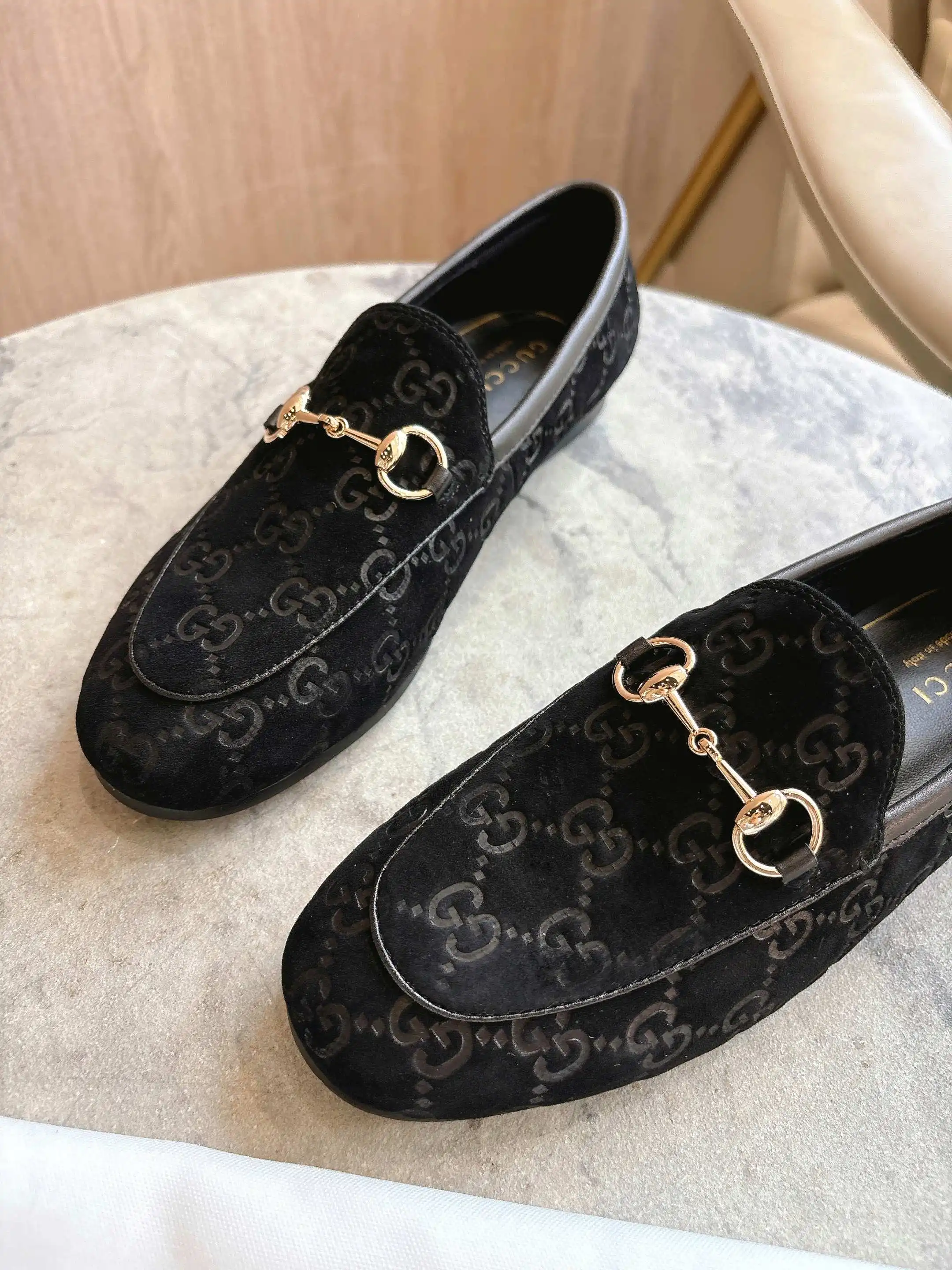 1819-10* 黑 35-42 作为Gucci设计传承的杰出代表 Jordaan系列饰马衔扣乐福鞋生动彰显经典优雅格调 这款鞋履采用品牌标志性字母交织图案光滑绒面材质 成就隽永经典 这款鞋履材质柔软 廓形精致流畅 彰显日常优雅风范