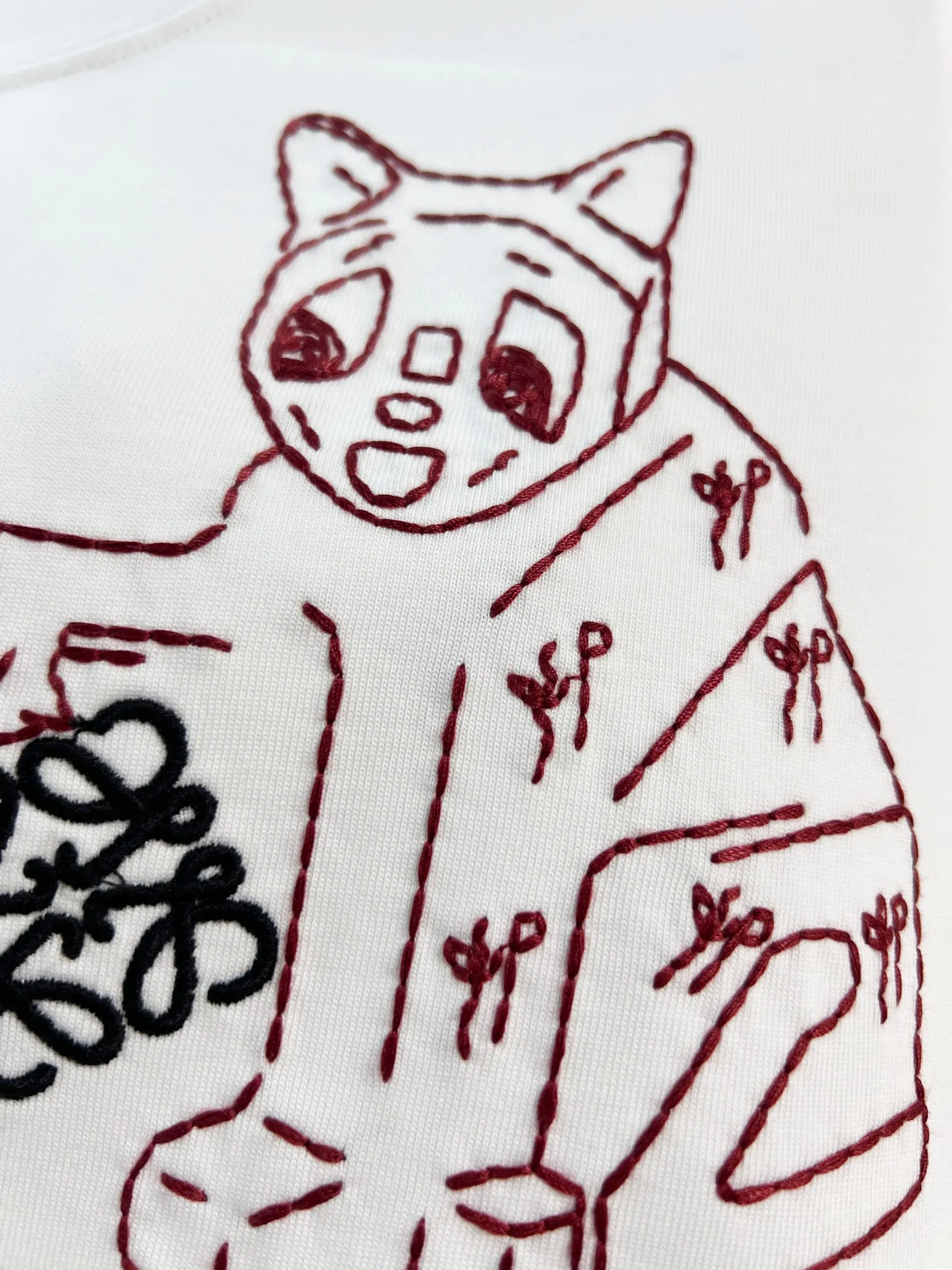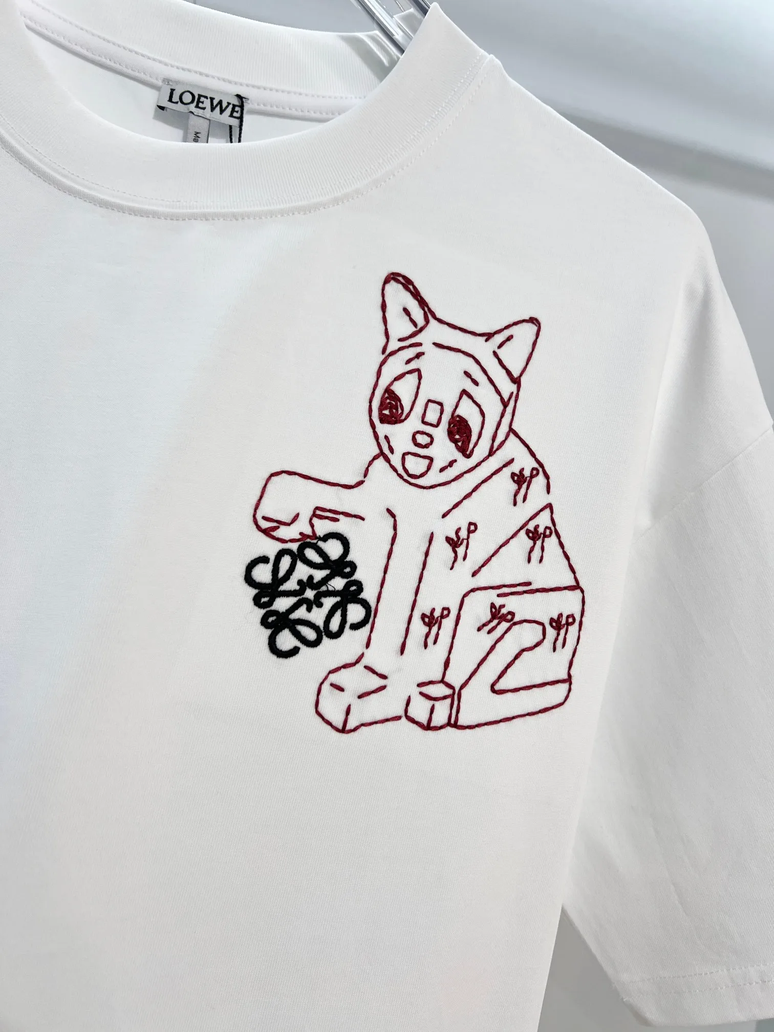 罗意威 小猫毛线球拼接刺绣字母克圆领短袖T恤