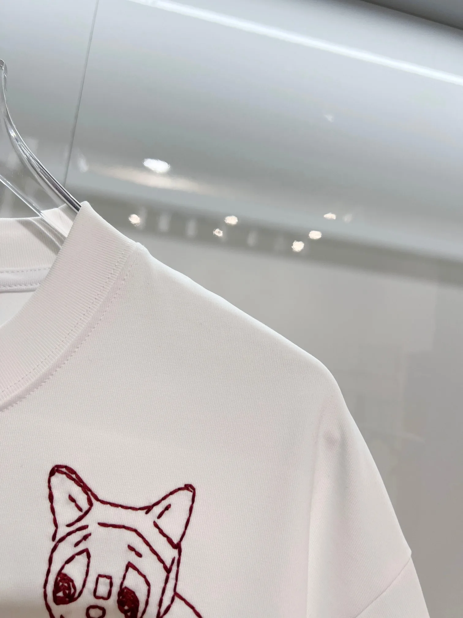 罗意威  小猫毛线球拼接刺绣字母克圆领短袖T恤