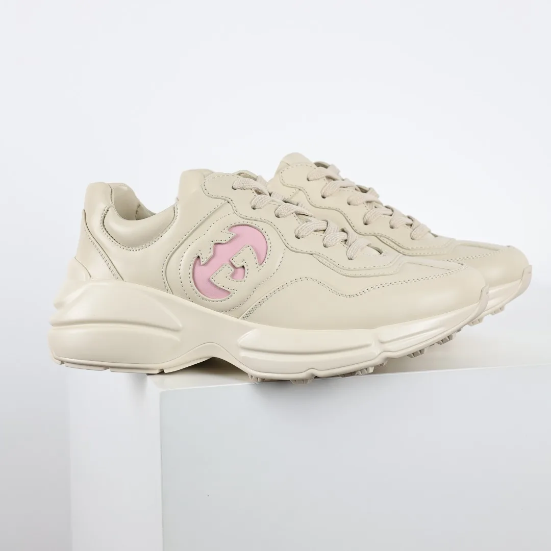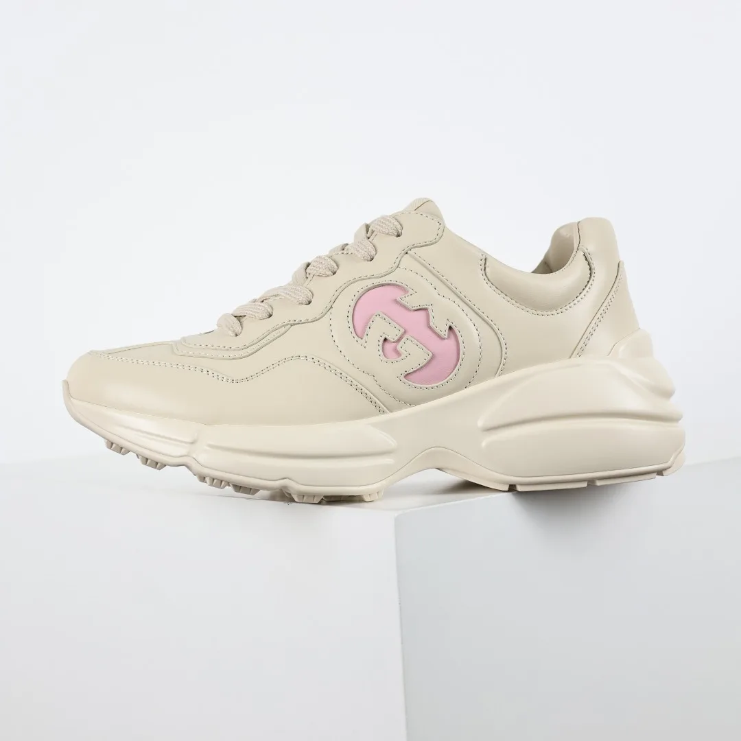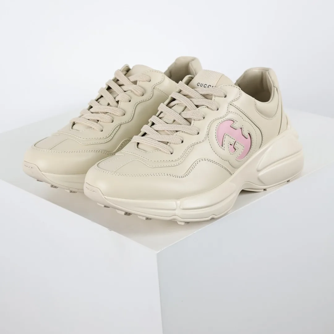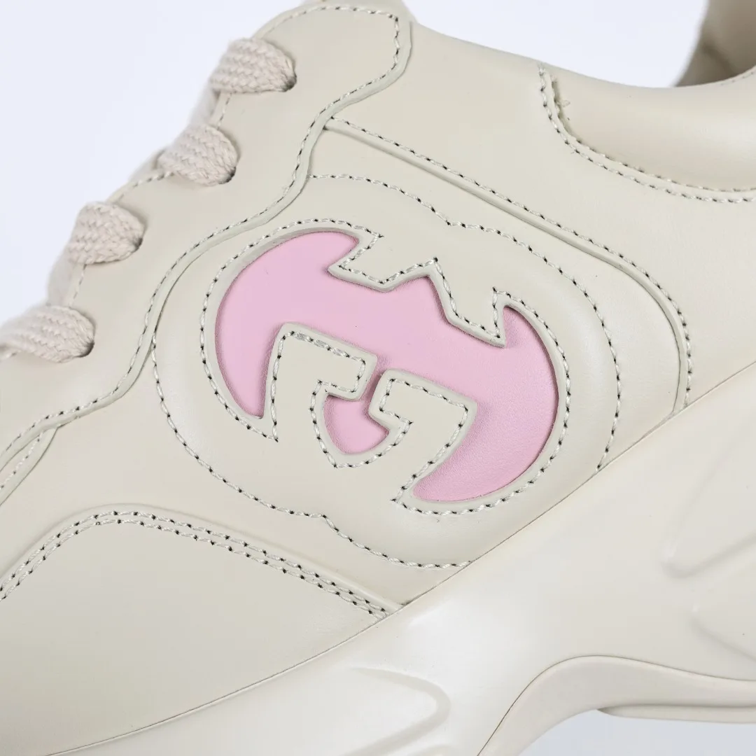 纯原 Gucci 古驰 Rhyton 复古老爹鞋 官方绿盒 蝙蝠粉色 高回弹MD中底加耐磨TPR耐磨外底 耐磨缓震