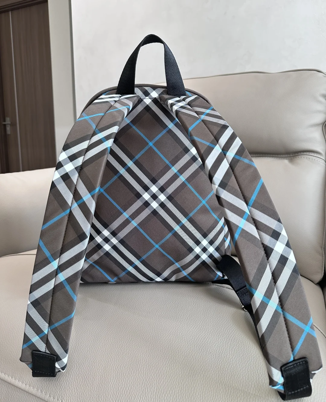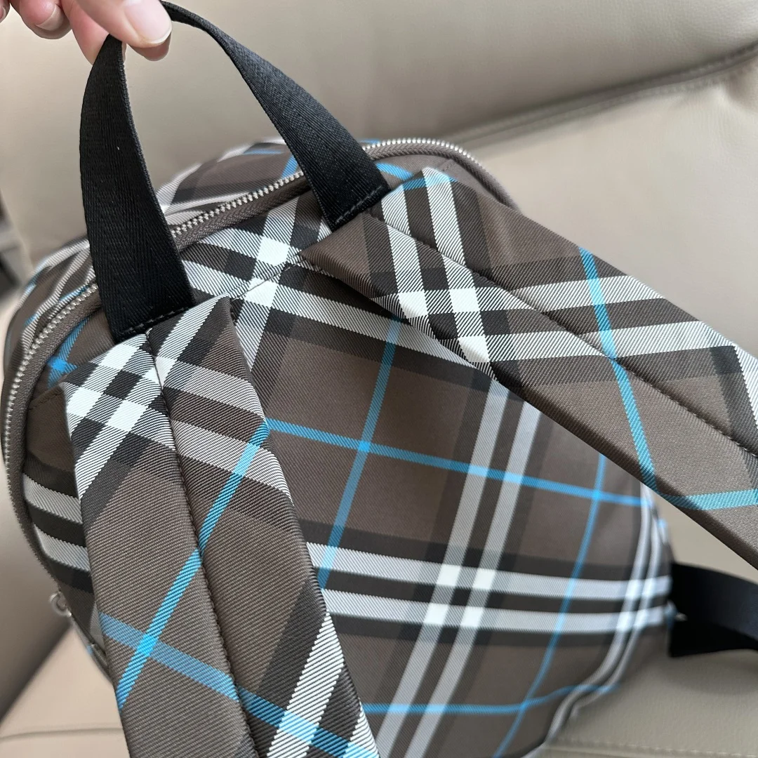 原厂 小号最新款双肩包 装饰B家专属格纹防水面料 内讨为同种面料 点缀马术骑士徽标 (EKD 贴花 搭配 B 字型拉链头和侧边口袋 可轻松装纳水瓶 来自 Burberry 经典之作系列 以鲜明品牌风格诠释衣橱必备款式 尺寸29 × 11 × 34cm型号3541