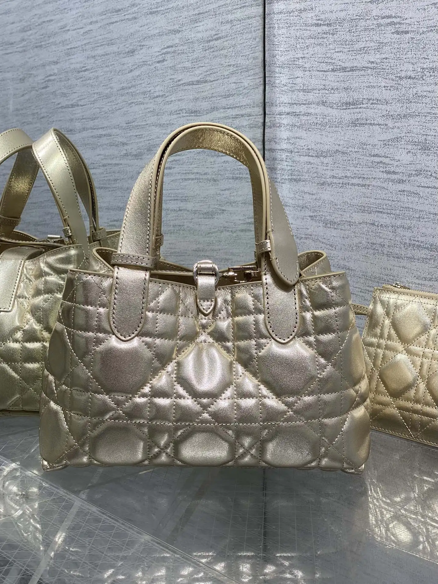 小号Toujours系列秋冬最新金色系列 有点太美了 高颜值大包包 颜色非常清新 让人眼前一亮 轻松拿捏高级感 超大菱格的设计 搭配经典的字母配饰 摩登时尚感十足 包身结构十分柔软 小牛皮材质高级感满满 别具一格的扣饰扣合时侧面可折叠 容量非常nice 还贴心的配有一枚内袋 方便收納小物品哦