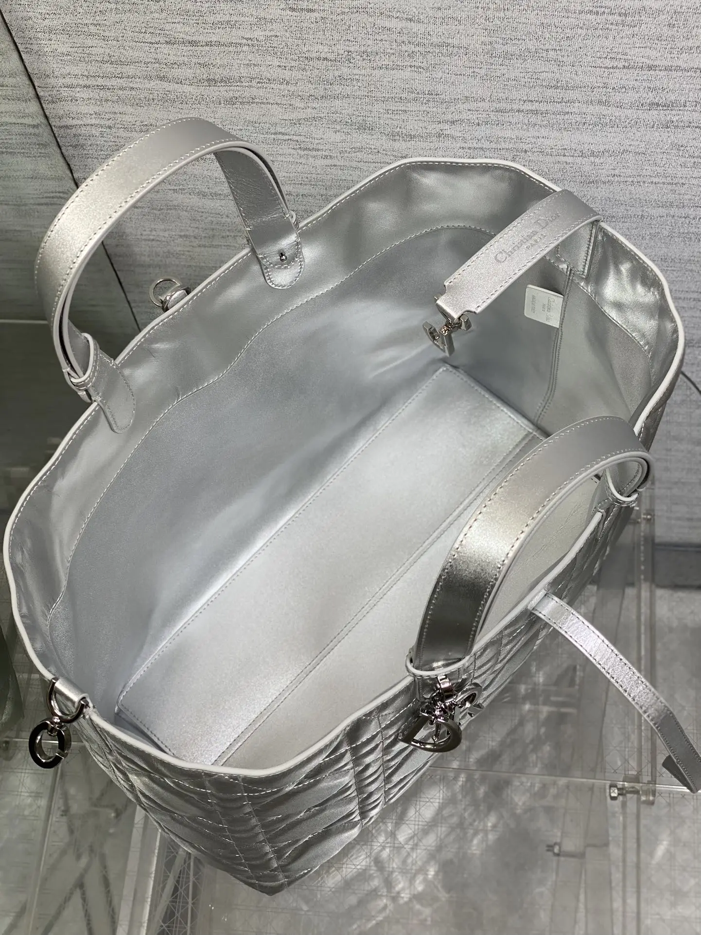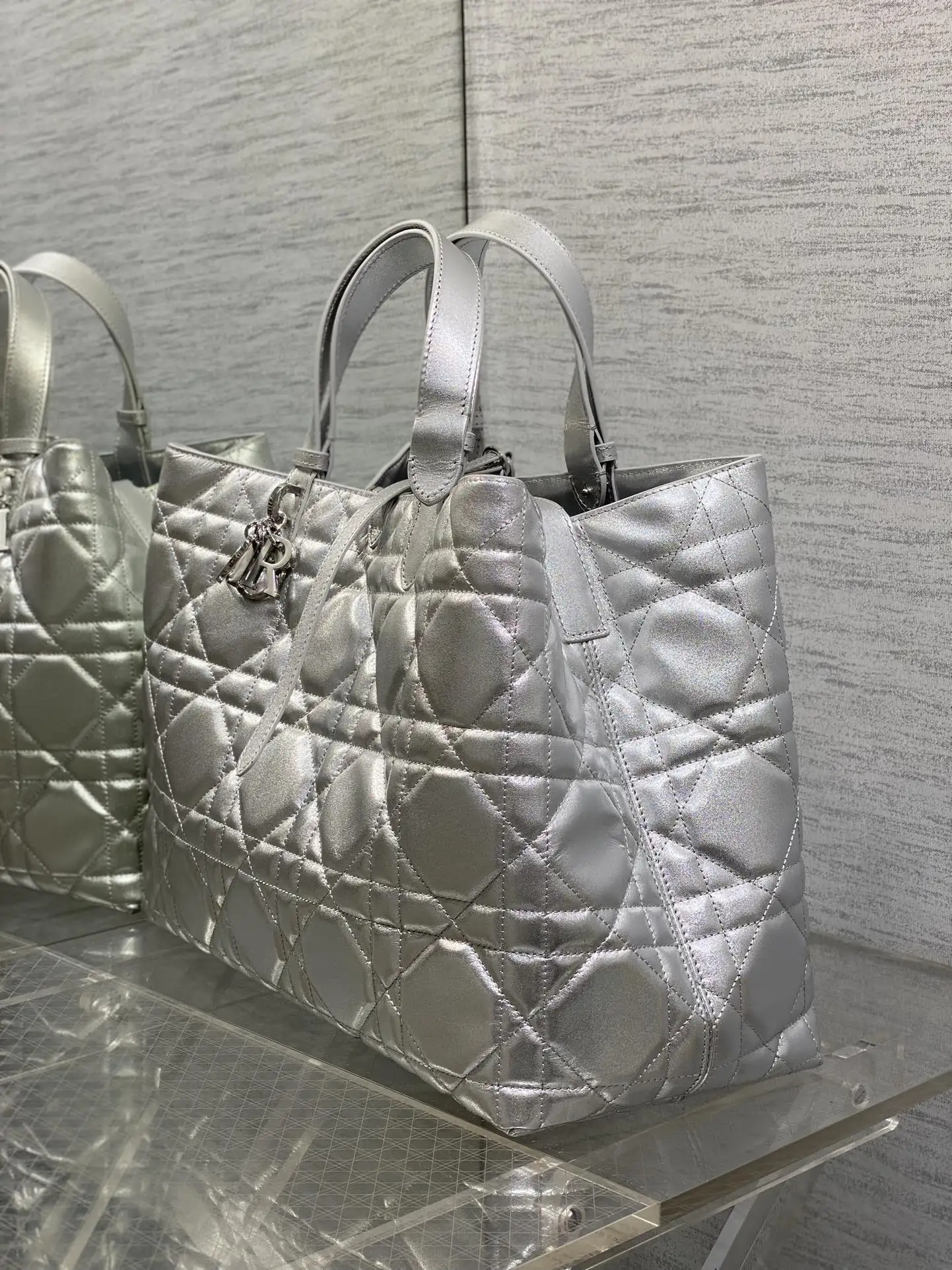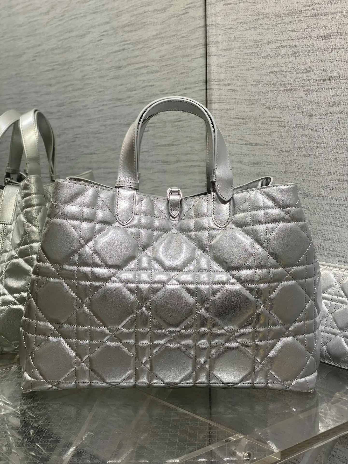 大号Toujours系列秋冬最新银色系列 有点太美了 高颜值大包包 颜色非常清新 让人眼前一亮 轻松拿捏高级感 超大菱格的设计 搭配经典的字母配饰 摩登时尚感十足 包身结构十分柔软 小牛皮材质高级感满满 别具一格的扣饰扣合时侧面可折叠 容量非常nice 还贴心的配有一枚内袋 方便收納小物品哦