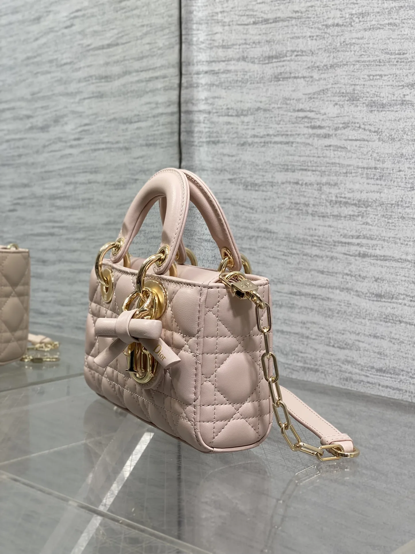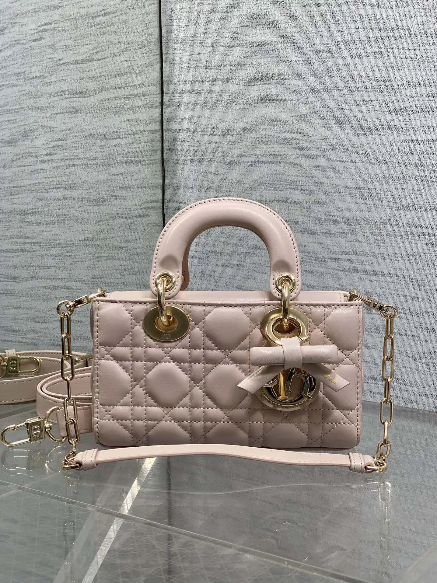 D-joy最新mini蝴蝶结系列 说micro太小 小号太大的宝贝们都看过来 新出的mini尺寸 大手机也能完全放下 这个尺寸更显得精致 大爆款的节奏 包包自带两条肩带 多种背法 上身又美又飒 经典的菱格设计 搭配柔软的绵羊皮 整体优雅又时尚 日常出行必备单品