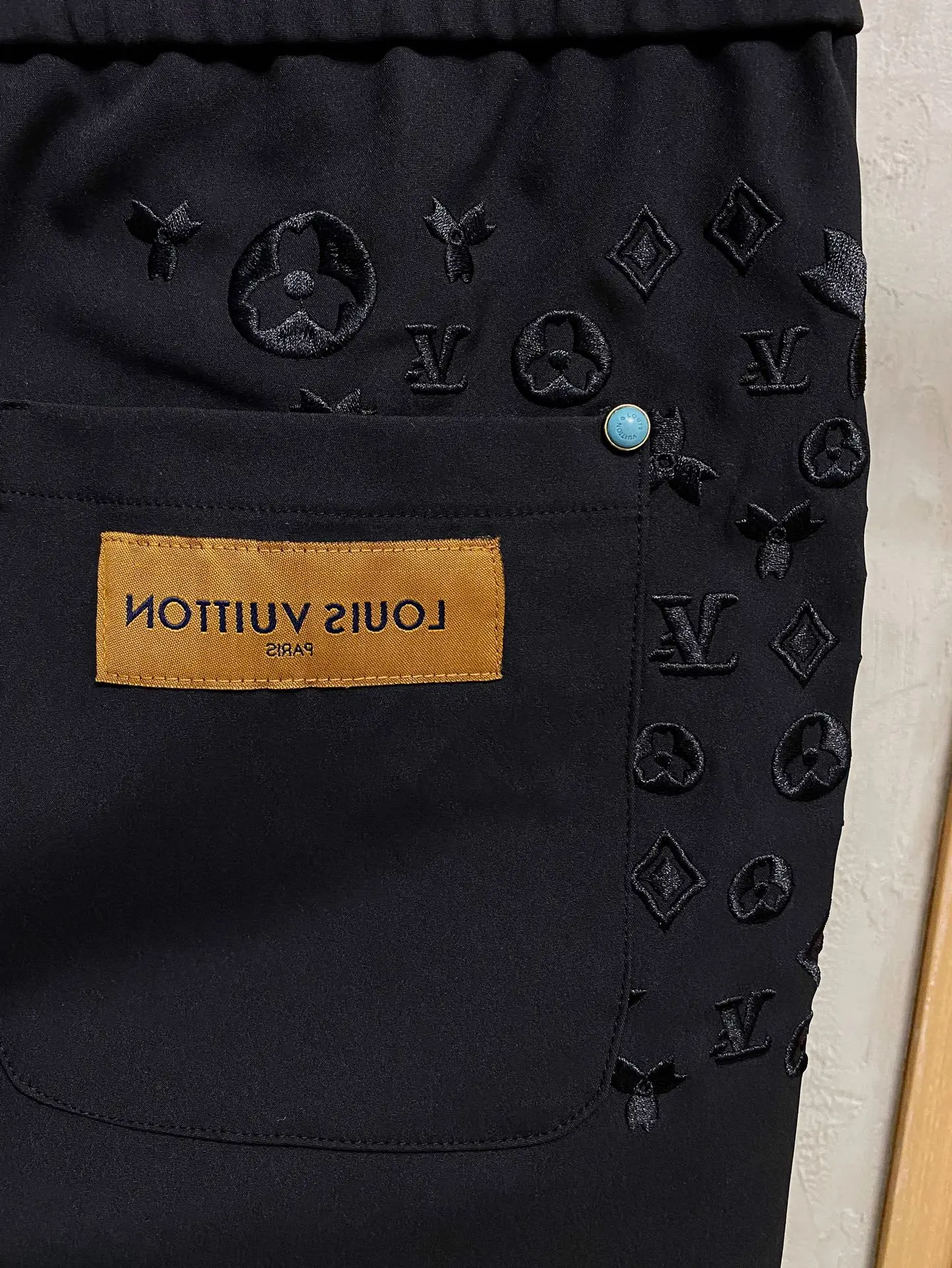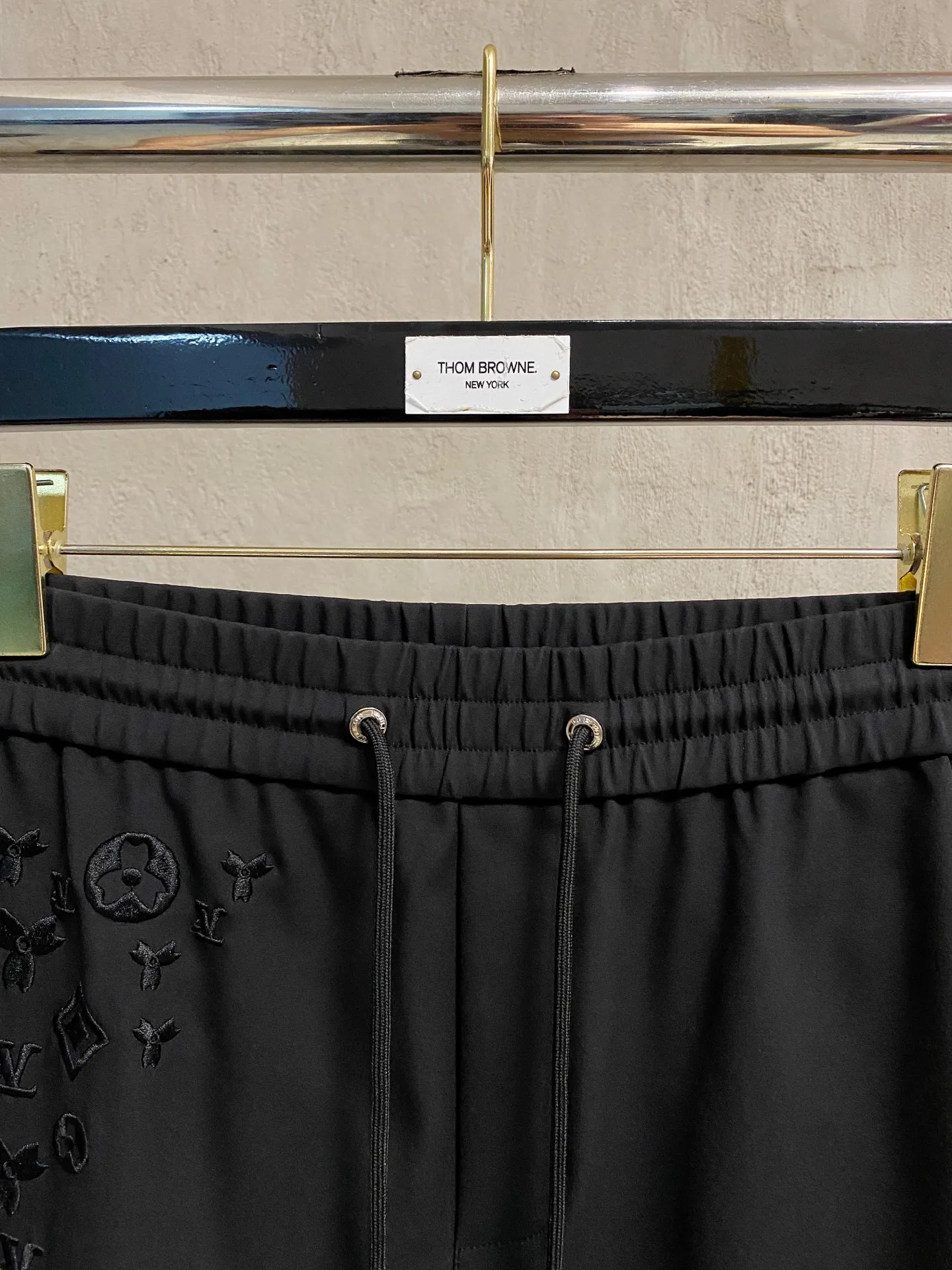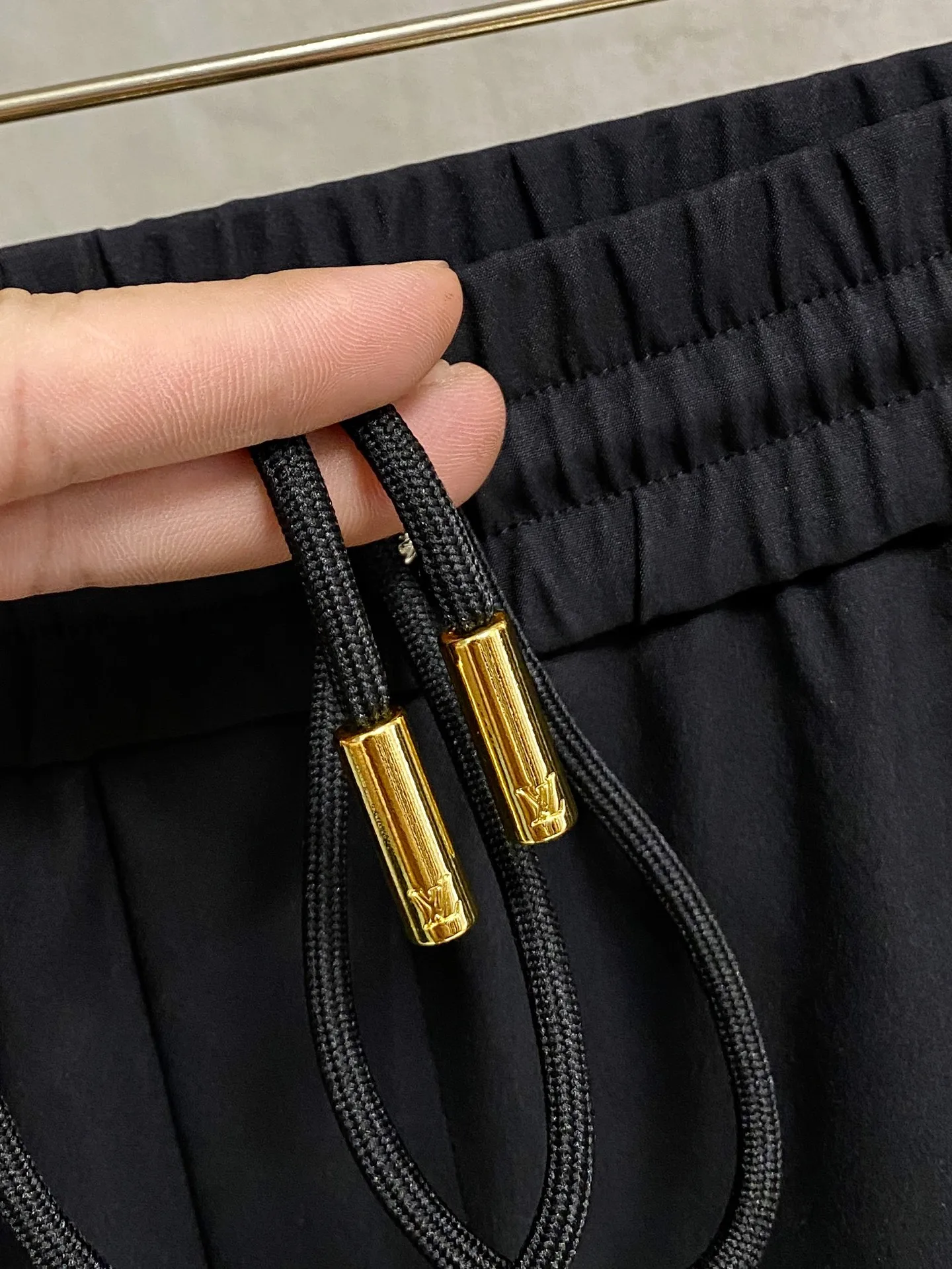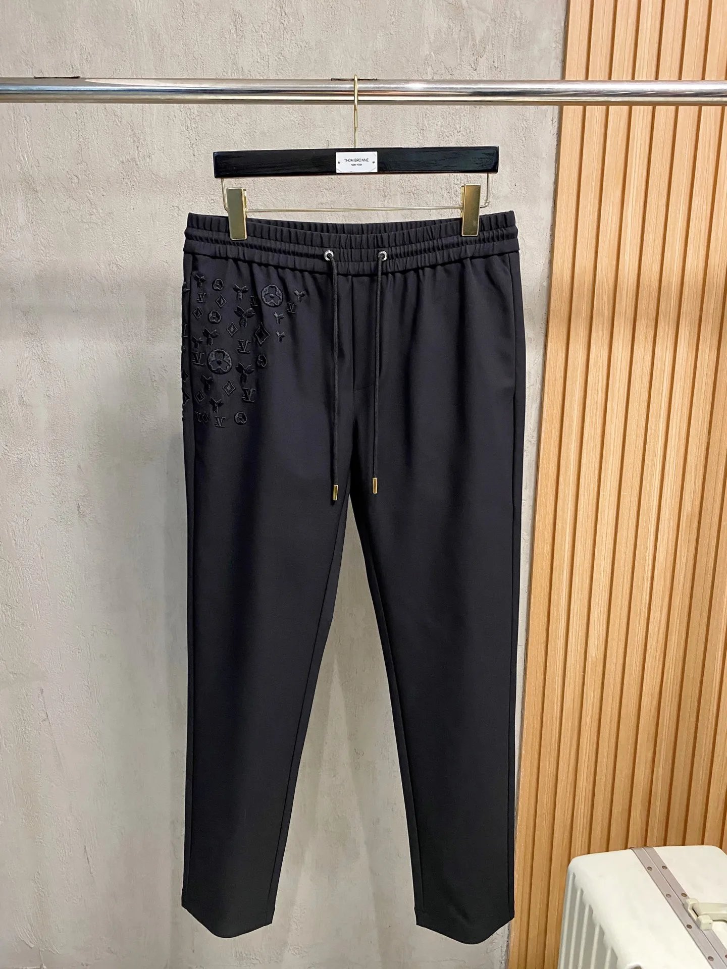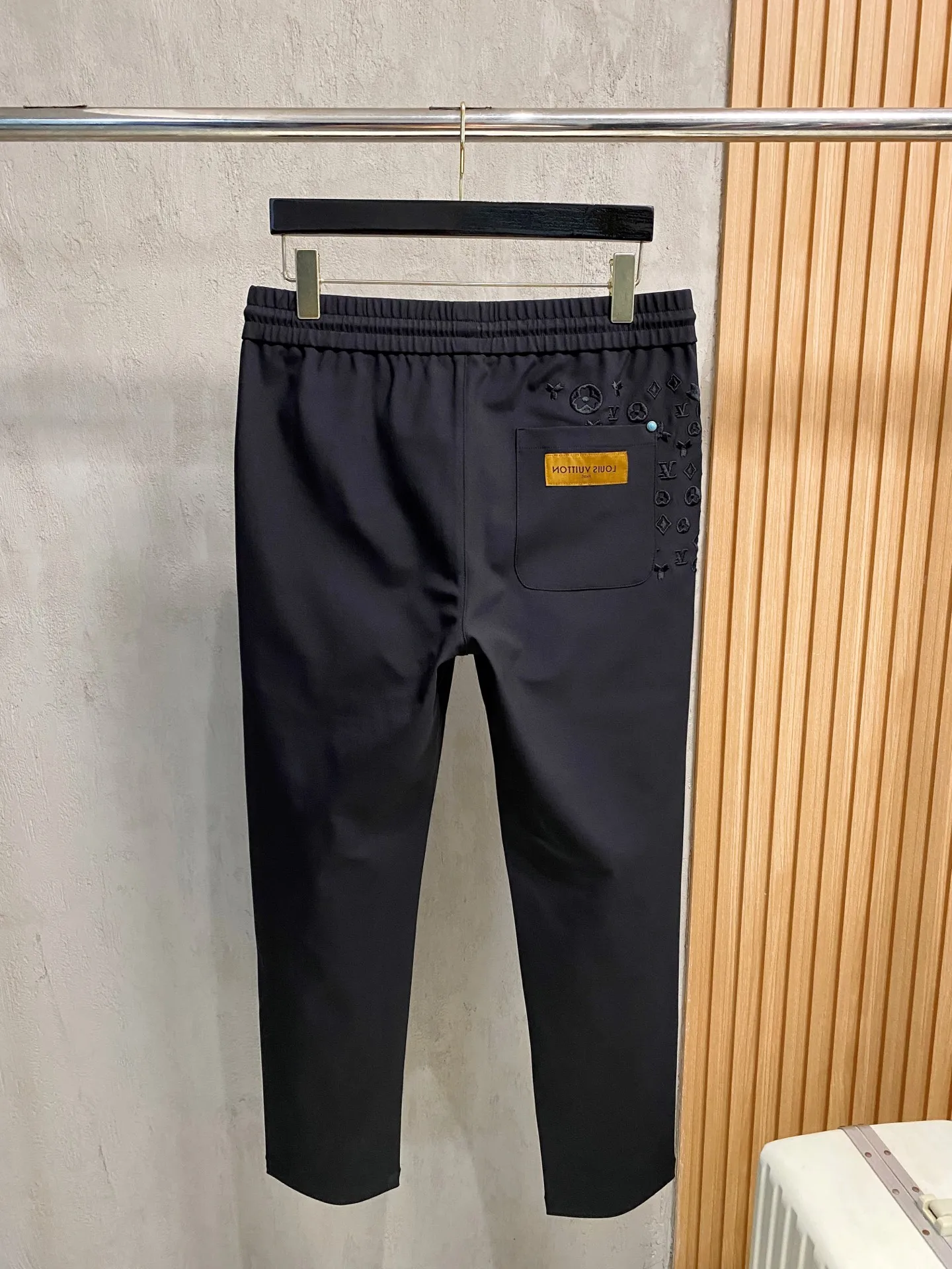 L家最新男士休闲裤 简约百搭款 不挑人穿 腰部松紧抽绳设计 经典刺绣老花 良好的修饰身材比例 线条简洁顺直 腰头的做工 内里的包边 整体的剪裁 上身效果都无可挑剔 无论是上班还是休闲都可以驾驭 有垂坠感有弹力 运动起来没有也羁绊感尺码 M-3XL