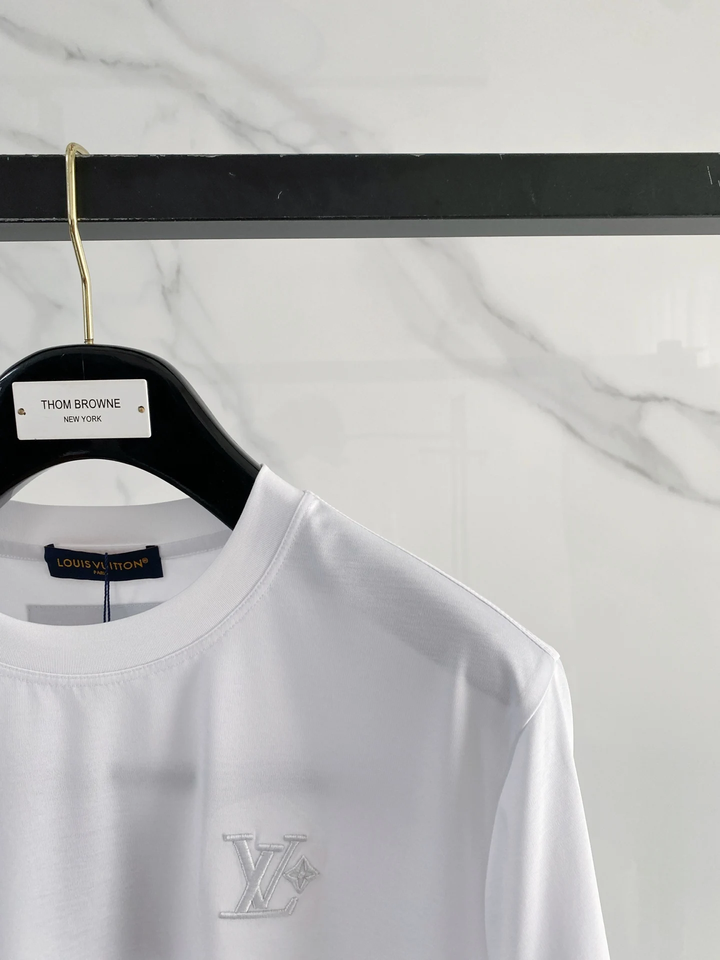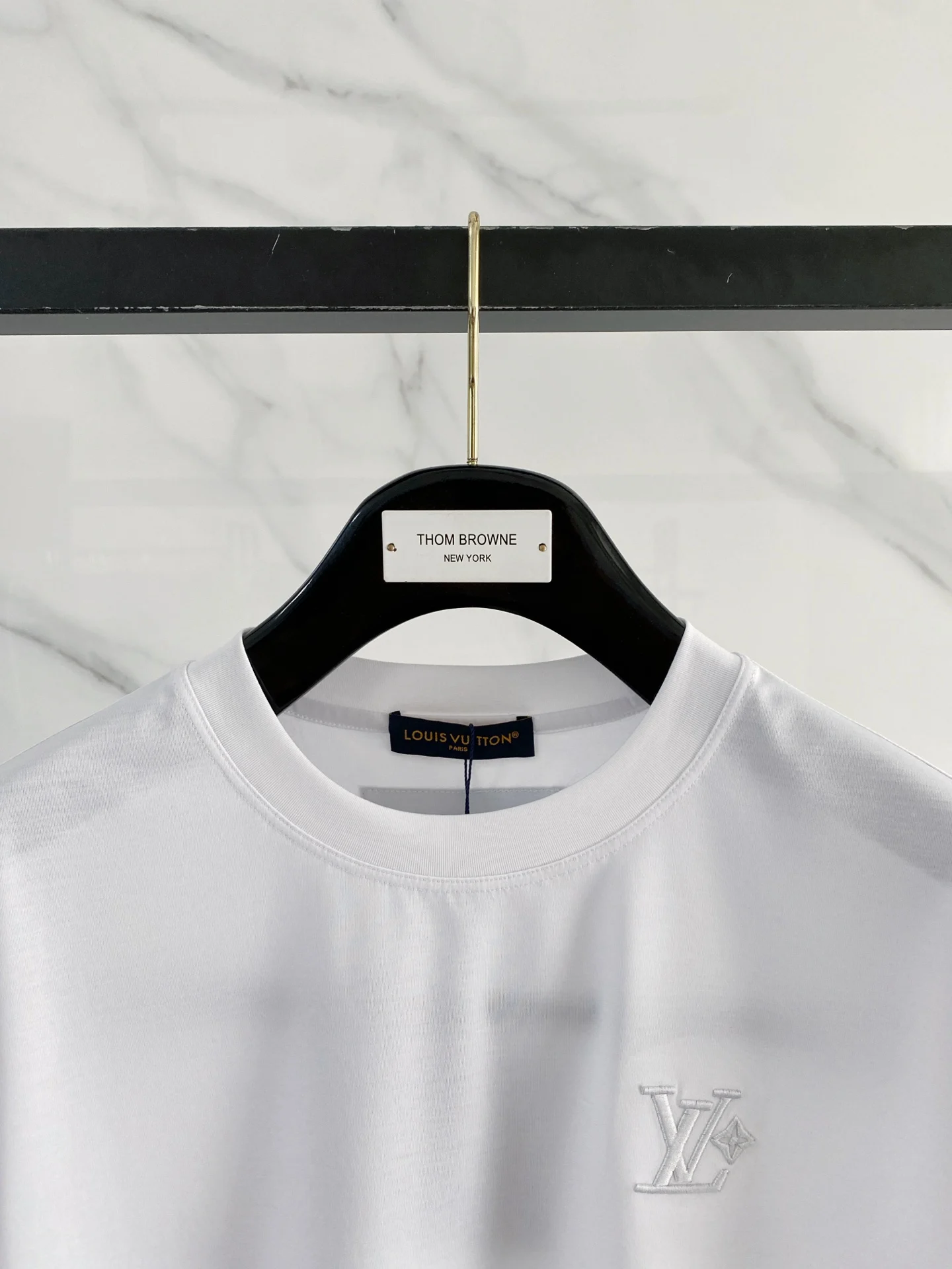 1v路易威登 2025春夏新款首发专柜最新款圆领短袖 高端订制 设计前卫时尚 品牌logo重工艺设计 高端定制100支双面丝光棉面料.手感柔软.穿着舒适.专柜级别精致车线.做工精细.上身效果无敌帅气 型男必备单品 码数 M-3xL