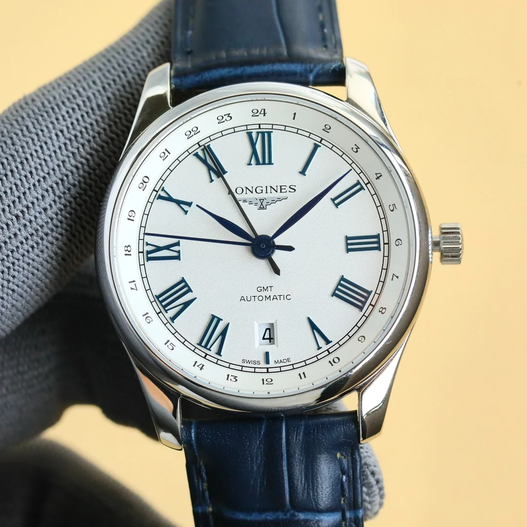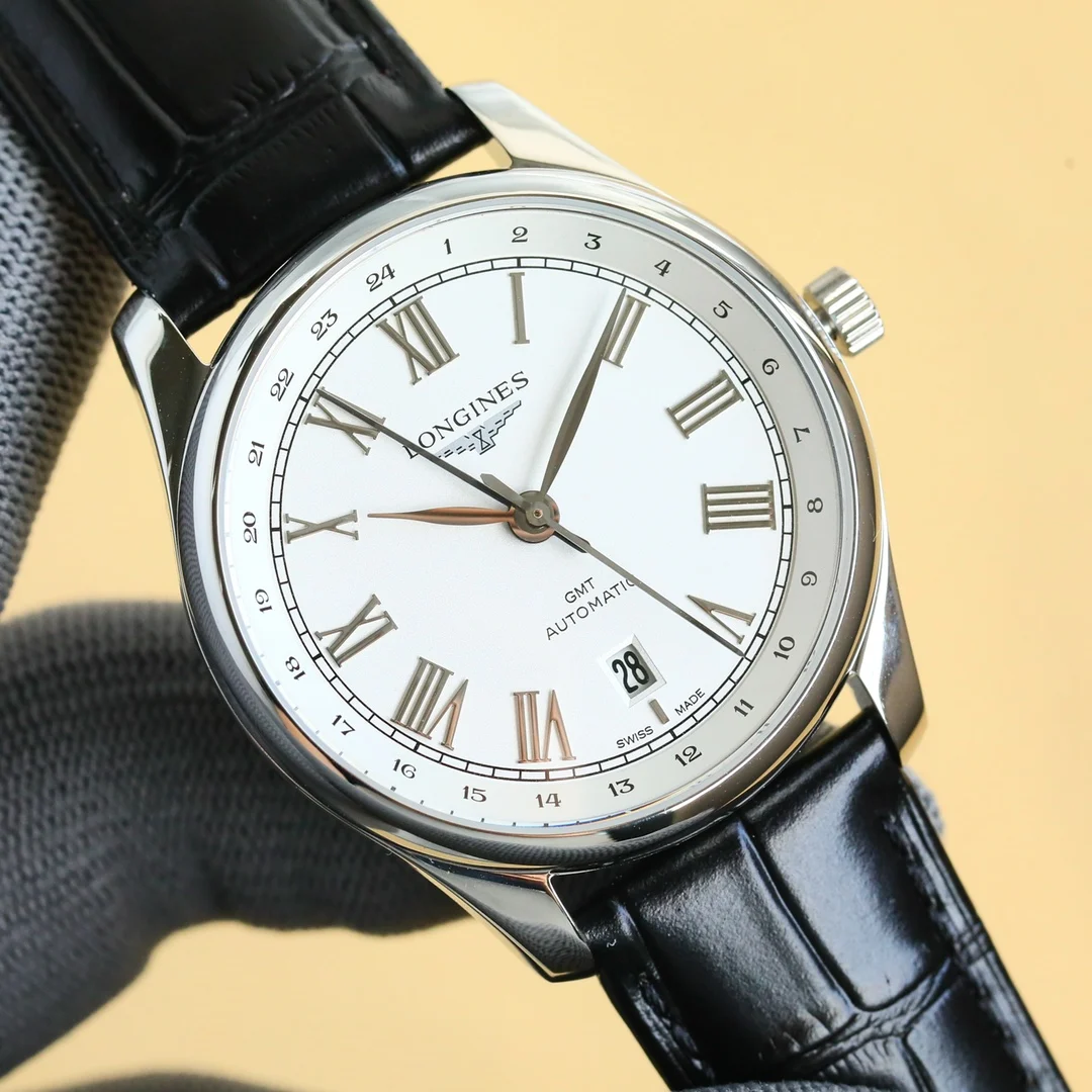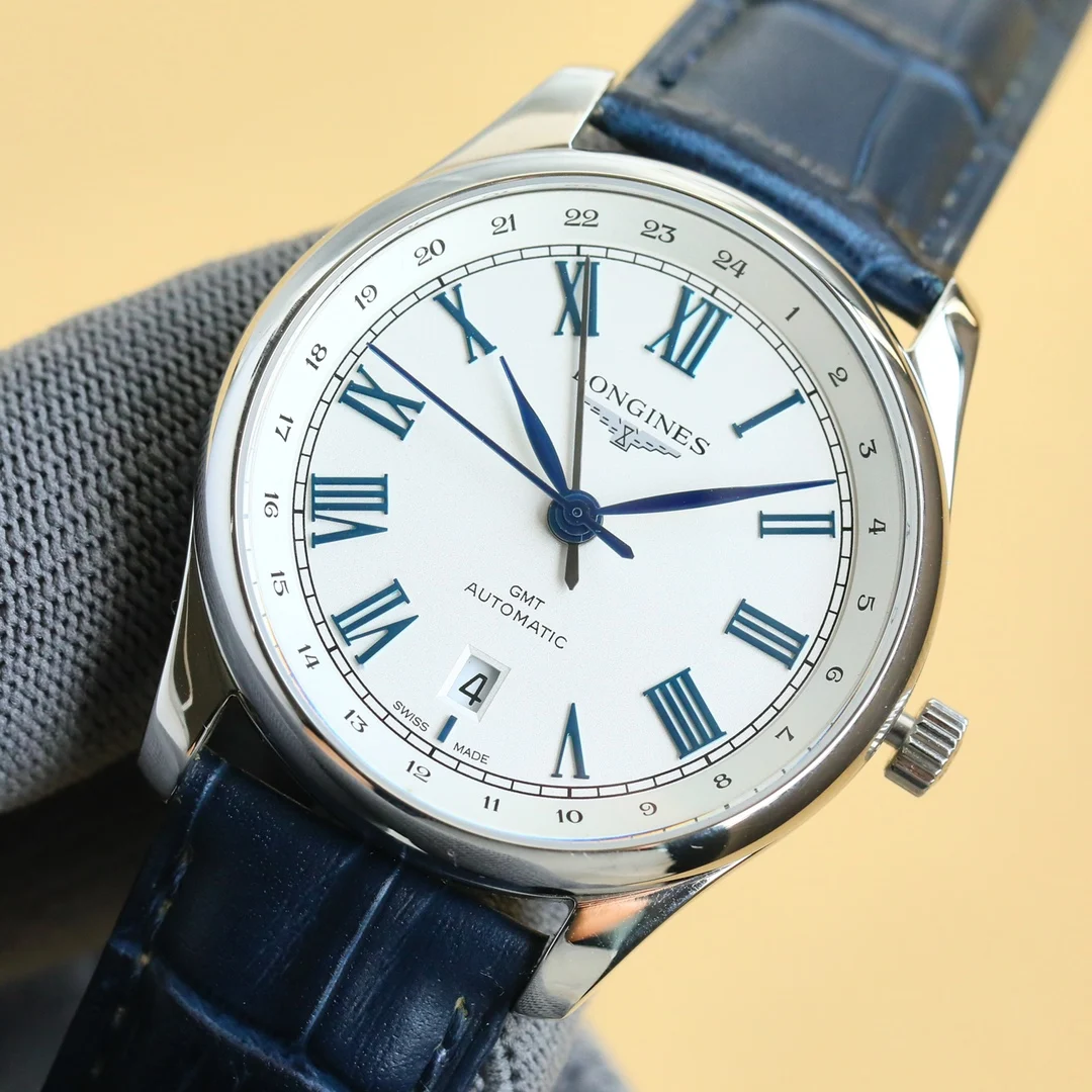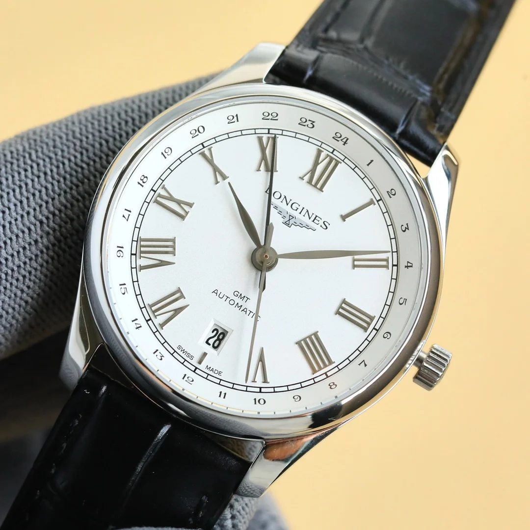 白金1钢带TW新品 浪琴最新名匠经典复刻GMT两地时腕表 新品首推 腕表新搭配焕新设计的罗马表盘 集奢华 精致和使用于一身 机芯采用进口2836一体机GMT两地时 正品同步 走时精准 腕表直径40mm 配备防眩目蓝宝石镜面 皮带采用进口意大利灰色头层小牛皮 罗马数字更加生动 更添视觉深度 黑色指针更能显示GMT功能 名匠腕表向来以携永经典 优雅内敛的风格而著称
