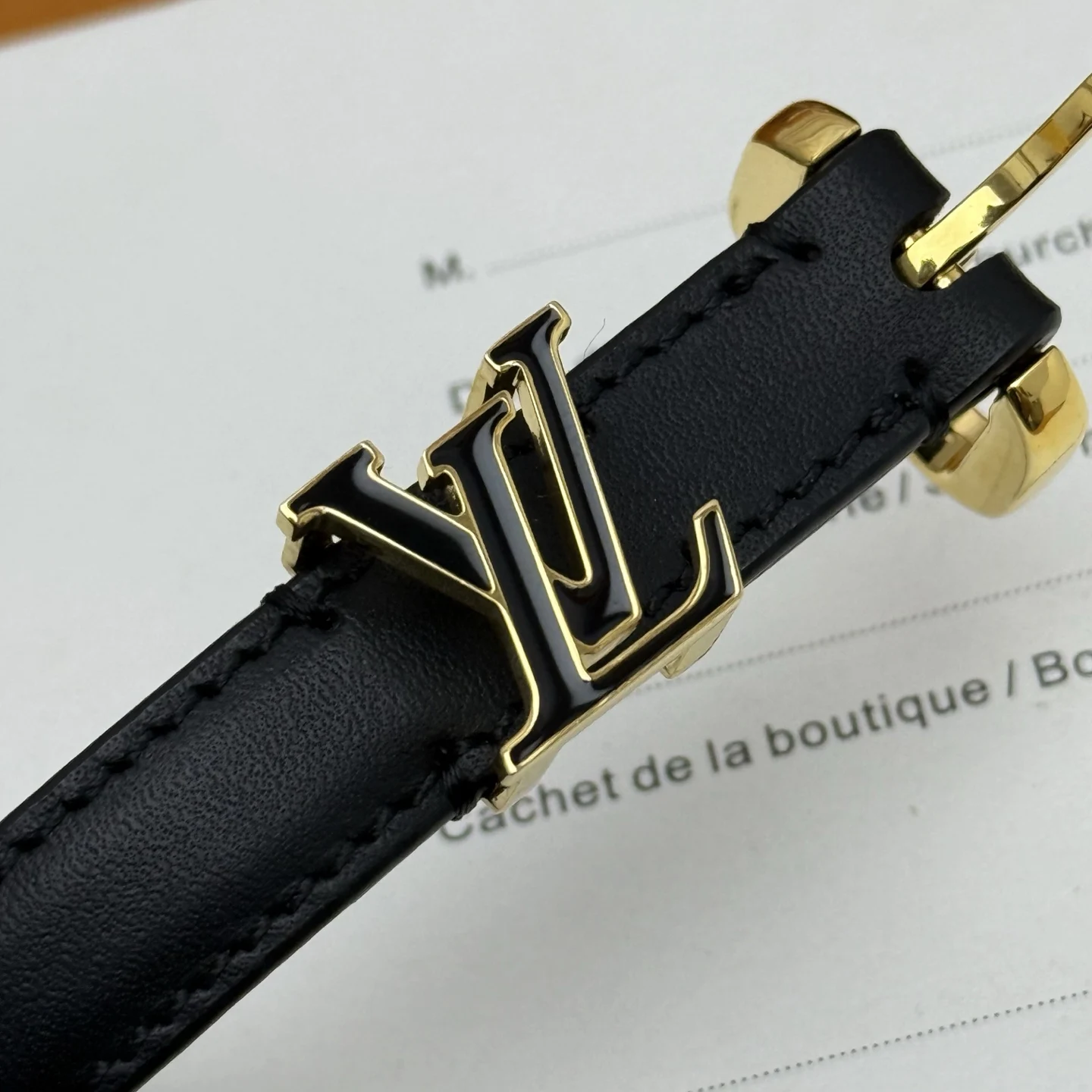 新款LV女士 标志性的 LV 带扣即可与 Monogram 结合 营造出更多休闲意味 亦可与彩色皮革搭配 使整体颜色更加抢眼 宽度 1.5cm