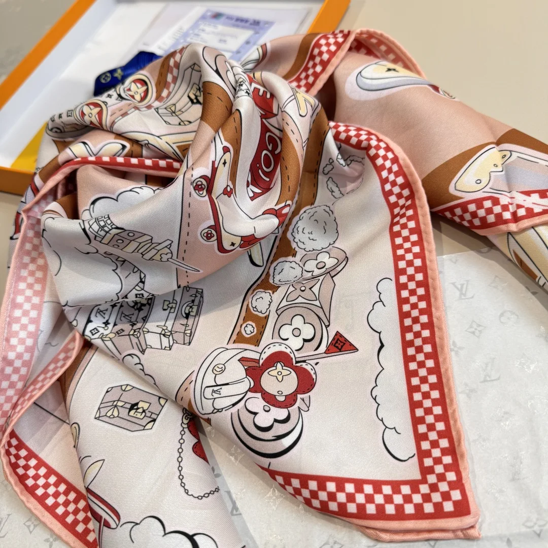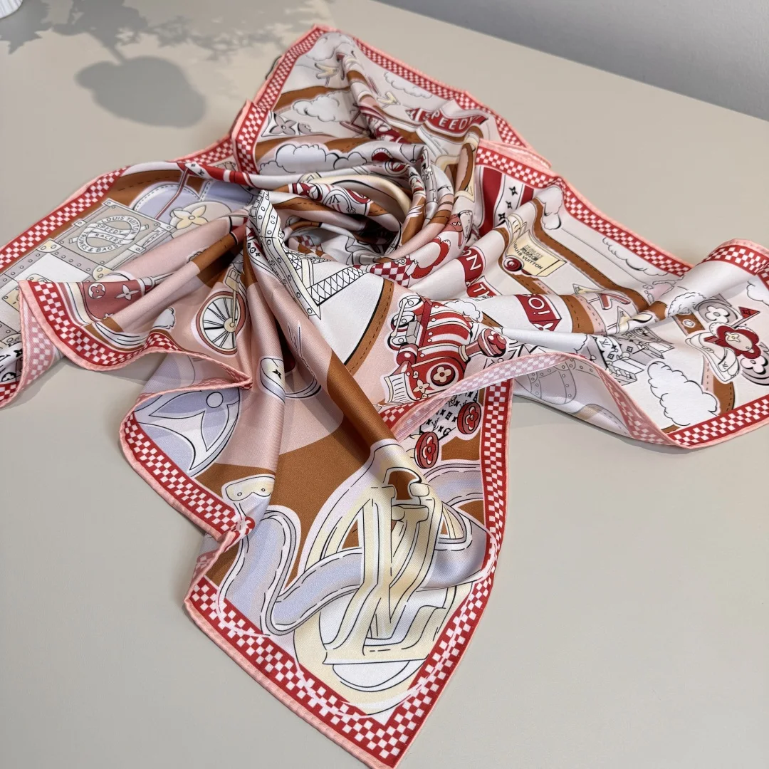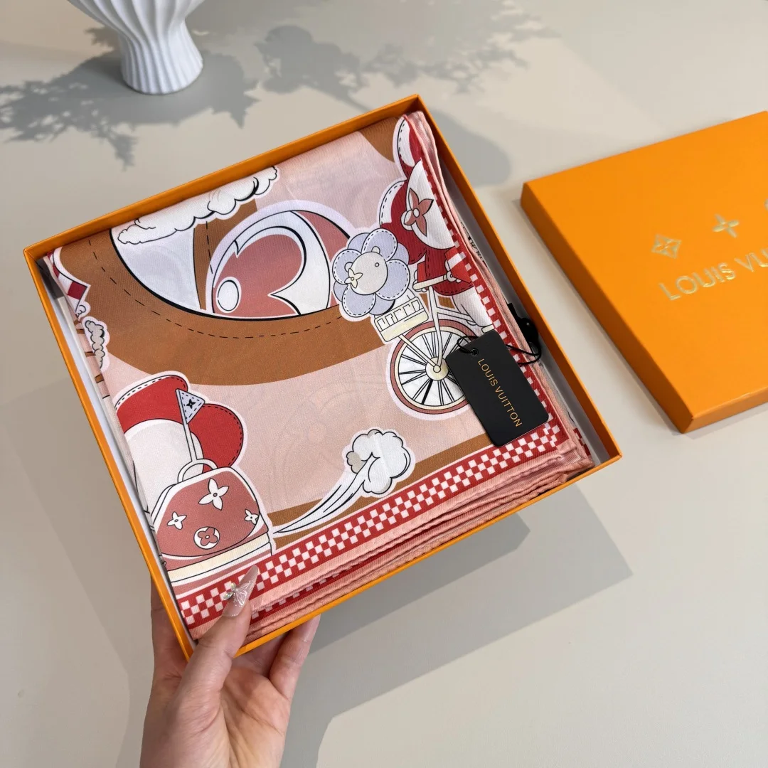 LV Speedy Vivienne 90桑蚕丝方巾讲述品牌可爱吉祥物风驰电掣地投身于崭新的奇幻之旅 布满经典元素的赛道在埃菲尔铁塔四周延伸 Vivienne 现身自行车和热气球等各式载具 意趣盎然的缤纷设计成就又一收藏佳选