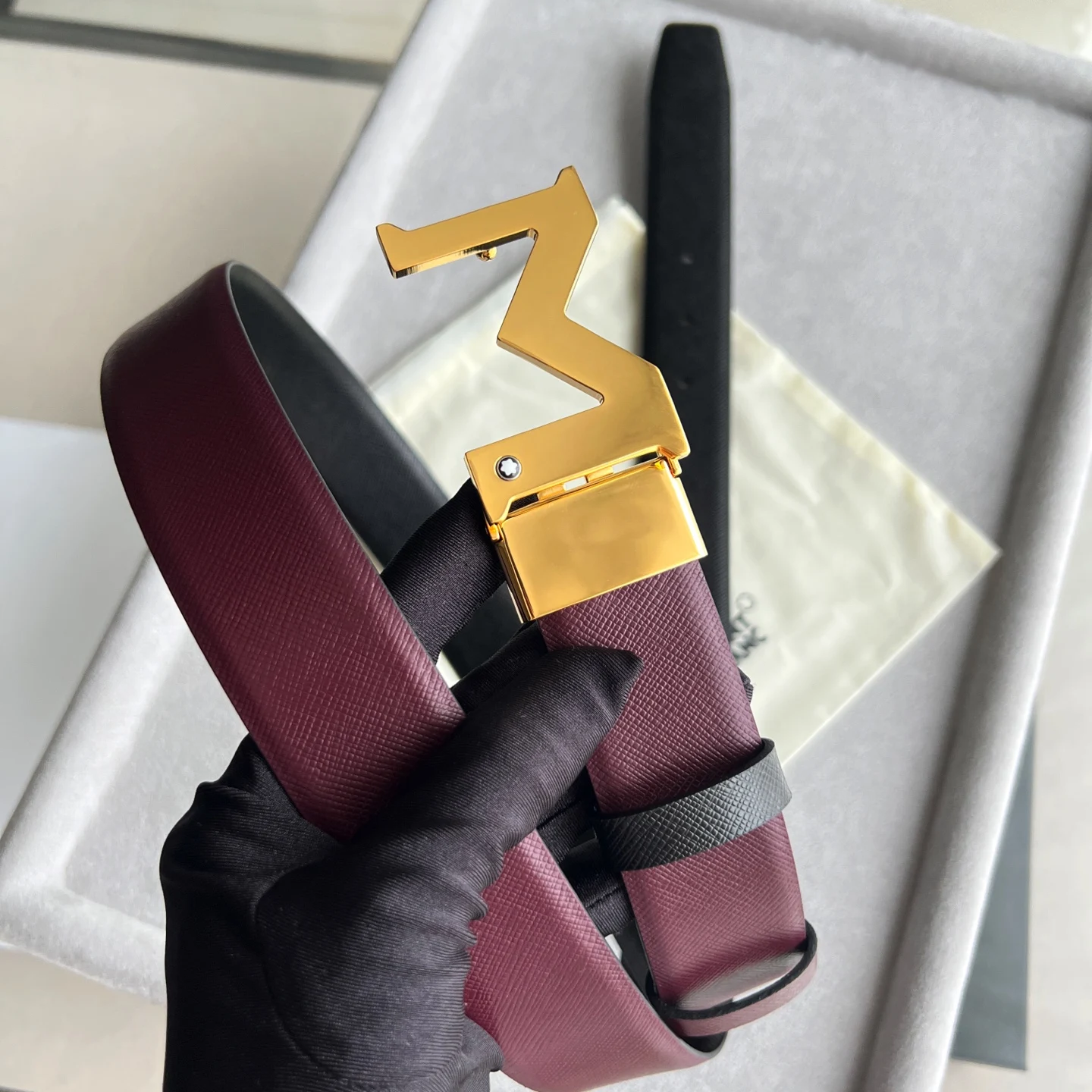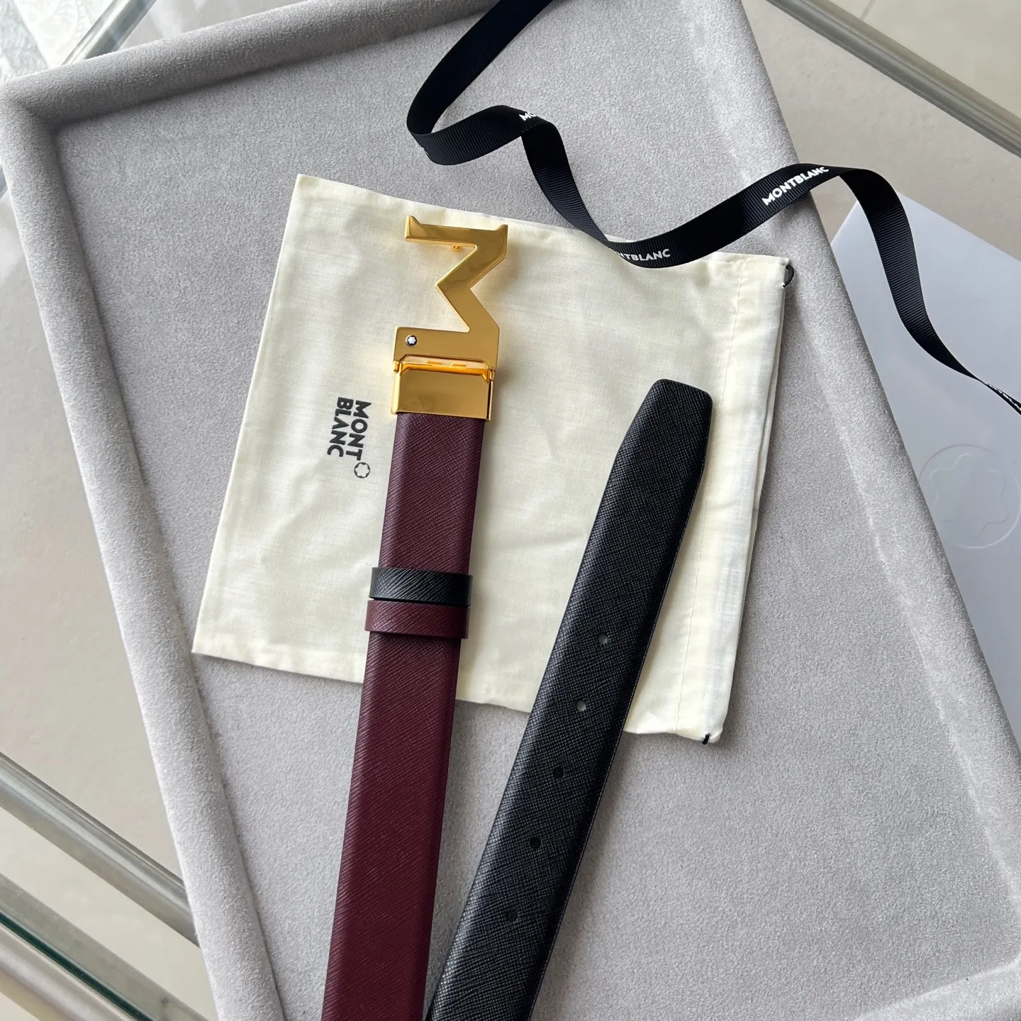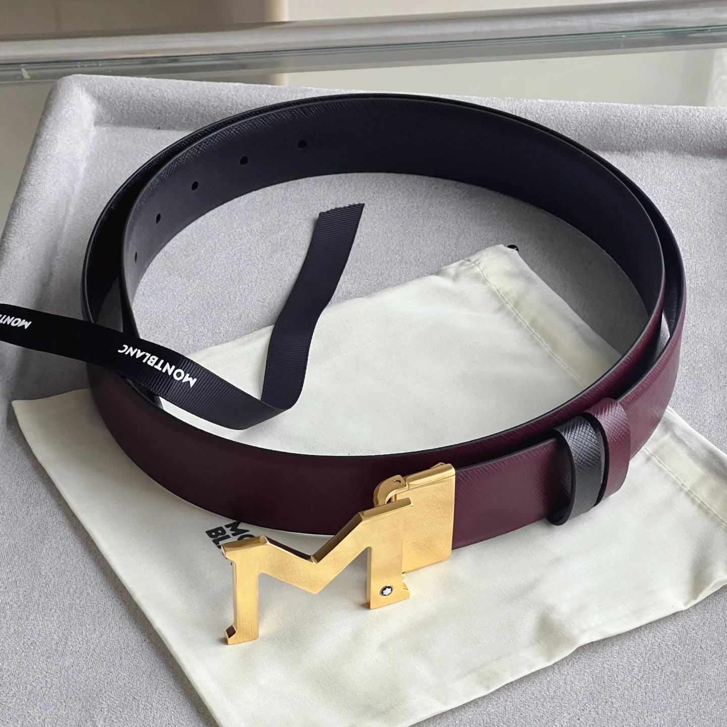 镀钯 M 字图案带扣 可调节长度 3.5厘米 x 120厘米 双面红色粒纹和黑色光面皮带 营造运动气息