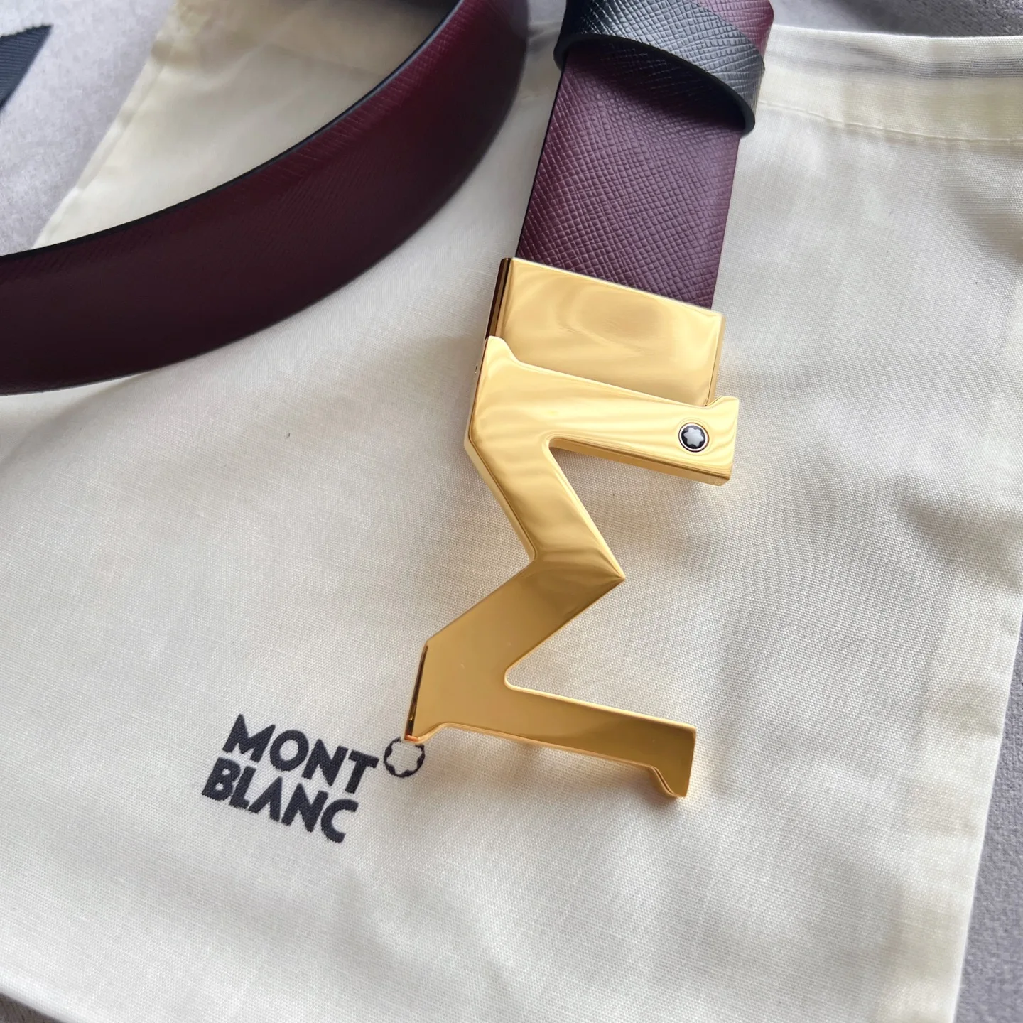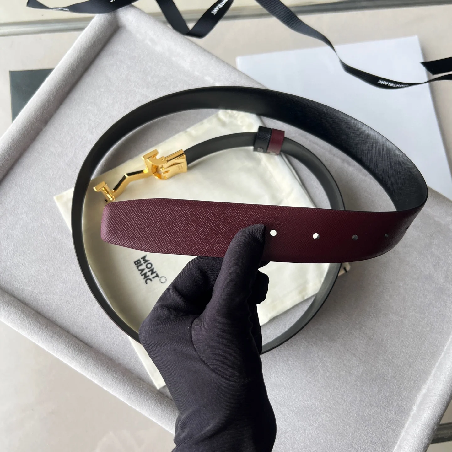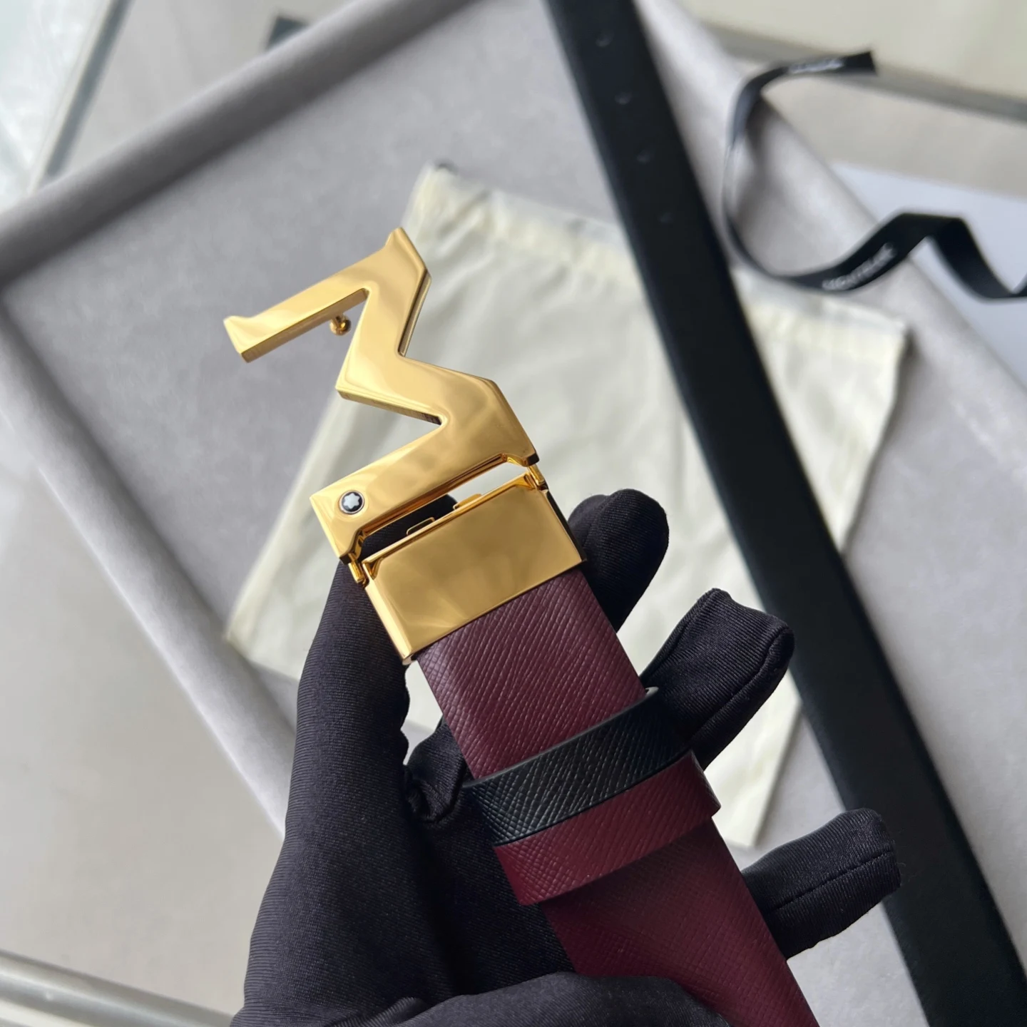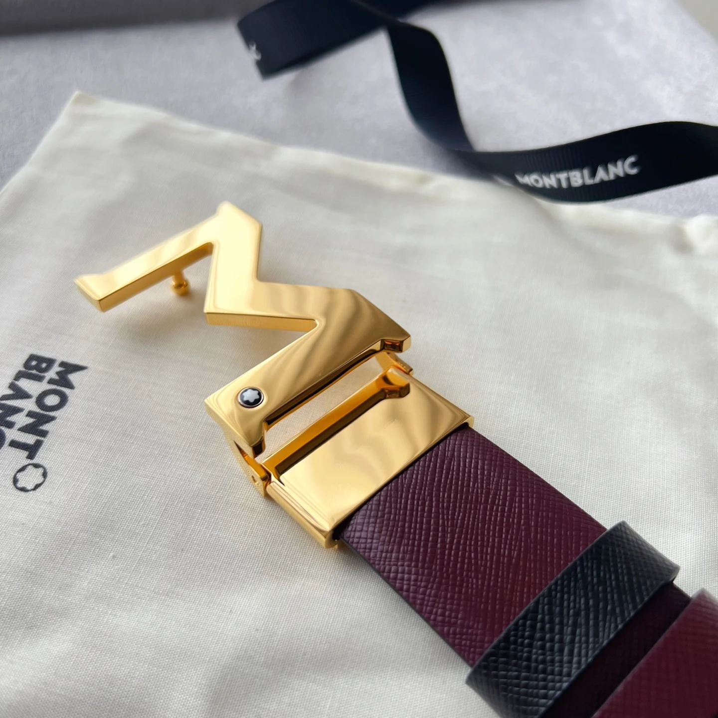 镀钯 M 字图案带扣 可调节长度 3.5厘米 x 120厘米 双面红色粒纹和黑色光面皮带 营造运动气息