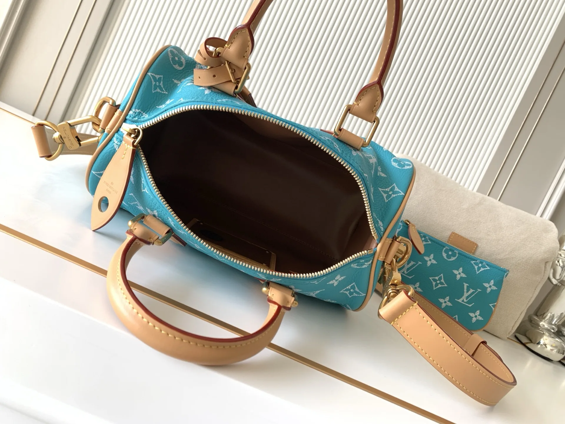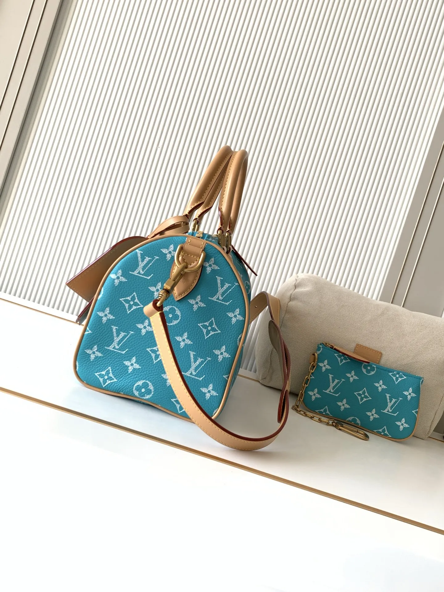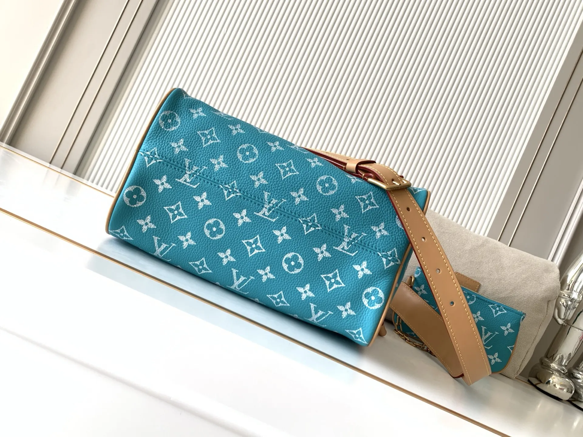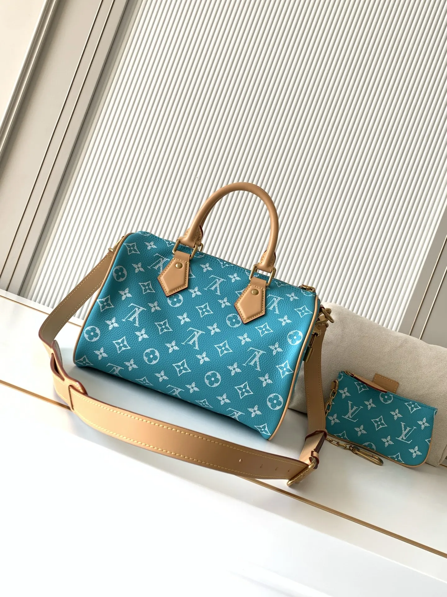 全钢五金 MB163c01变码芯片 款号M11561湖水绿 本款Speedy P9 Bandouliere25手袋结合牛皮革包身和皮革饰边 兼具潮流格调与功能考量 肩带:可拆卸 可调节包带半长:55.0厘米