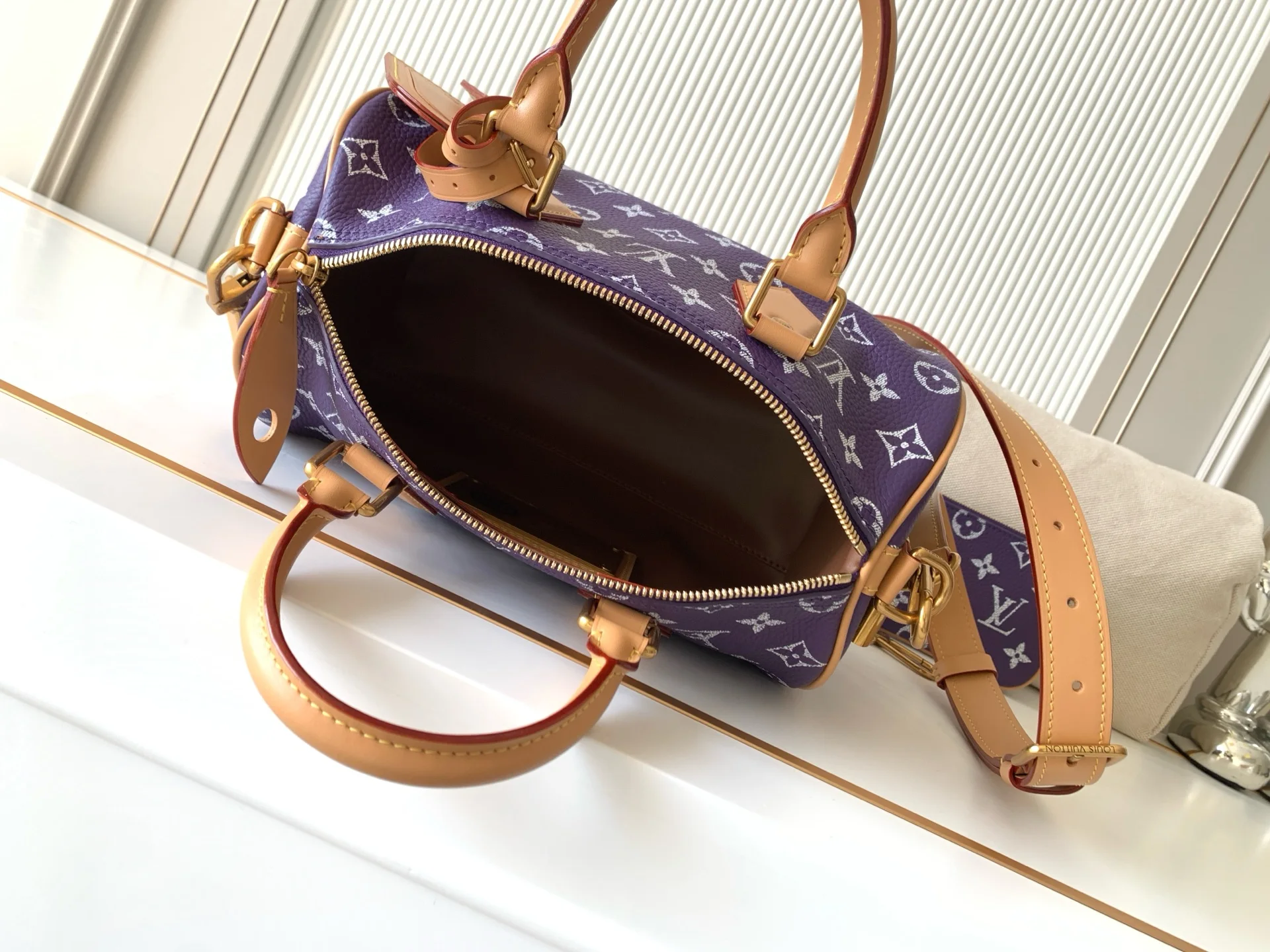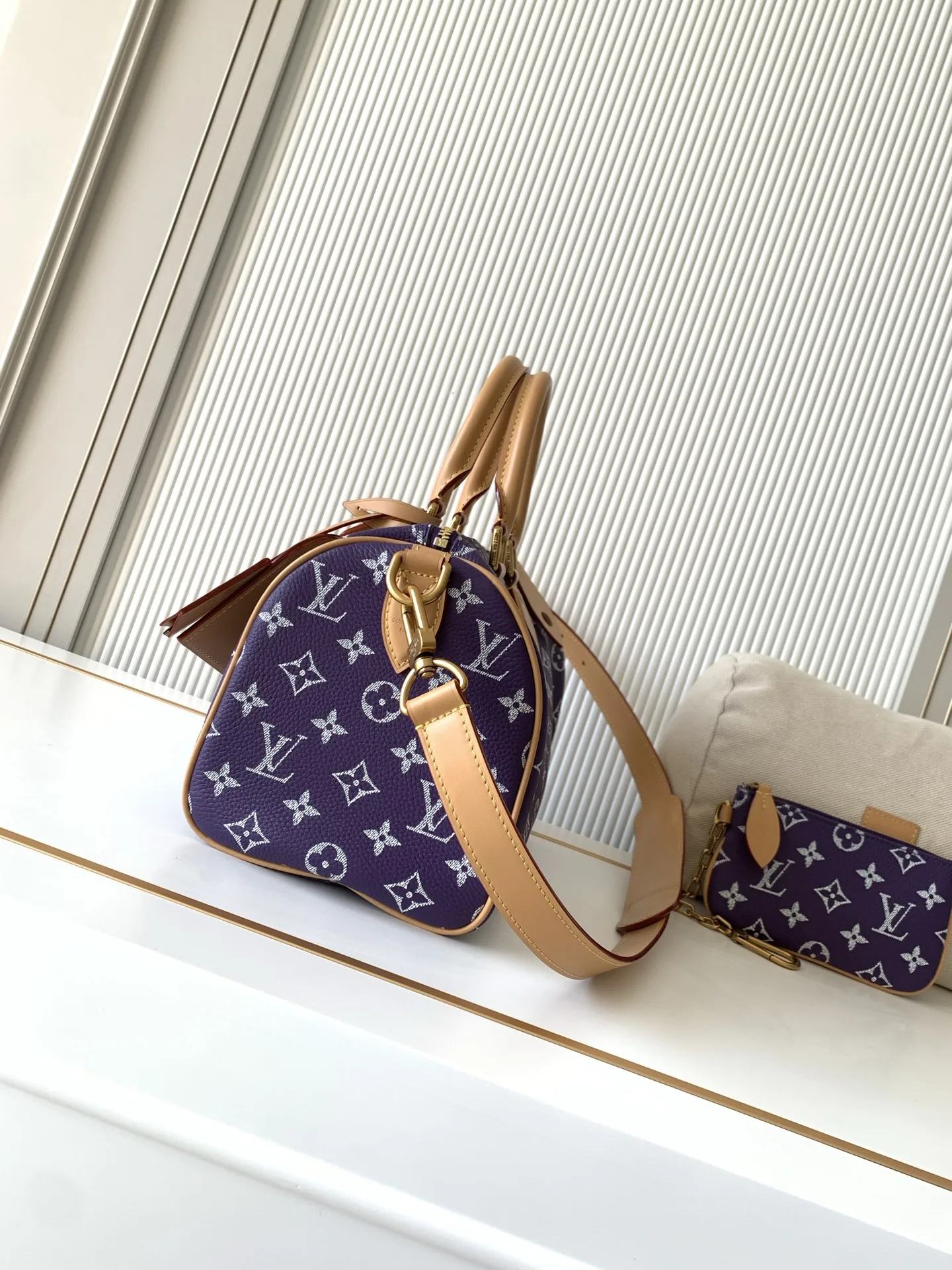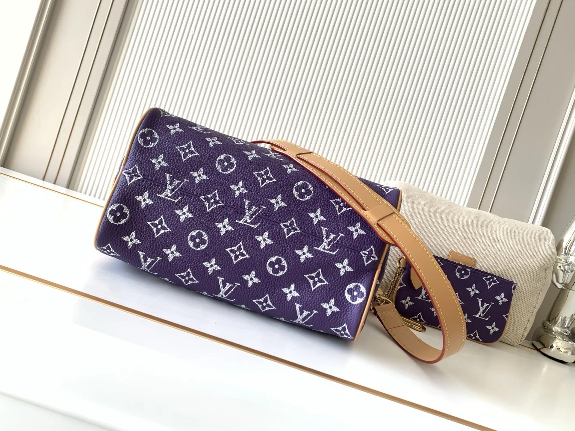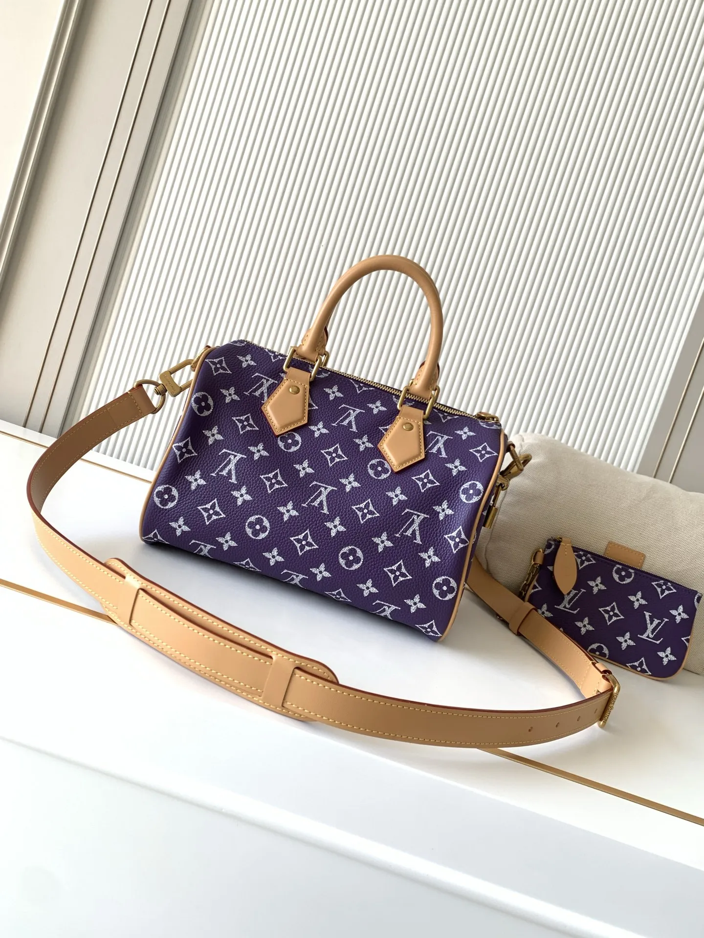 全钢五金 MB163c01变码芯片 款号M11562紫色 本款Speedy P9 Bandouliere25手袋结合牛皮革包身和皮革饰边 兼具潮流格调与功能考量 肩带:可拆卸 可调节包带半长:55.0厘米
