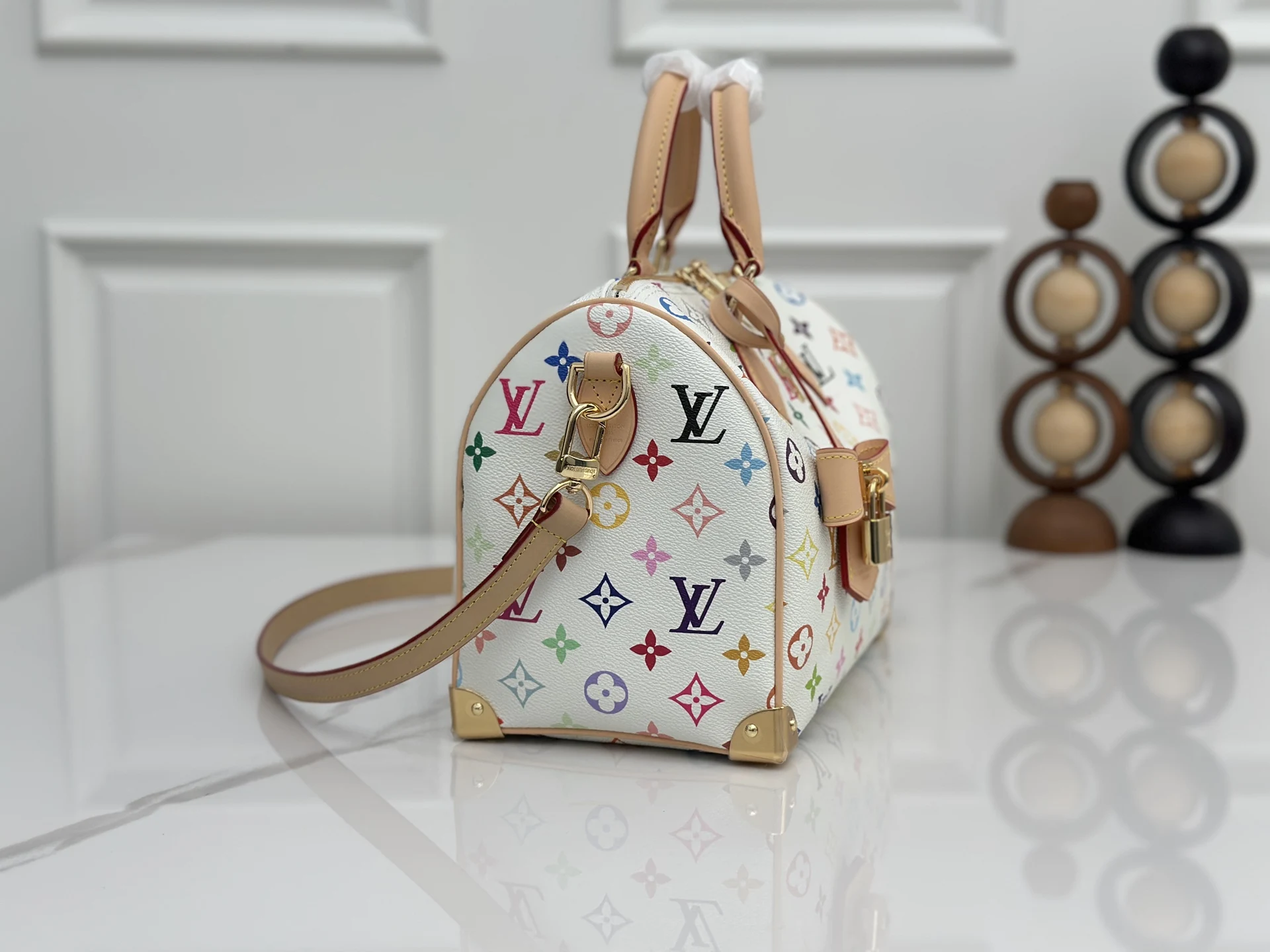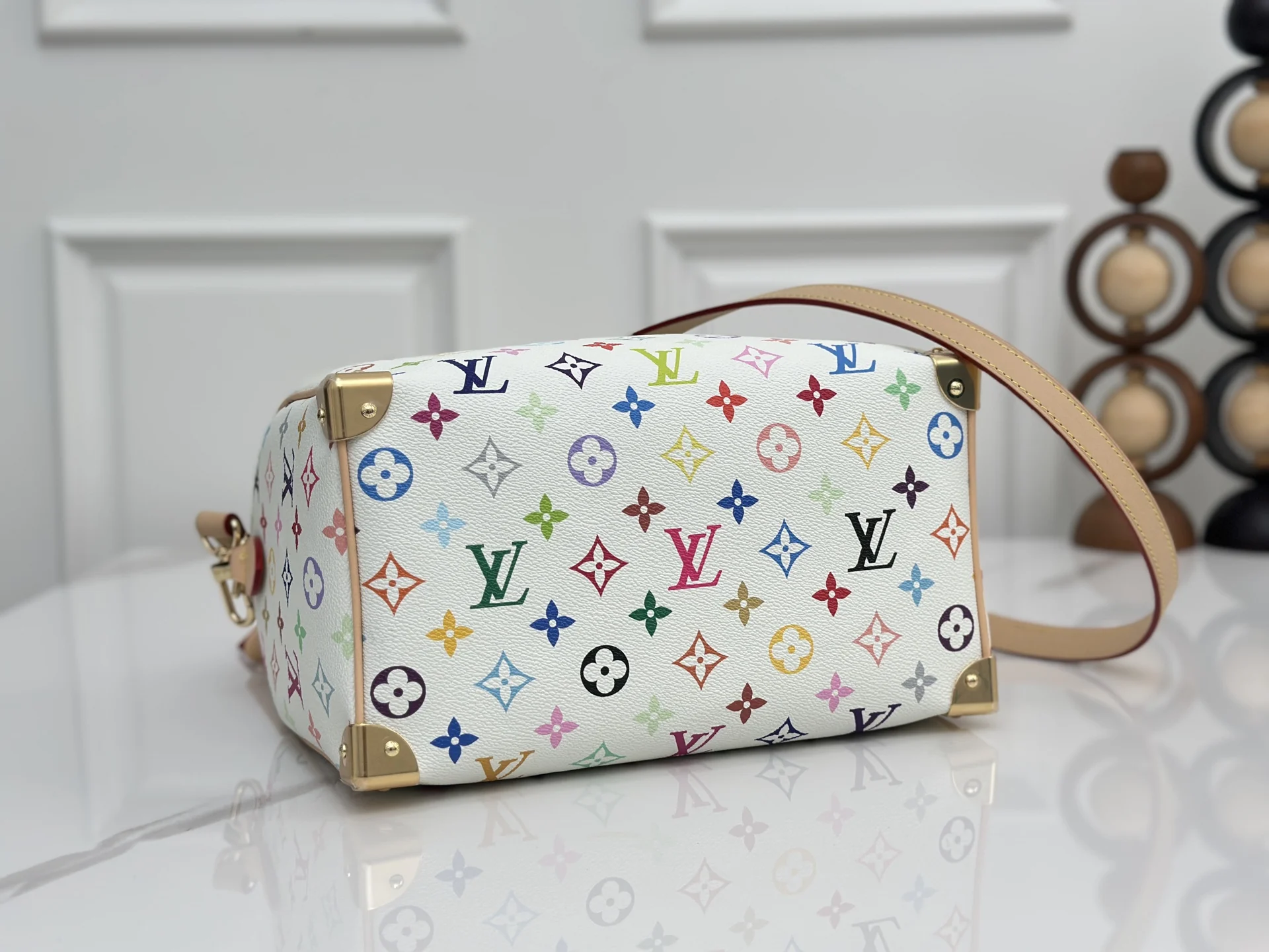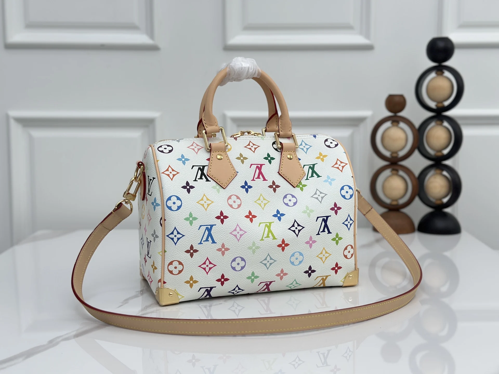顶级原单 163c芯片 本款M13085白彩 Speedy Bandouliere 25 手袋为经典 Monogram 图案渲染日本艺术家村上隆笔下的明丽色调 与蝴蝶结造型钥匙包一道彰显路易威登 x 村上隆合作系列的灵动风采 牛皮革塑造 Toron 手柄和可拆卸并调节的肩带 耀目挂锁和包角援引品牌行李箱素 尺寸 25×19×15cm