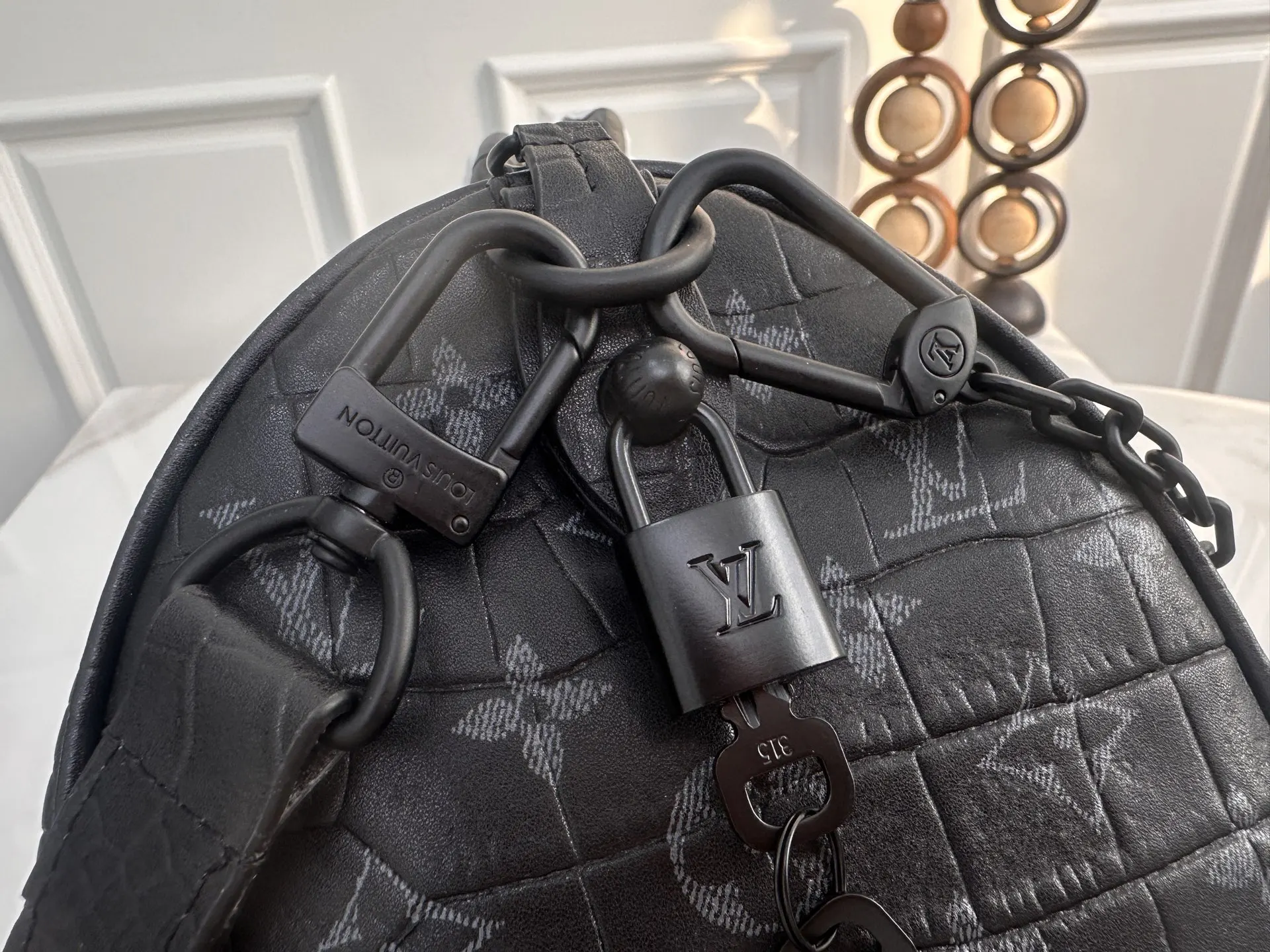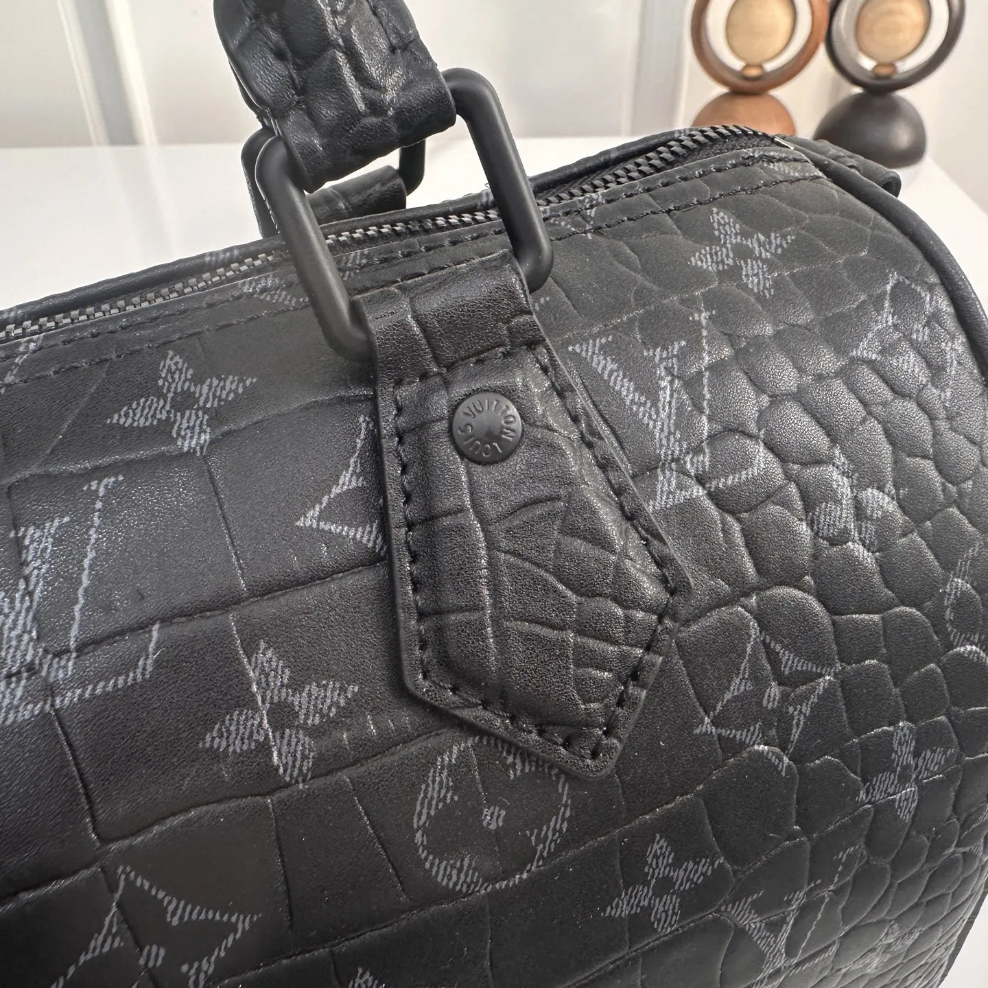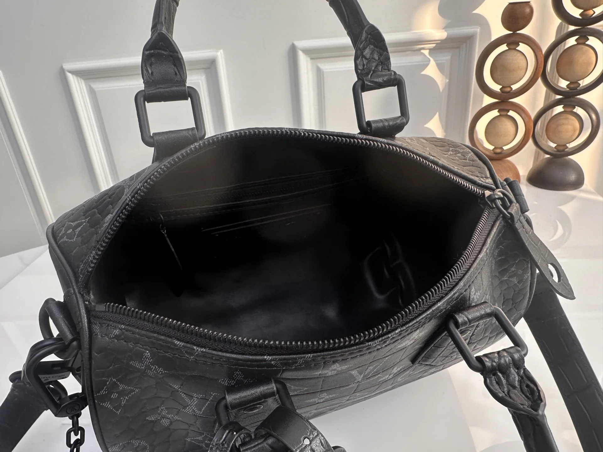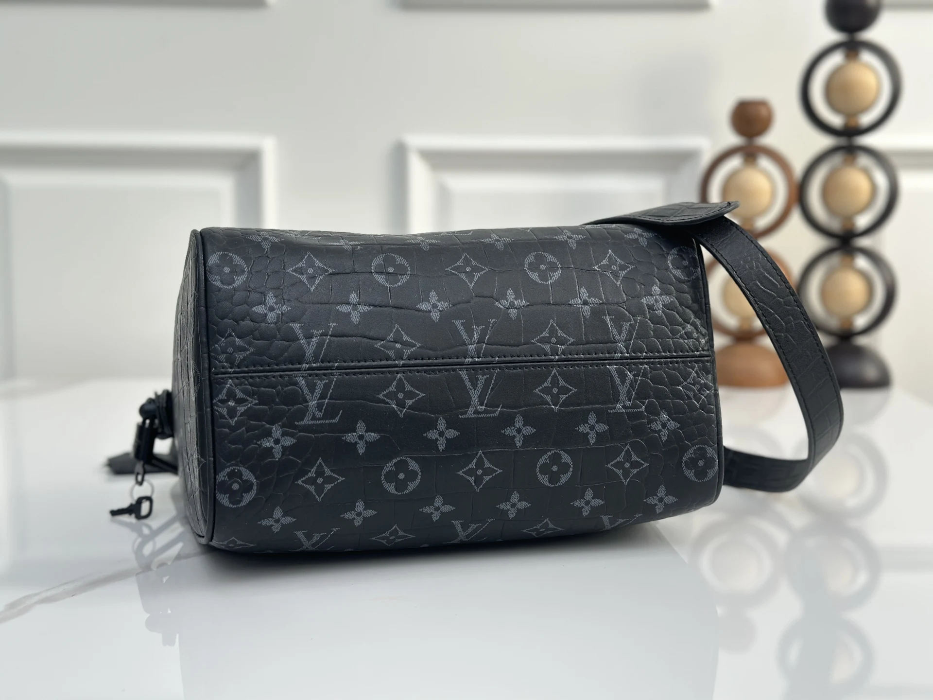 顶级原单 独家实拍M13904黑鳄鱼纹]M14007黑 peedy P9 Bandouliere30手袋采用印有经典Monogram图案的牛皮革精心打造 尺寸设计恰到好处 既紧凑轻便 又足以容纳日常所需 手袋在细节处尽显精湛工艺 从复古侧锁到奢华的羊皮革内衬 每处都体现品牌出对品质的不懈追求 除了顶部手柄设计 还配备可拆卸肩带 提供多样化的携带方式 22.5x18x32厘米(高x宽x长度)