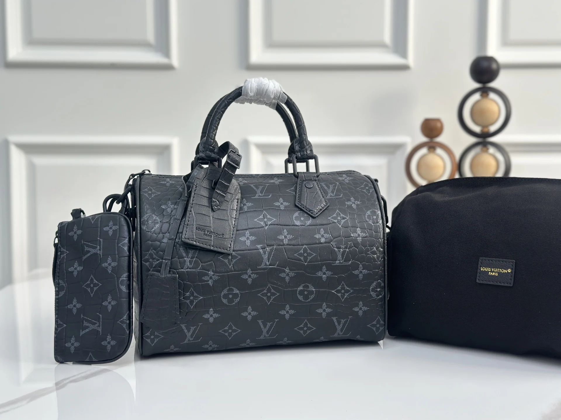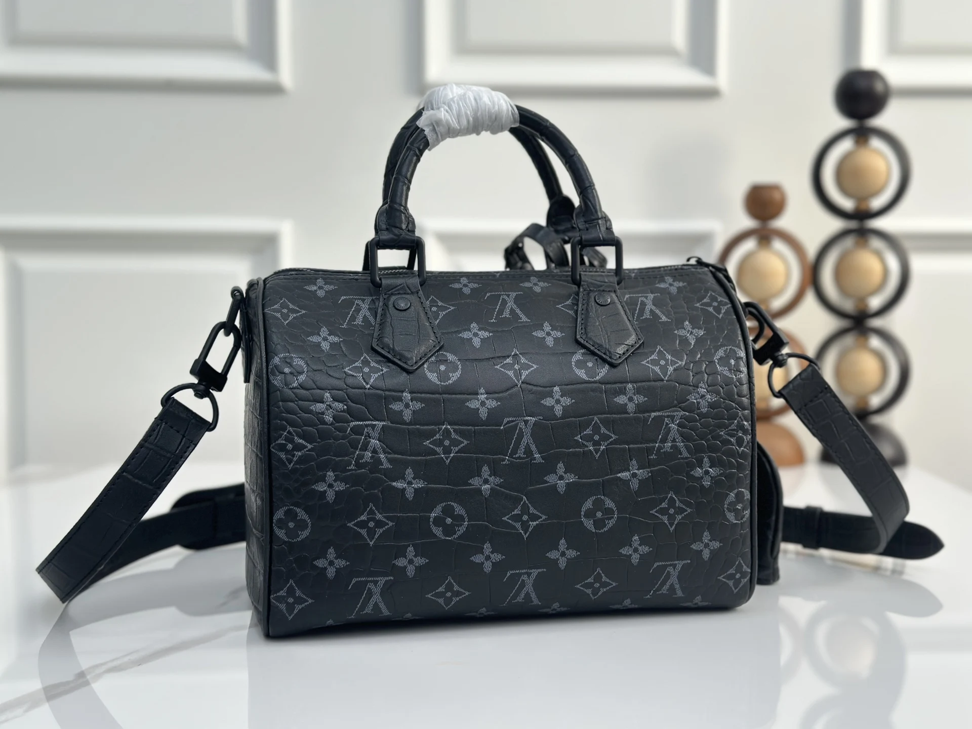 顶级原单 独家实拍M13904黑鳄鱼纹]M14007黑 peedy P9 Bandouliere30手袋采用印有经典Monogram图案的牛皮革精心打造 尺寸设计恰到好处 既紧凑轻便 又足以容纳日常所需 手袋在细节处尽显精湛工艺 从复古侧锁到奢华的羊皮革内衬 每处都体现品牌出对品质的不懈追求 除了顶部手柄设计 还配备可拆卸肩带 提供多样化的携带方式 ..