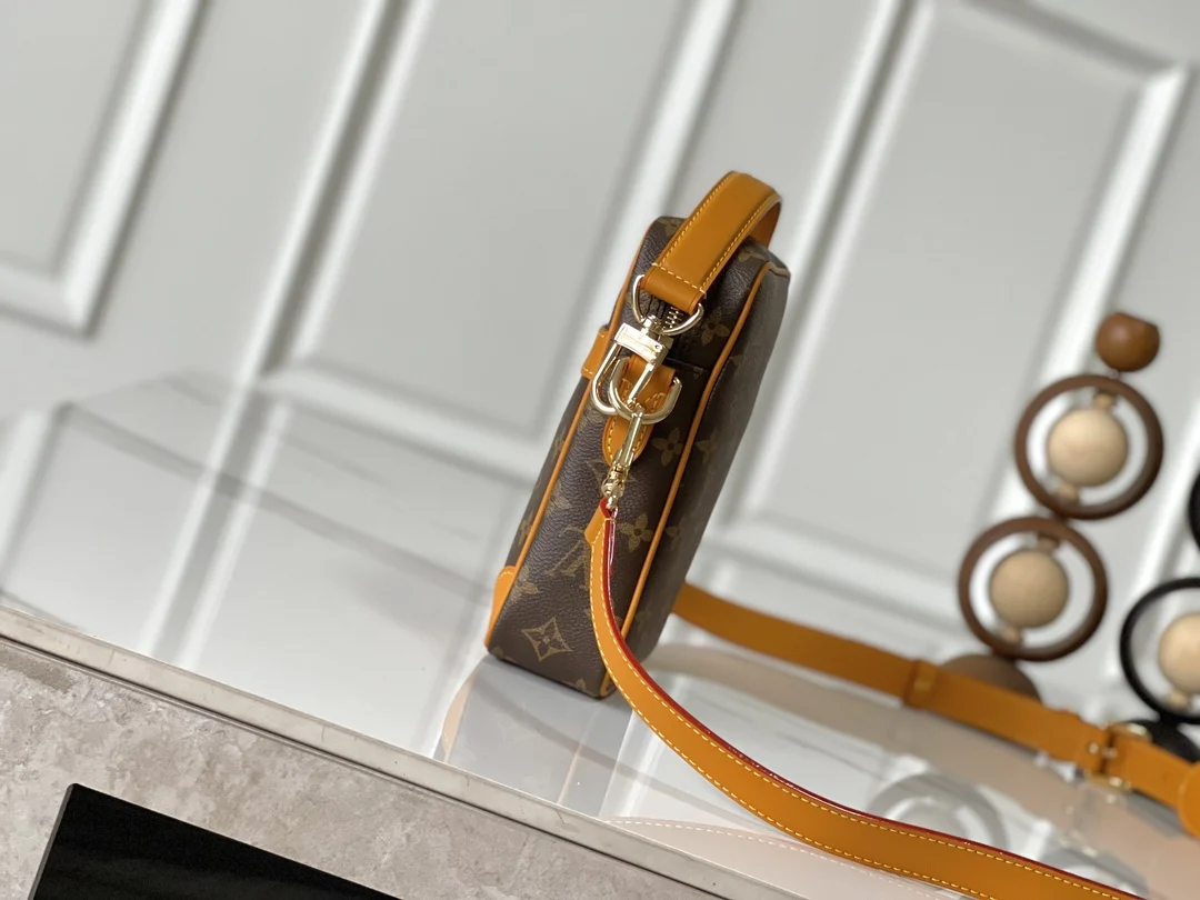 变码芯片版 独家实拍 M14013手机包 春夏系列中 Pharrel Wiliams探游品牌珍藏档案 从80年代的时尚中汲取灵感 匠心铸就Danube斜挎包 风格隽永 历久弥新 包身采用柔滑Monogram帆布精制 臻选做旧牛皮革润饰边缘 珍珠拉链延续Pharrel Wiliams在上一系列的经典素 另设可卸式手柄与肩带 随心切换携行方式 尺寸 16×21×6cm