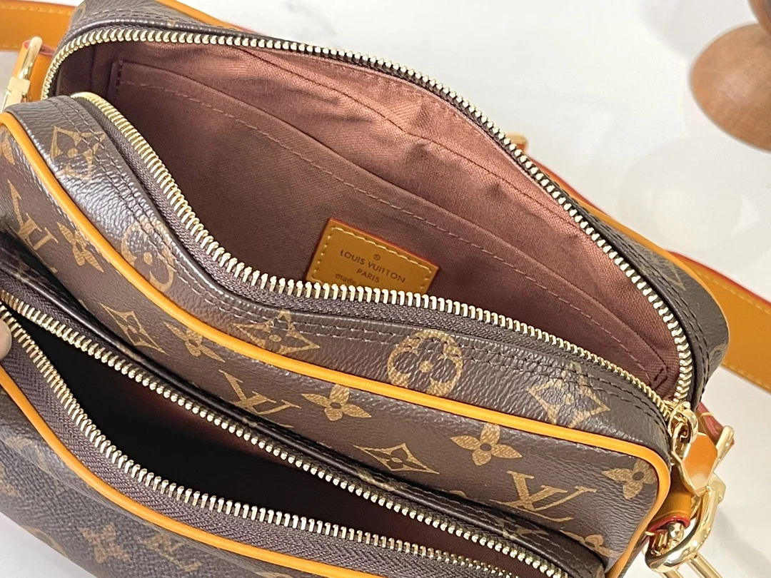 Nil 手袋时尚小巧 属于 Monogram Archive 系列 以 Monogram 涂层帆布制作包身 并饰以牛皮革镶边 手袋融合复古细节与现代雅致格调 包角经过加固 并搭配 Pharrell Williams 新近推出的珍珠拉链 可拆卸手柄与背带灵活便携