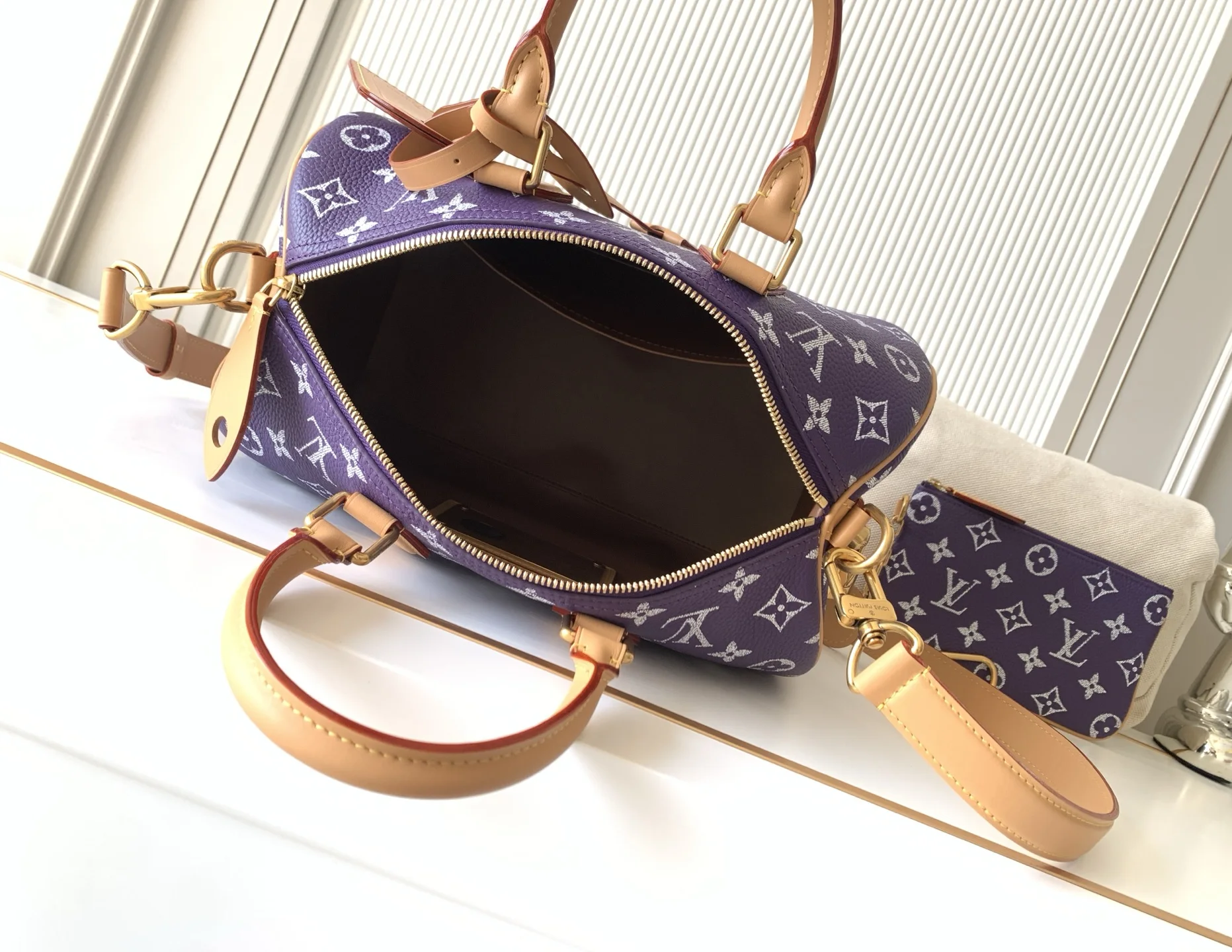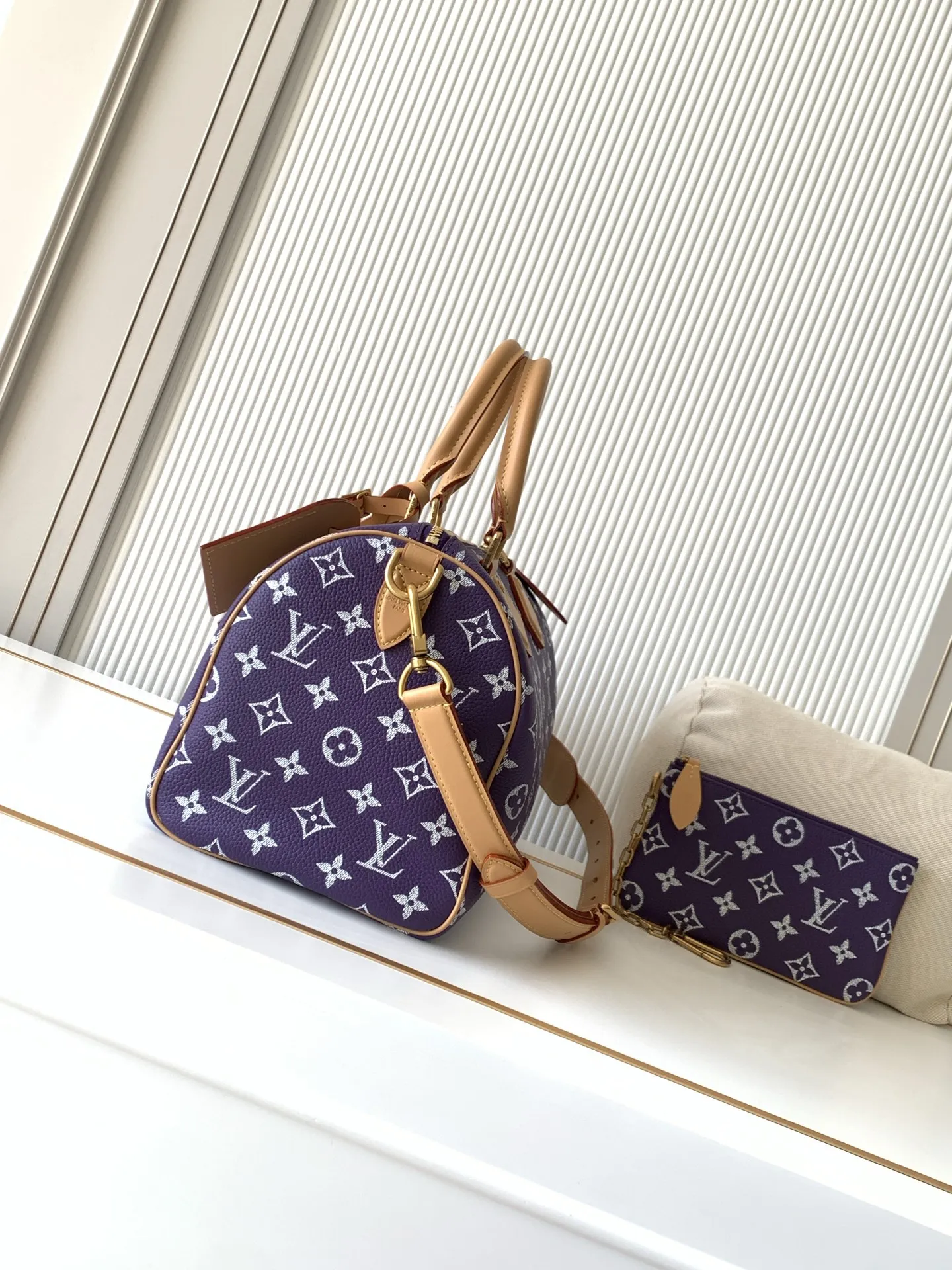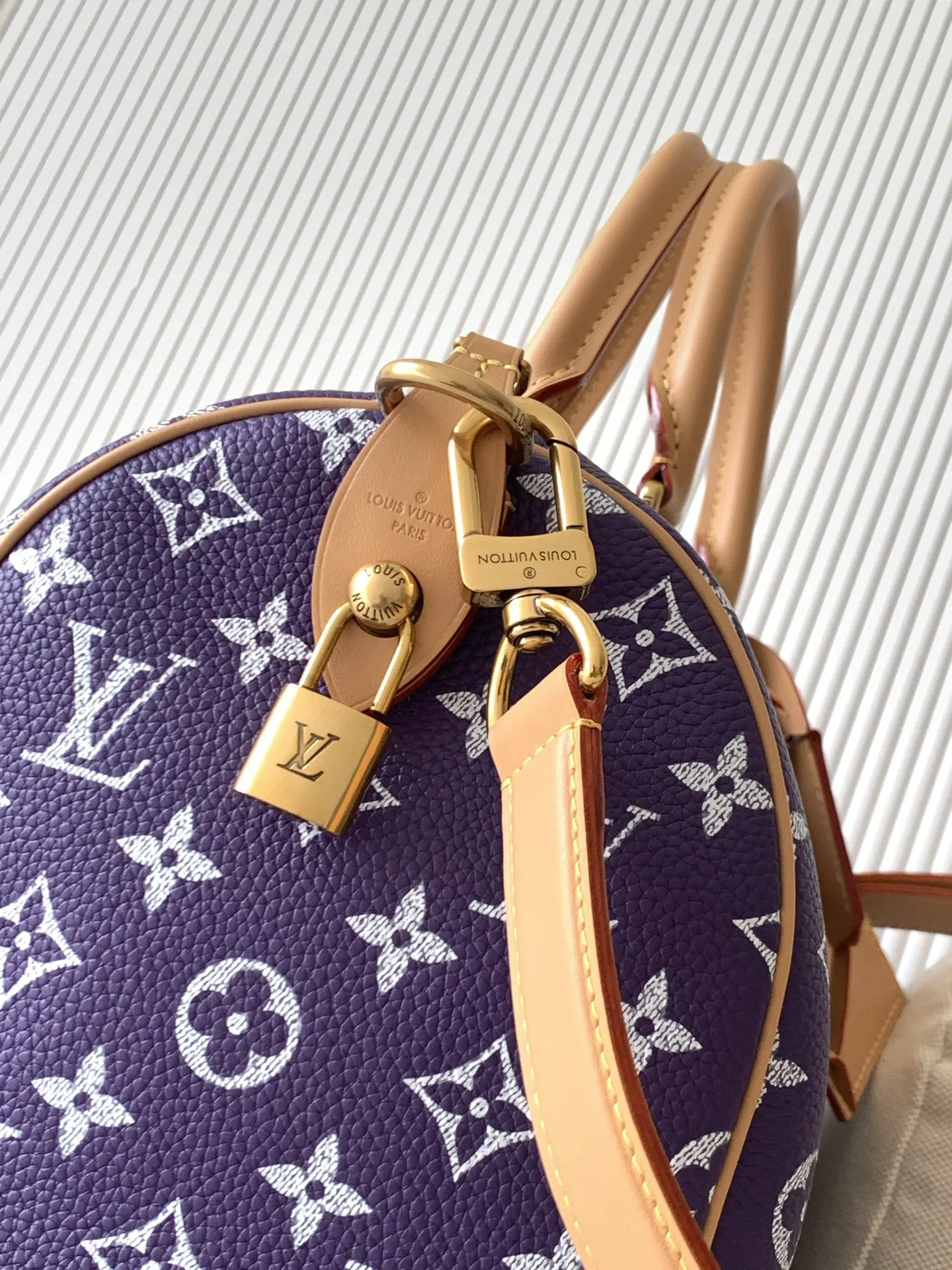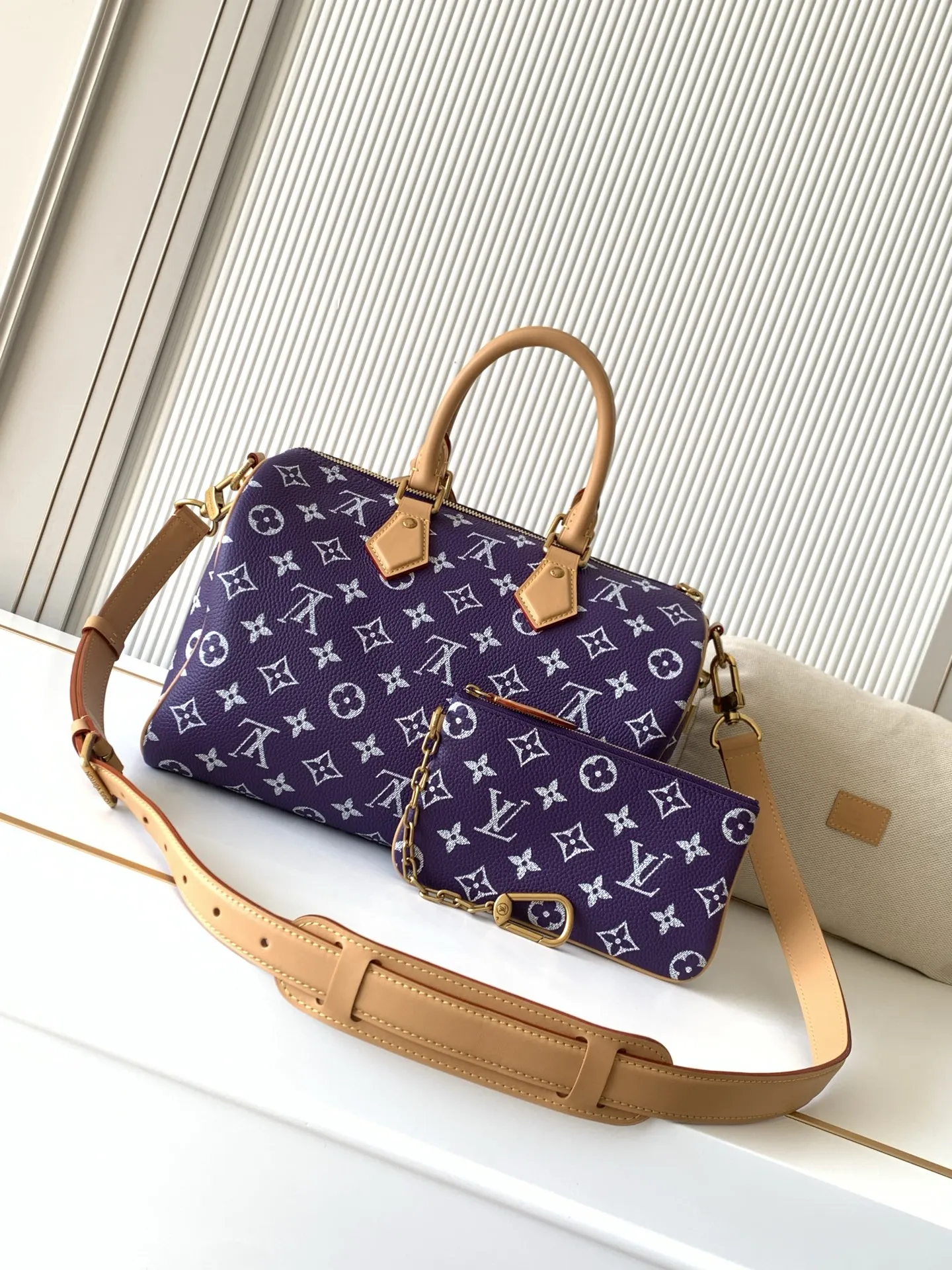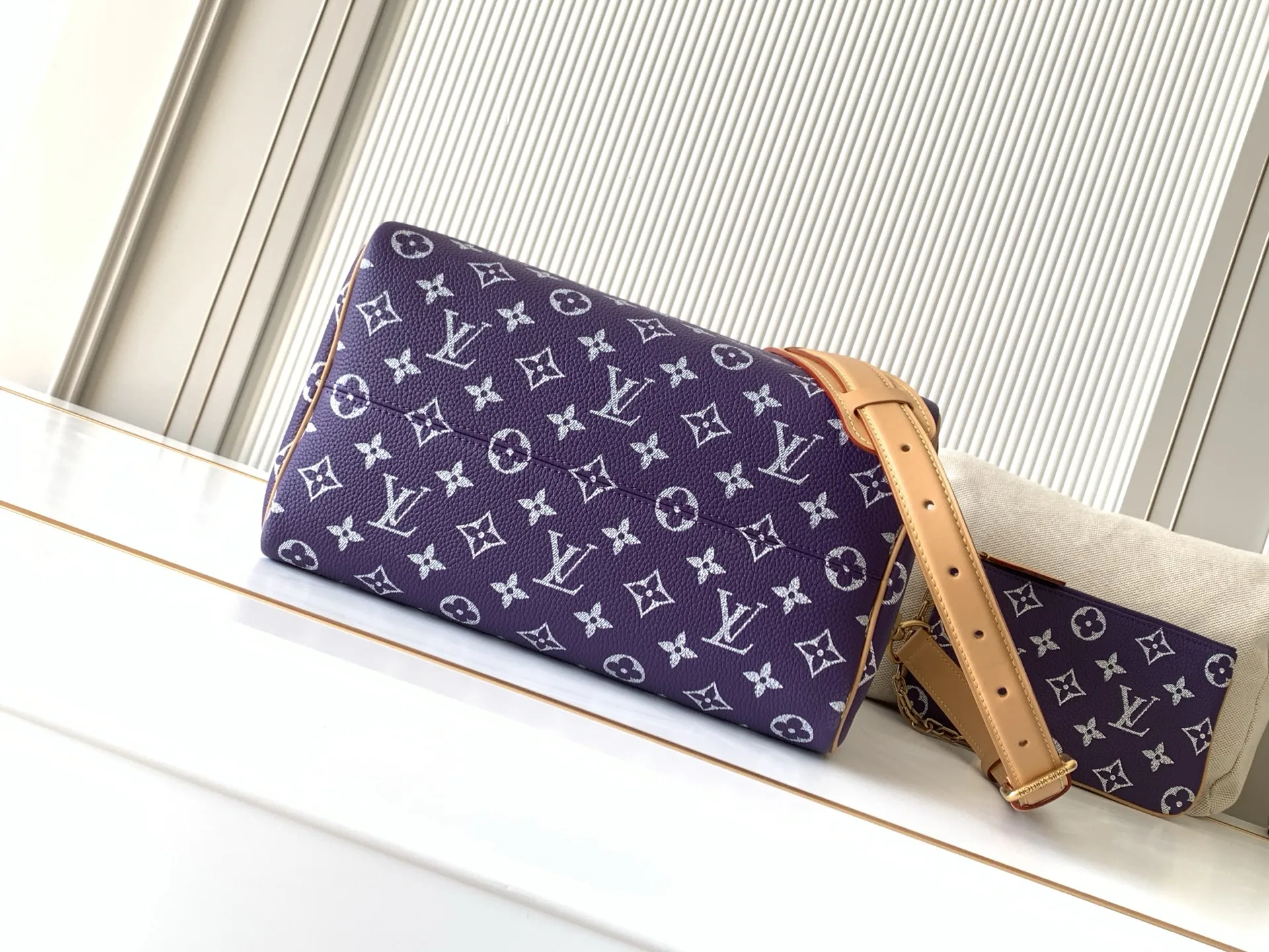 全钢五金 MB163c01变码芯片 款号M14064紫色 本款Speedy P9 Bandouliere30手袋于细腻牛皮革表面描绘