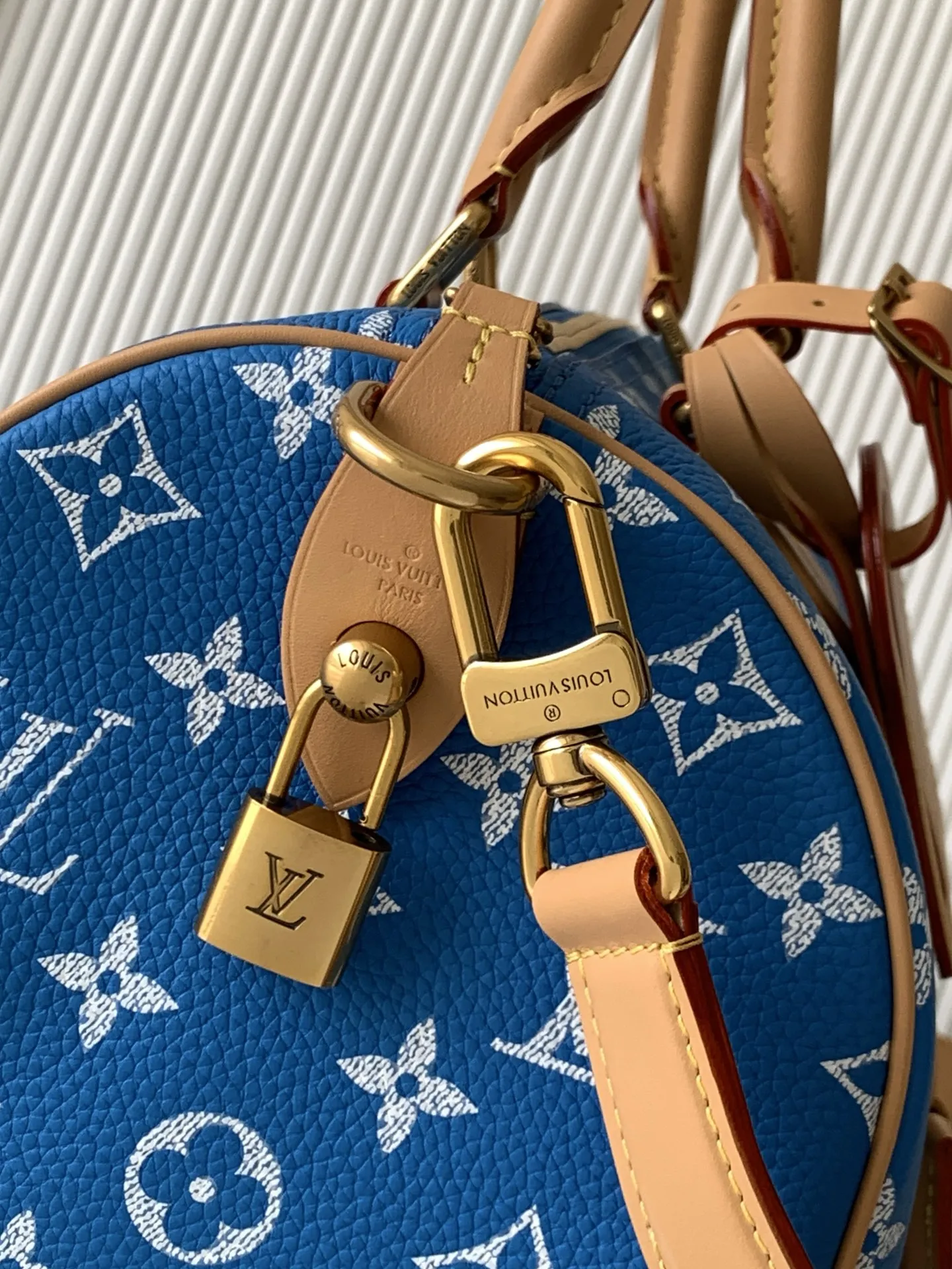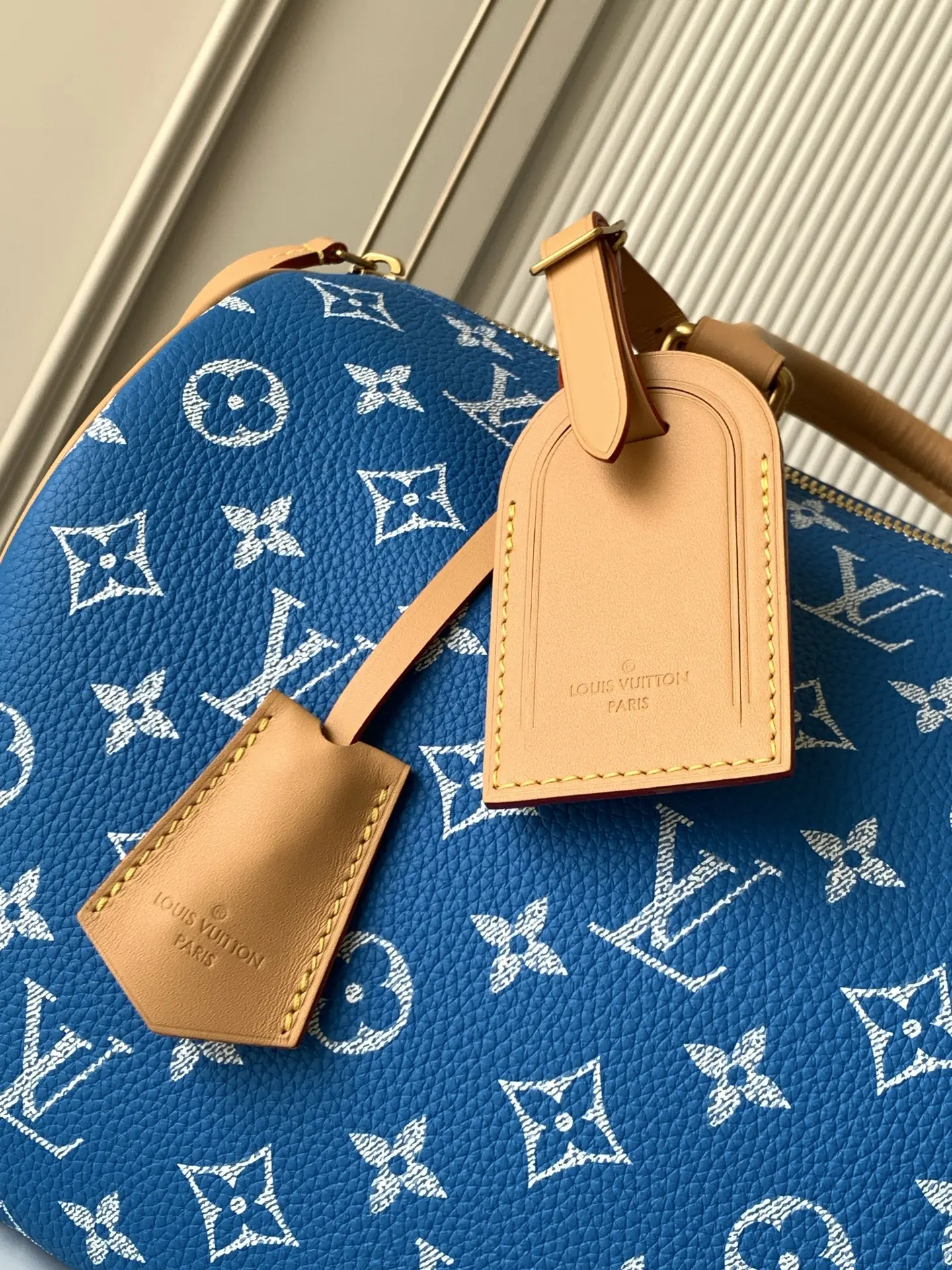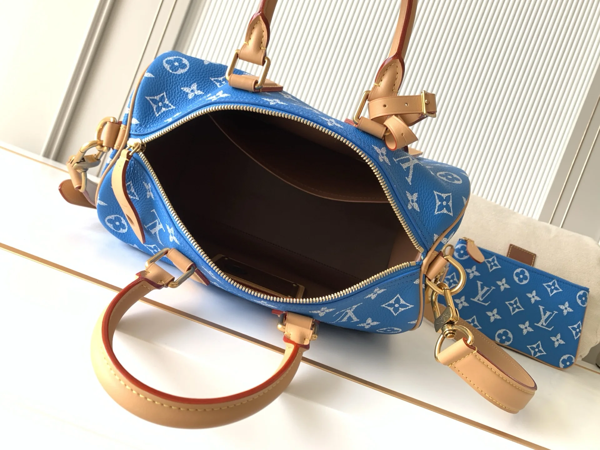 全钢五金 MB163c01变码芯片 款号M14074中蓝 本款Speedy P9 Bandouliere30手袋于细腻牛皮革表面描绘