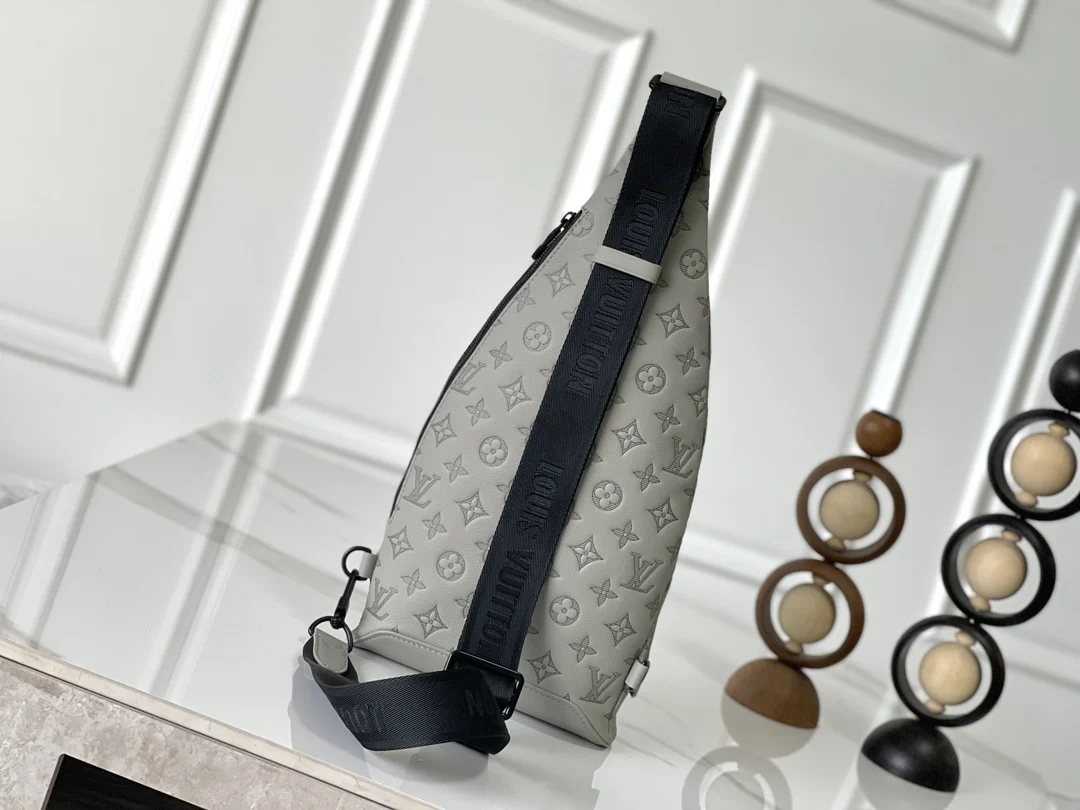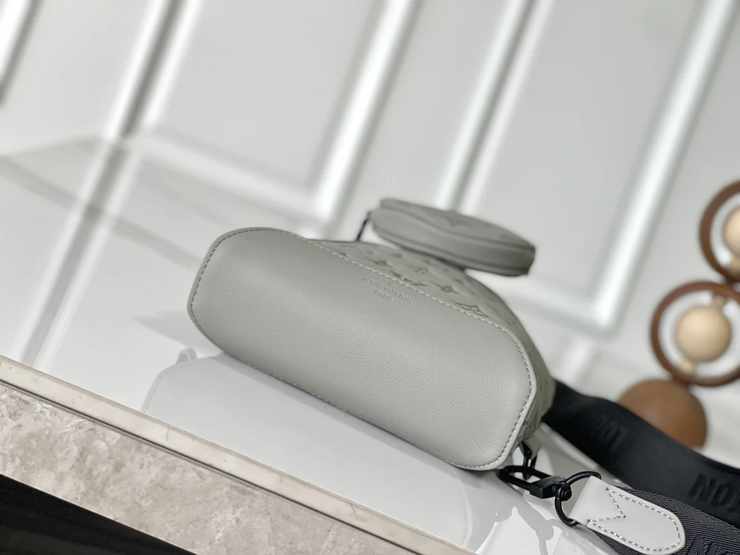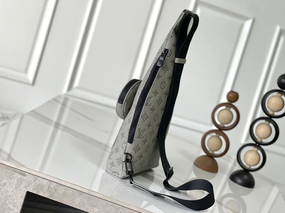 变码芯片版 独家实拍 M14916灰色 全皮压花胸包 Duo 单肩包 本款 Duo 单肩包以柔软牛皮革塑造贴身构型 成就传统双肩包之外的实用之选 拉链侧袋可收纳智能手机 可拆卸收纳包方便取放物品 可调节提花织物肩带实现左右肩背 42 x 6 x 20 厘米 (高 x 宽 x 长度)