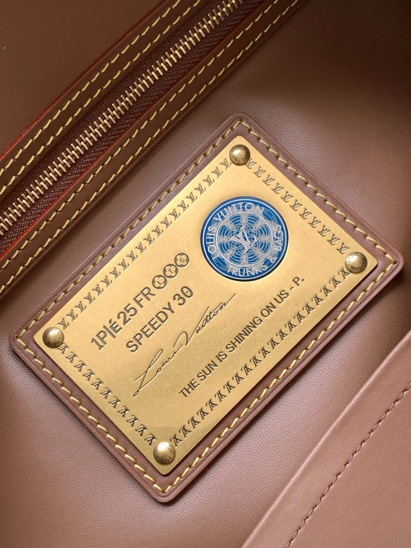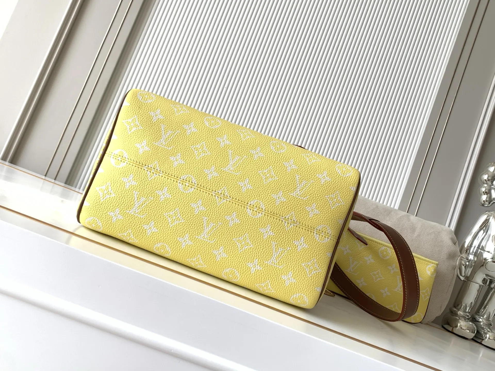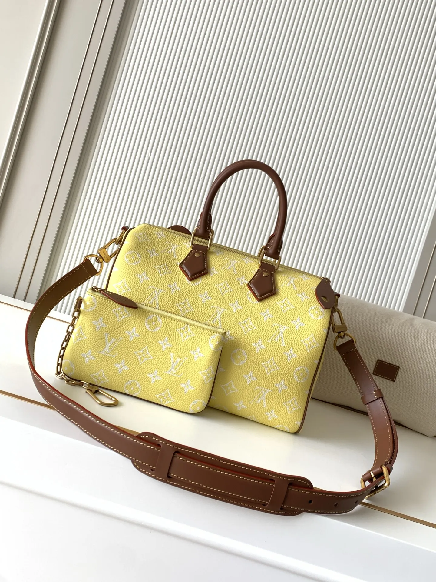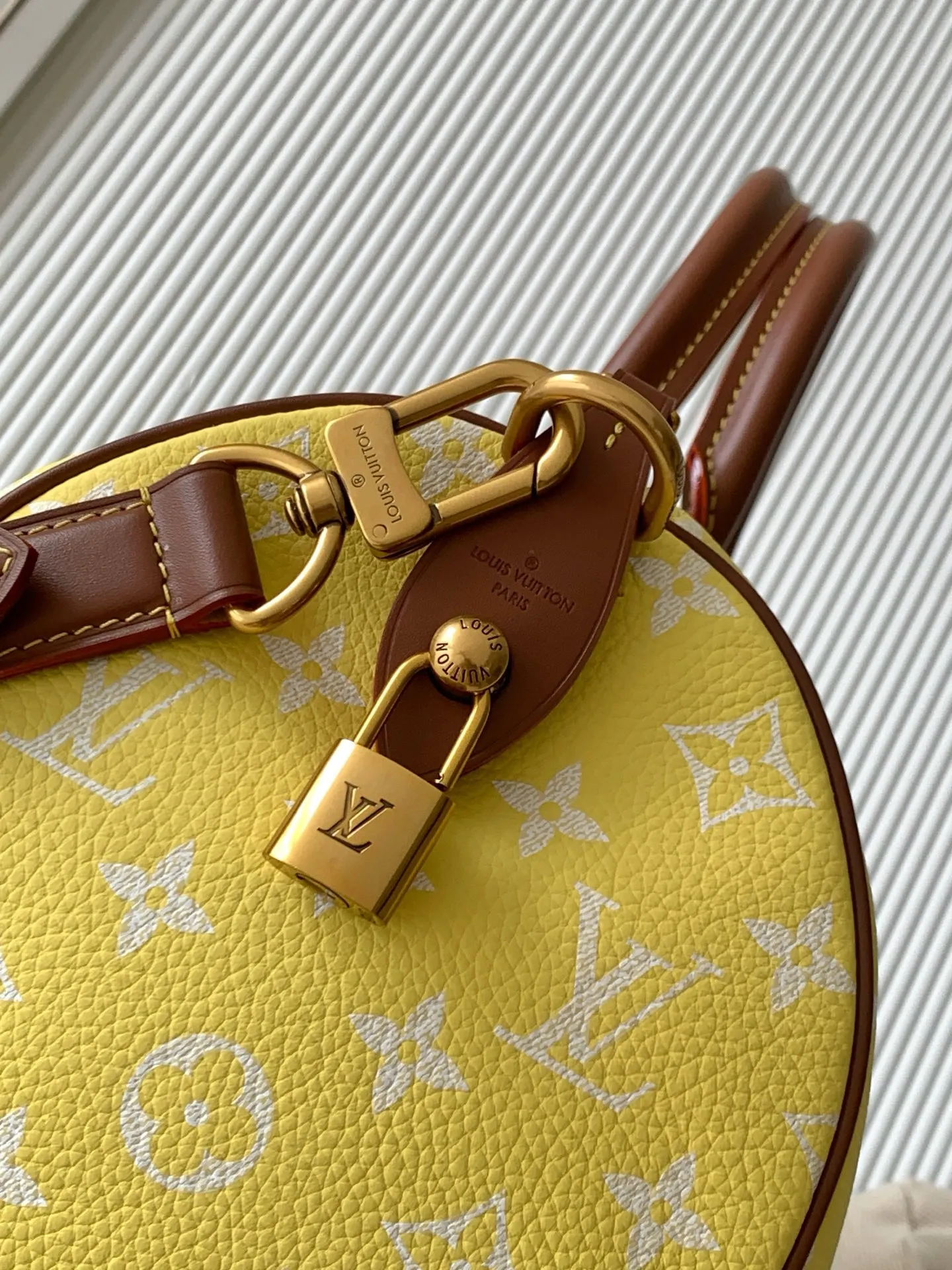全钢五金 MB163c01变码芯片 款号M15242黄色配棕 本款Speedy P9 Bandouliere30手袋于细腻牛皮革表面描绘