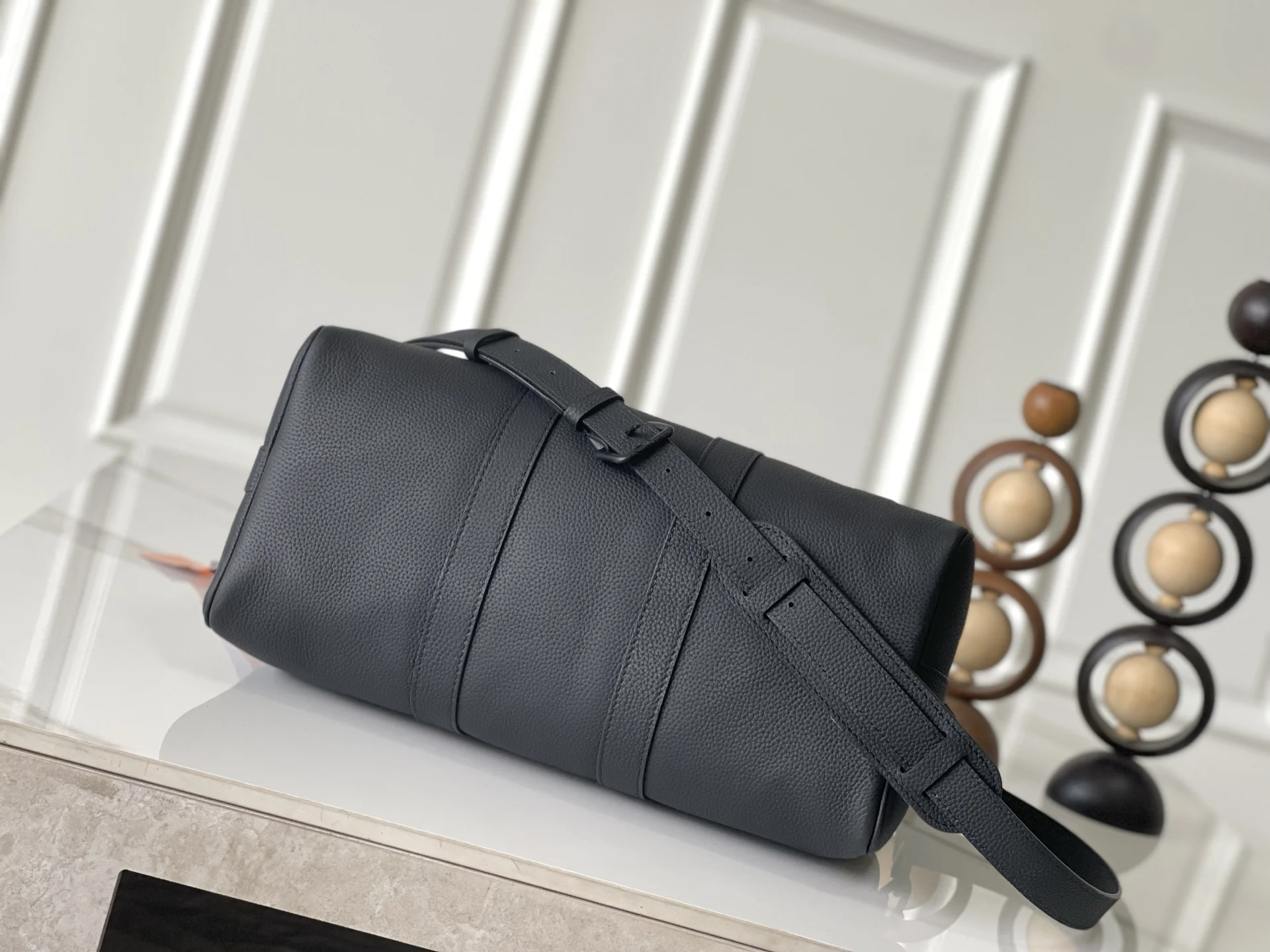 M15249半钢163芯片 全皮旅行袋 Keepall Bandouliere 35手袋 这款实用百搭的Keepall Bandouliere 35袋款采用蜡面小牛皮制作 以耐用且柔软的粒面纹理而闻名 內里缀有同色调的纺织衬里 容量宽敞 可轻松收纳日常必需品 设计饰有LV Aerogram系列标志性的LV Initials压花标志 34 x 21 x 16 厘米(长度 x 高度 x 阔度)DZ75%