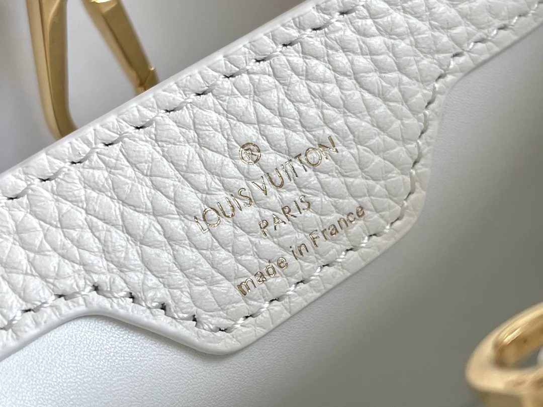 163 芯片 特级配全套包装 特级精品原厂皮M22375M20844白色花卉三拼 本款 Capucines BB 手袋取材 Taurillon 皮革 隐约映现同一色彩的浓淡变化 令经典构型更为瞩目 搭配珐琅 Monogram 花卉链条 可手提 肘挎或系上肩带肩背或斜挎