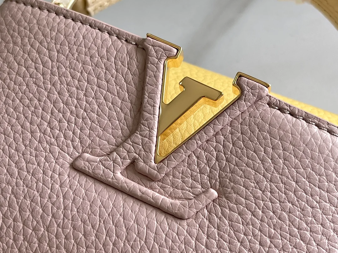 特级配全套包装 特级精品原厂皮M22514M20845西柚粉色花卉三拼 本款 Capucines 迷你手袋展现柔婉之美 Taurillon 皮革包身搭配浅色翻盖和顶部手柄 珐琅 Monogram 花卉链条亦可成就肩背体验 系上纤细皮革肩带 探索更多造型可能