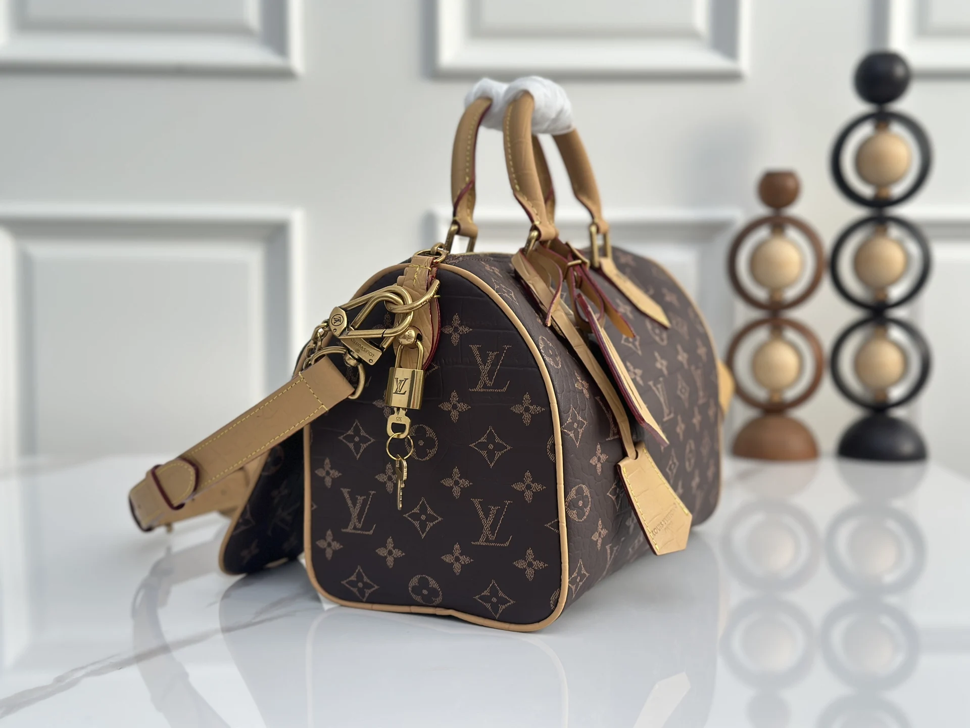 顶级原单 独家实拍M24425老花鳄鱼纹]M244230peedy P9 Bandouliere30手袋采用印有经典Monogram图案的牛皮革精心打造 尺寸设计恰到好处 既紧凑轻便 又足以容纳日常所需 手袋在细节处尽显精湛工艺 从复古侧锁到奢华的羊皮革内衬 每处都体现品牌出对品质的不懈追求 除了顶部手柄设计 还配备可拆卸肩带 提供多样化的携带方式 22.5x18x32厘米(高x宽x长度)