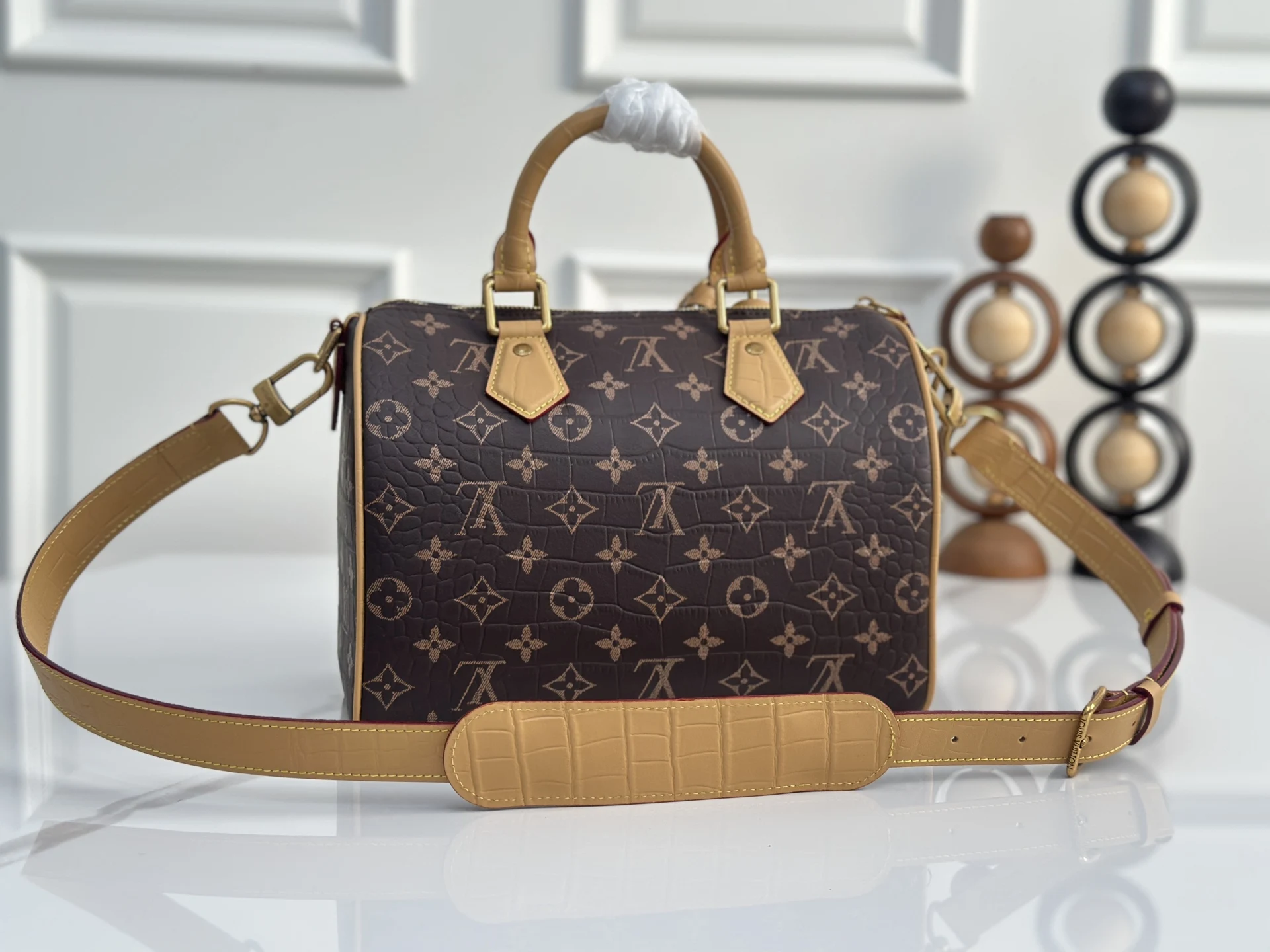 顶级原单 独家实拍M24425老花鳄鱼纹]M244230peedy P9 Bandouliere30手袋采用印有经典Monogram图案的牛皮革精心打造 尺寸设计恰到好处 既紧凑轻便 又足以容纳日常所需 手袋在细节处尽显精湛工艺 从复古侧锁到奢华的羊皮革内衬 每处都体现品牌出对品质的不懈追求 除了顶部手柄设计 还配备可拆卸肩带 提供多样化的携带方式 ..