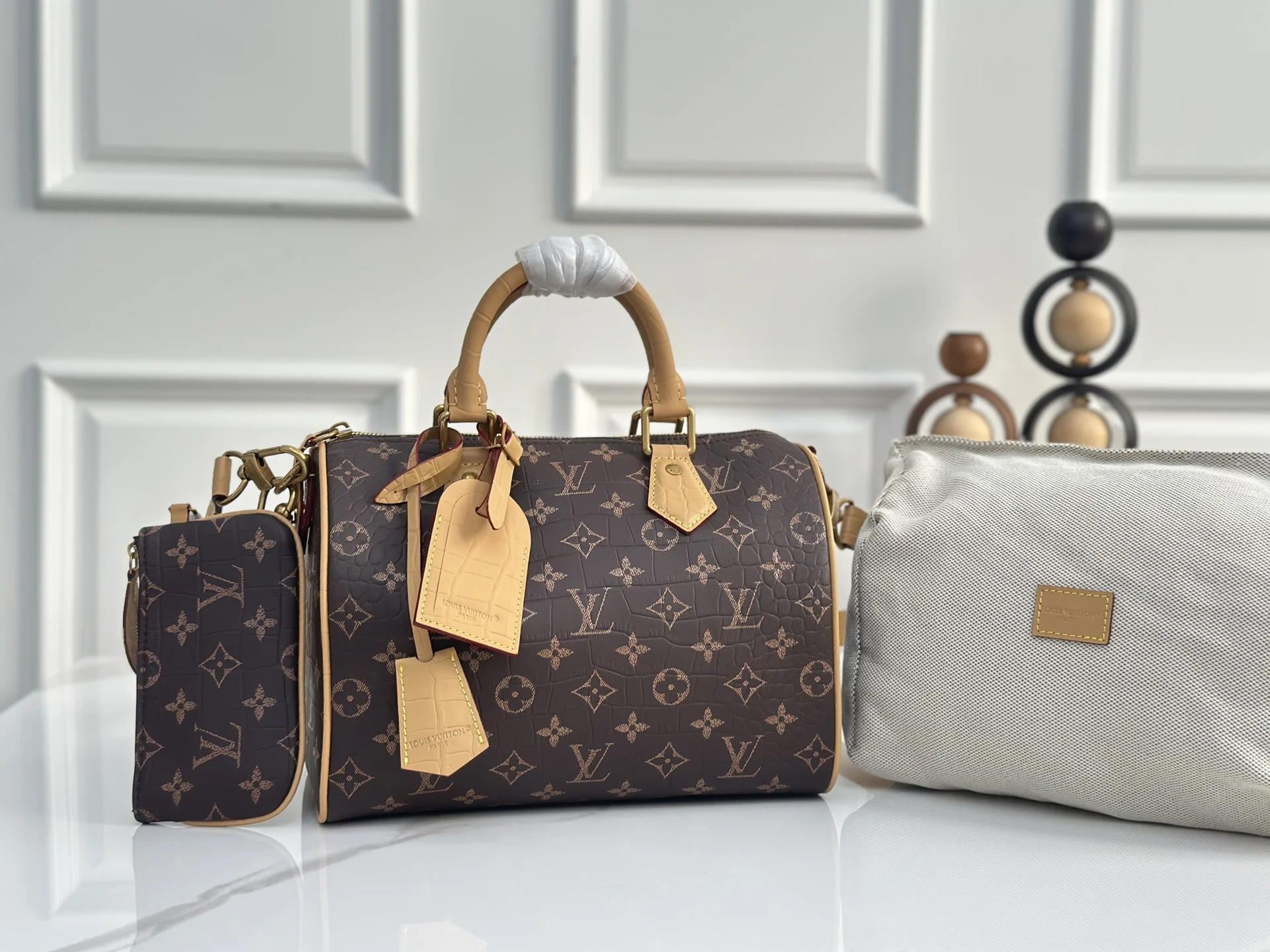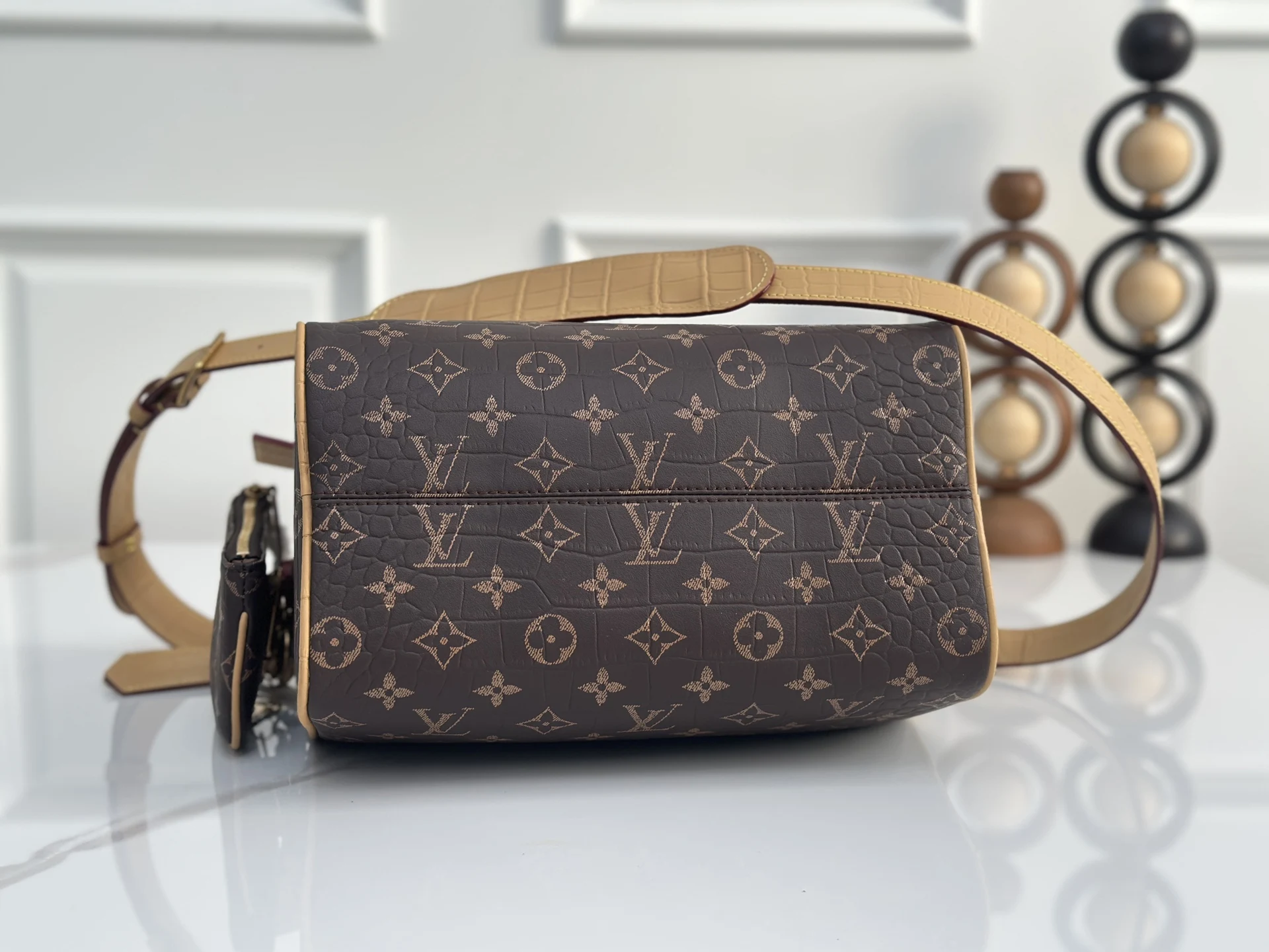顶级原单 独家实拍M24425老花鳄鱼纹]M244230peedy P9 Bandouliere30手袋采用印有经典Monogram图案的牛皮革精心打造 尺寸设计恰到好处 既紧凑轻便 又足以容纳日常所需 手袋在细节处尽显精湛工艺 从复古侧锁到奢华的羊皮革内衬 每处都体现品牌出对品质的不懈追求 除了顶部手柄设计 还配备可拆卸肩带 提供多样化的携带方式 22.5x18x32厘米(高x宽x长度)
