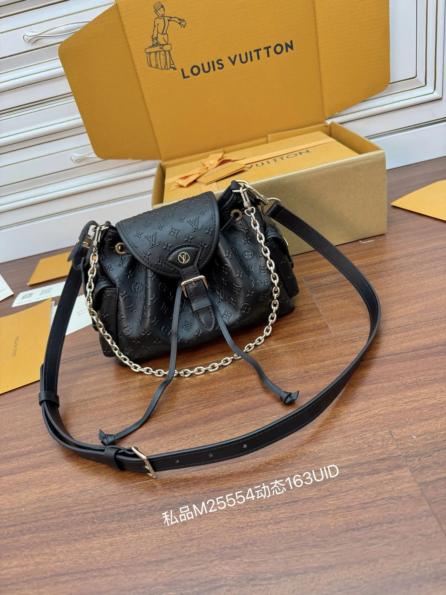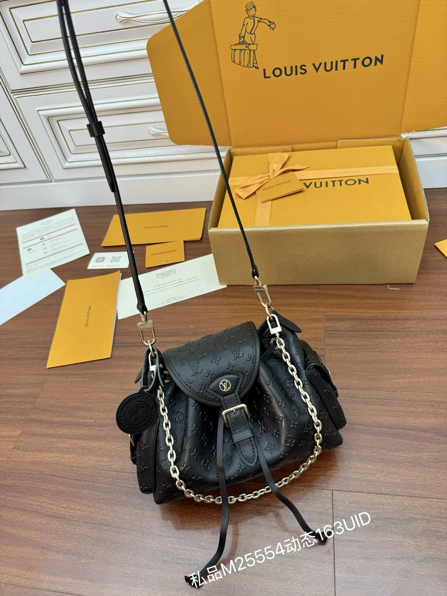 独家163首发型号 M25554私品 163动态UID 进口菱形面料 品质第九次升级 进口原厂皮 专柜同步 动态电子芯片 礼品袋 保护纸 铜版电子标签 合格证 皮料是正品代工厂意大利A级树膏皮 私品 :所谓的私品 是在于品质 五金 面料 手工 油边 A级出品 拍摄图跟产品一致丶配图上的全套包装.尺寸:27x17x12CM