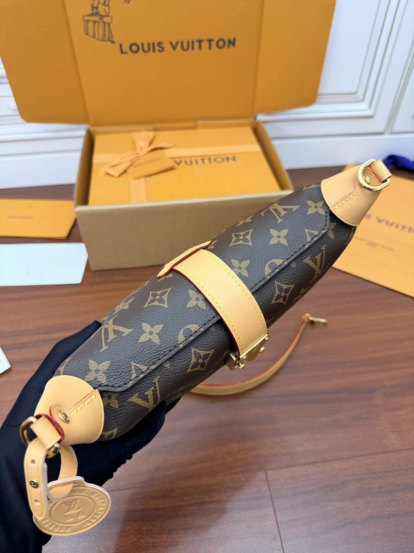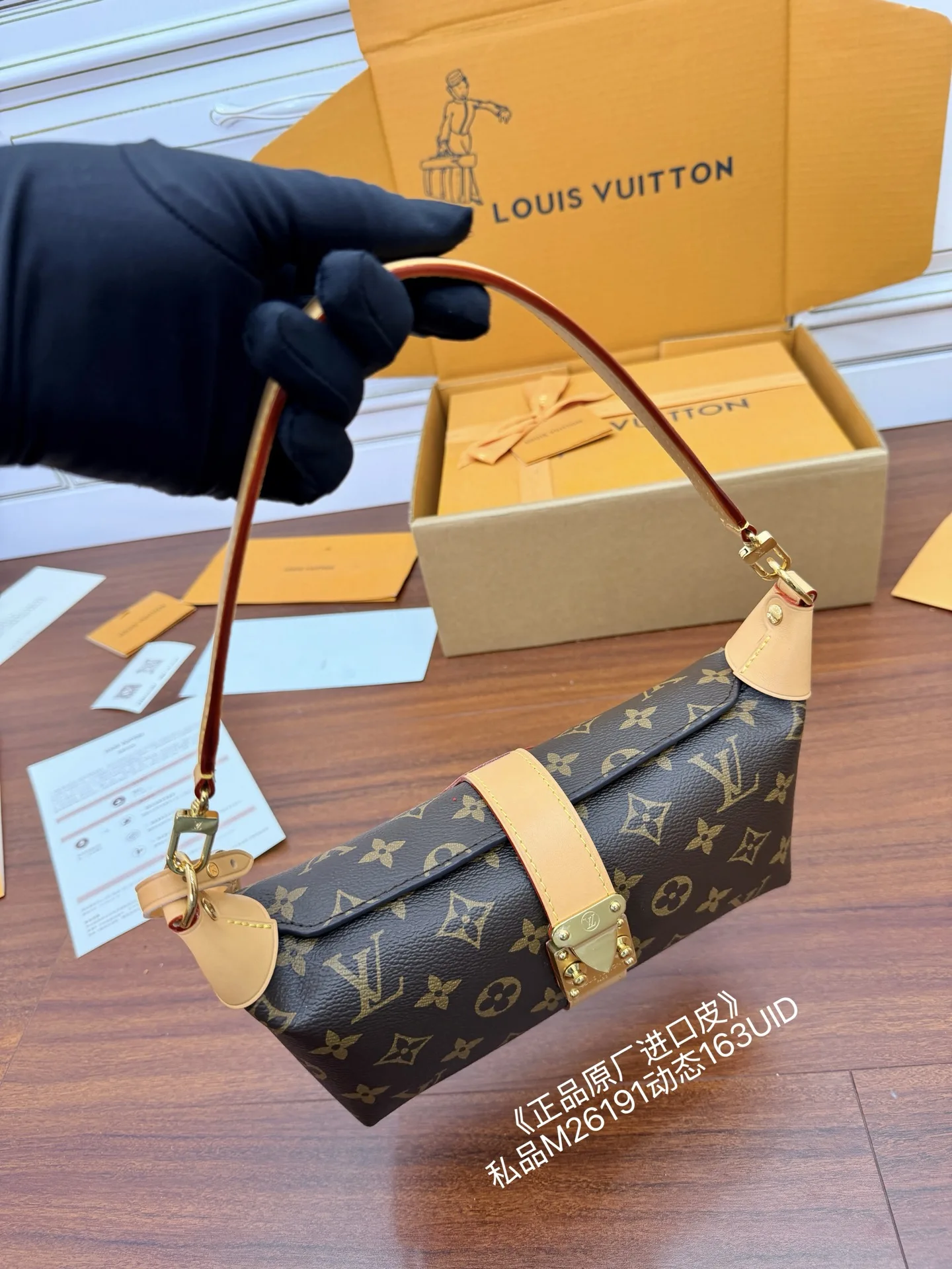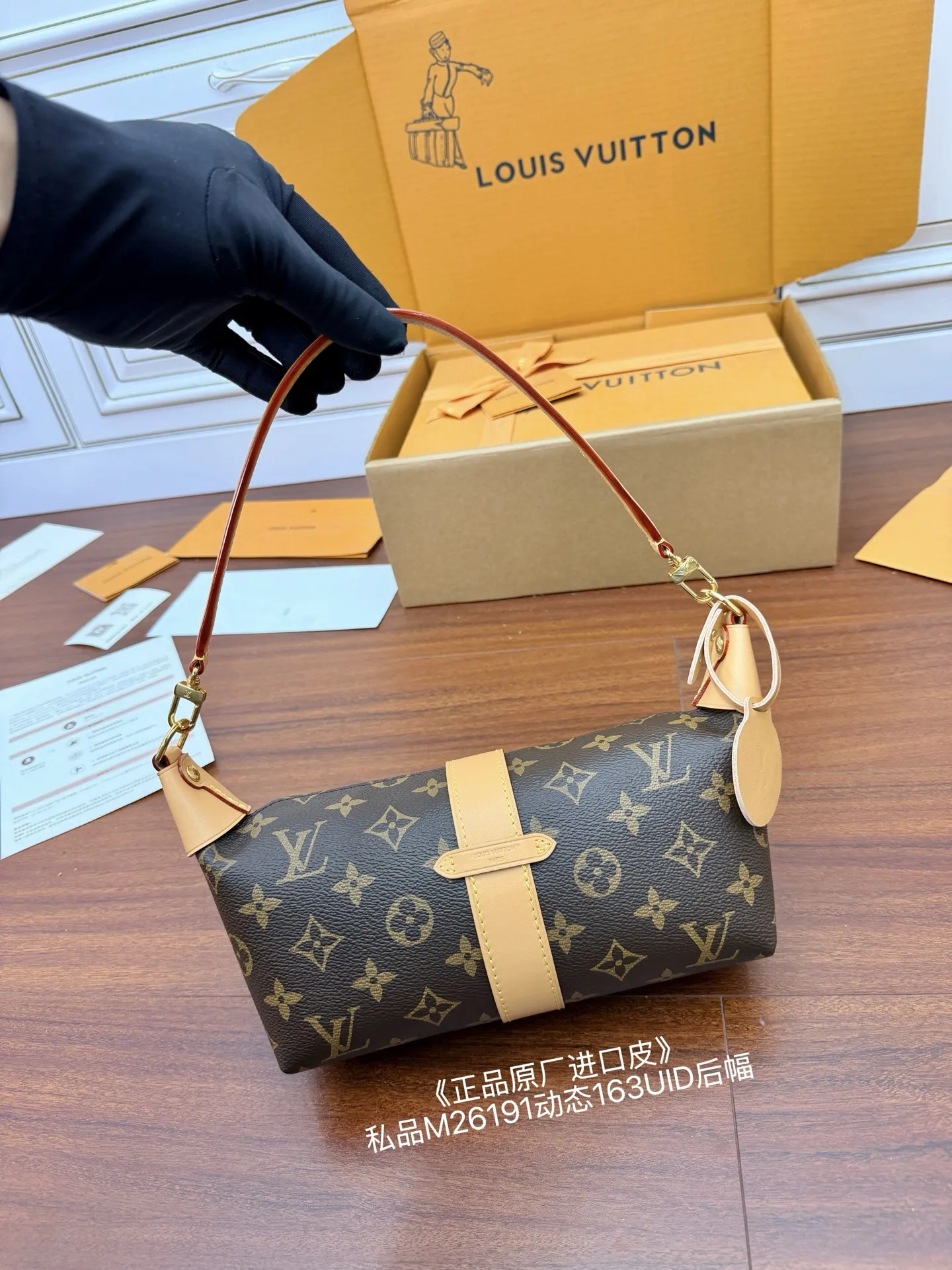 独家(正品原厂进口皮)首发型号 M26191私品 163动态UID 进口菱形面料 品质和材料第九次再次升级 专柜同步 动态电子芯片 礼品袋 保护纸 铜版电子标签 合格证 皮料是正品代工厂意大利A级树膏皮 私品 是在于品质 五金 面料 手工 油边 是A级出品 拍摄图跟产品一致丶配图上的全套包装.尺寸 22x14.5x8CM