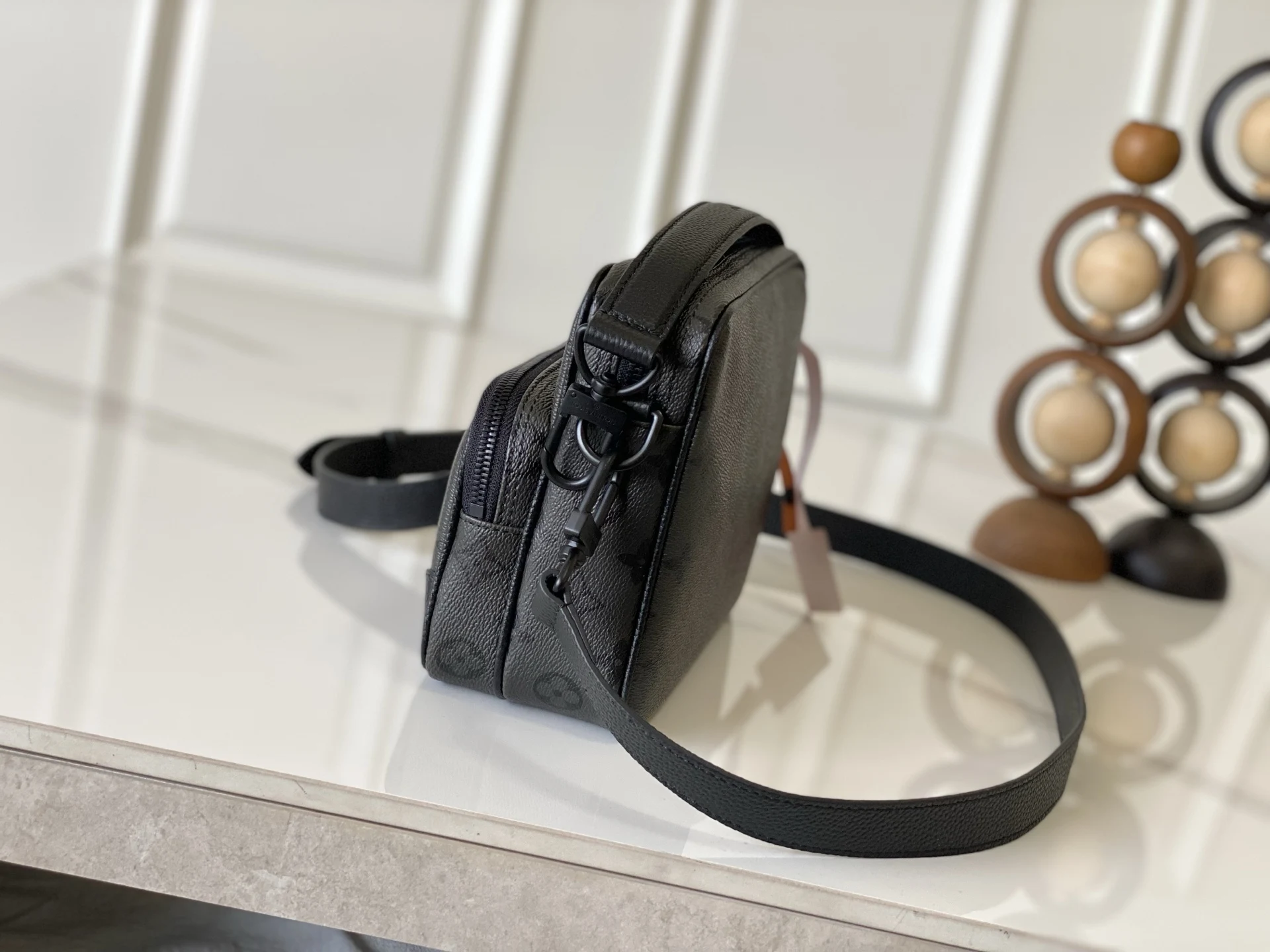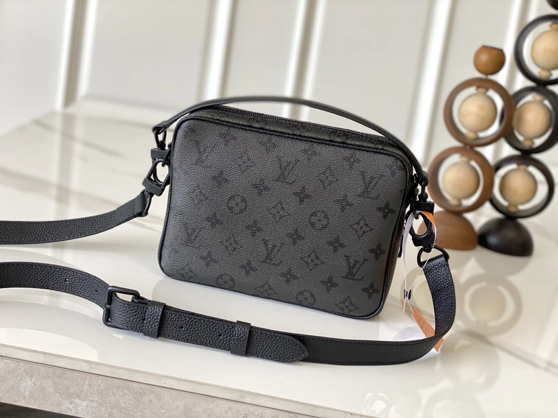 独家实拍 M26783 本款 Nil 斜挎包以 Monogram Midnight 涂层帆布摩登演绎 Monogram 图案 Monogram 花卉及 LV 字母 雅致配色烘托内敛复古构型 可拆卸顶部手柄与肩带提供多样背携选择
