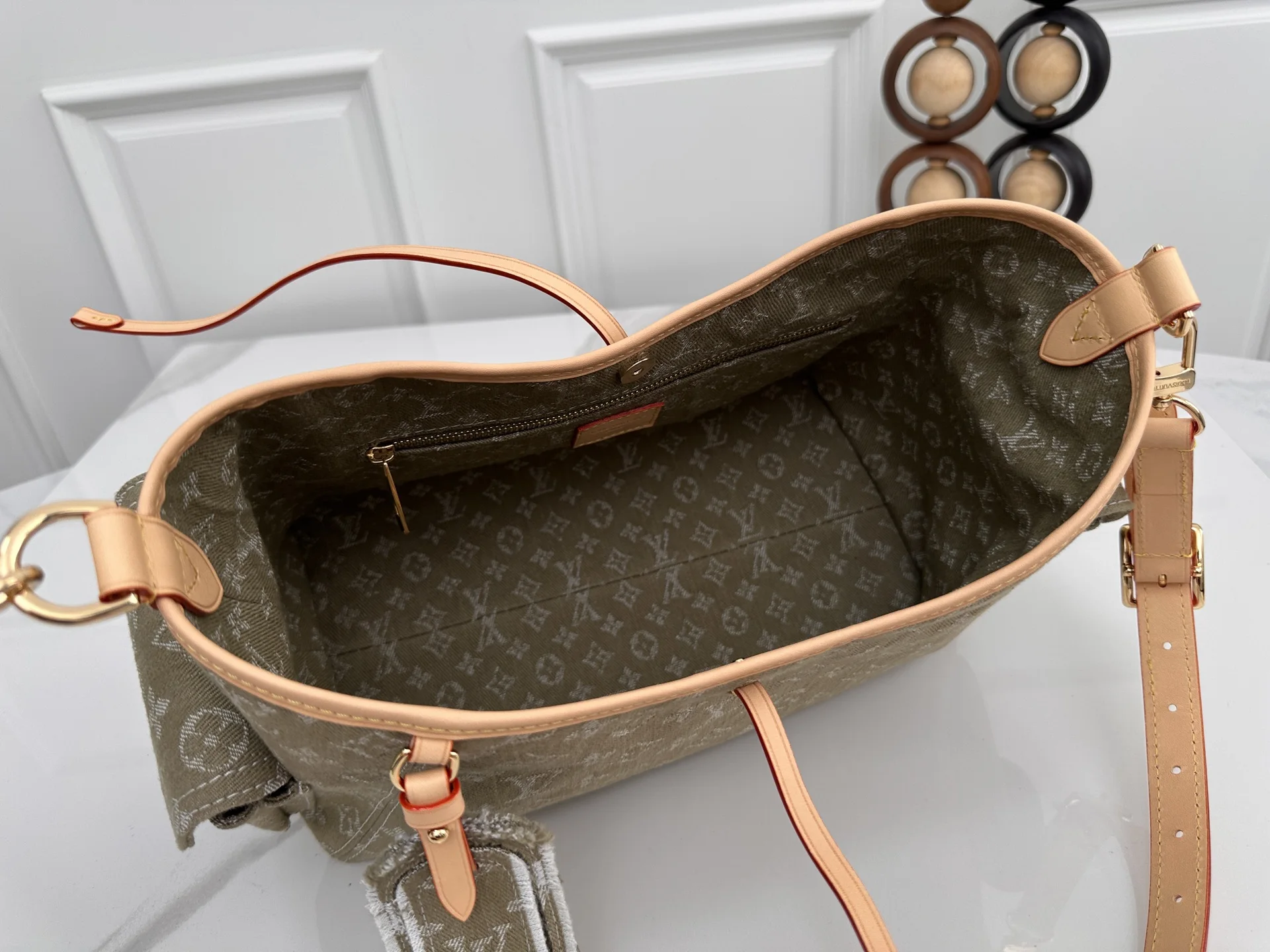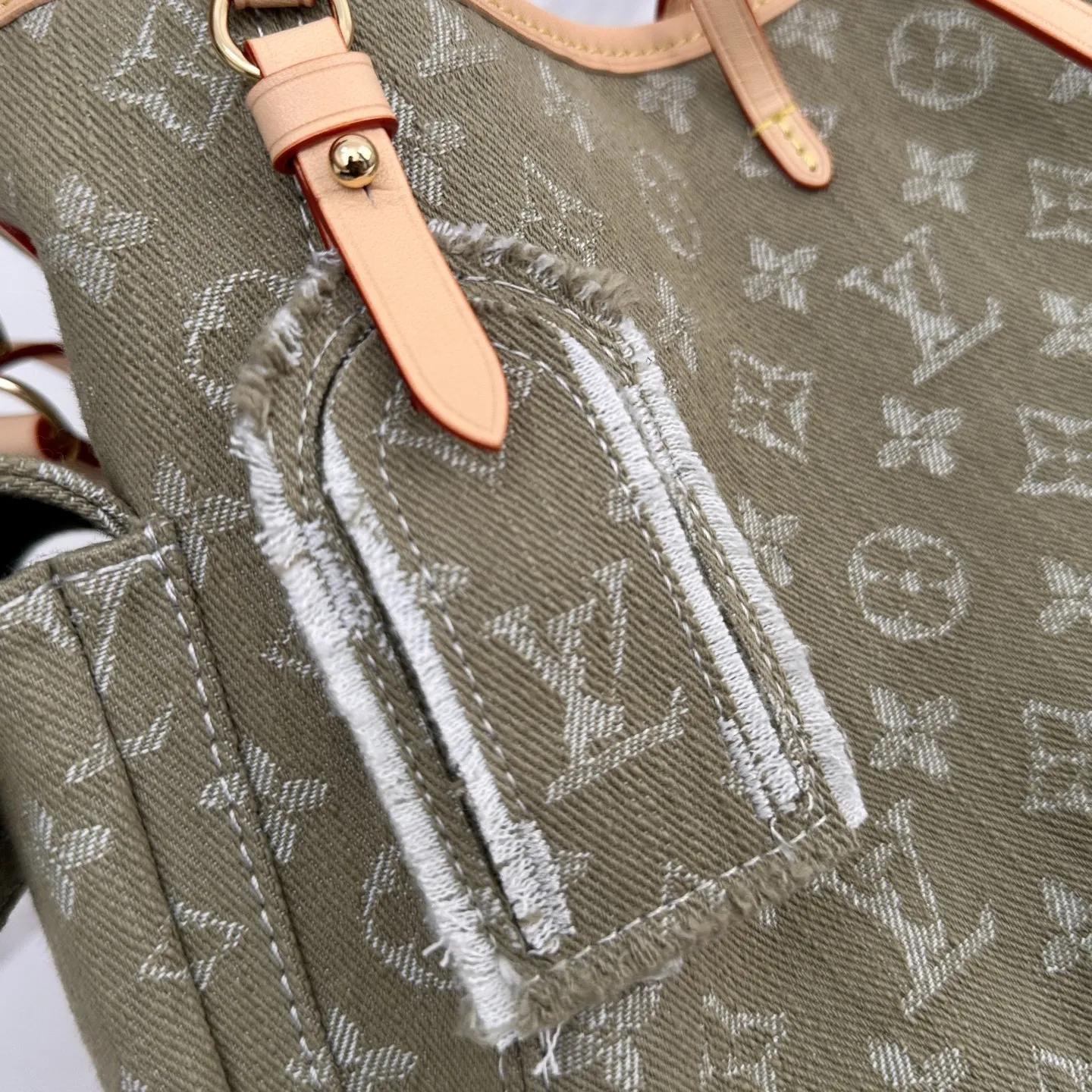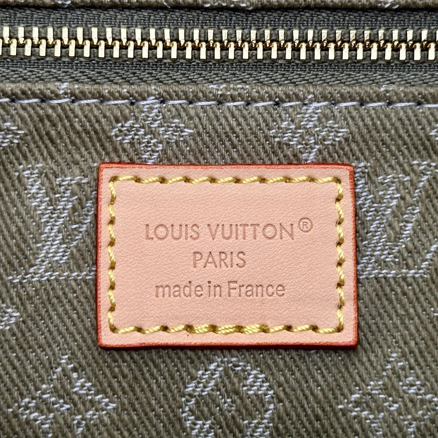 顶级原单 163动态芯片 M27623绿色 丹宁牛仔购物袋 Carryall Cargo 小号手袋 出自 Denim Rendez-Vous 系列 汲取应季灵感 演绎隽永风格 棉质包身搭载撞色皮革饰边与束带细节 此手袋缀饰金属件与标志性名牌 致敬路易威登制箱工艺传统 斜挎 肩背 手提皆宜 随心转换造型 尺寸 33.5 x 23 x 15 厘米