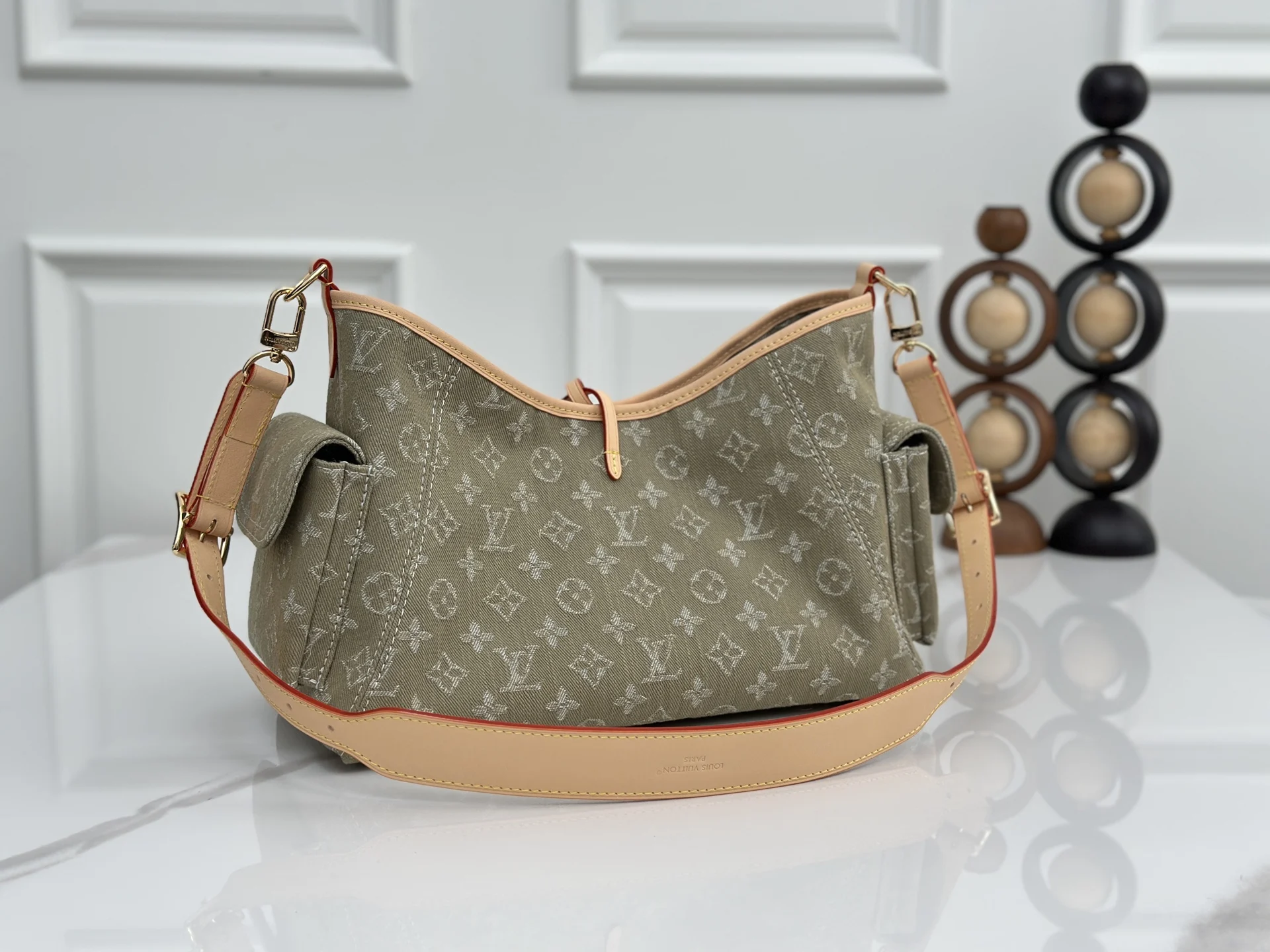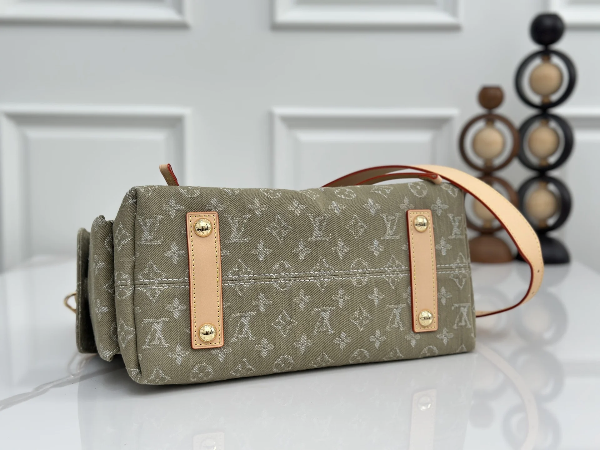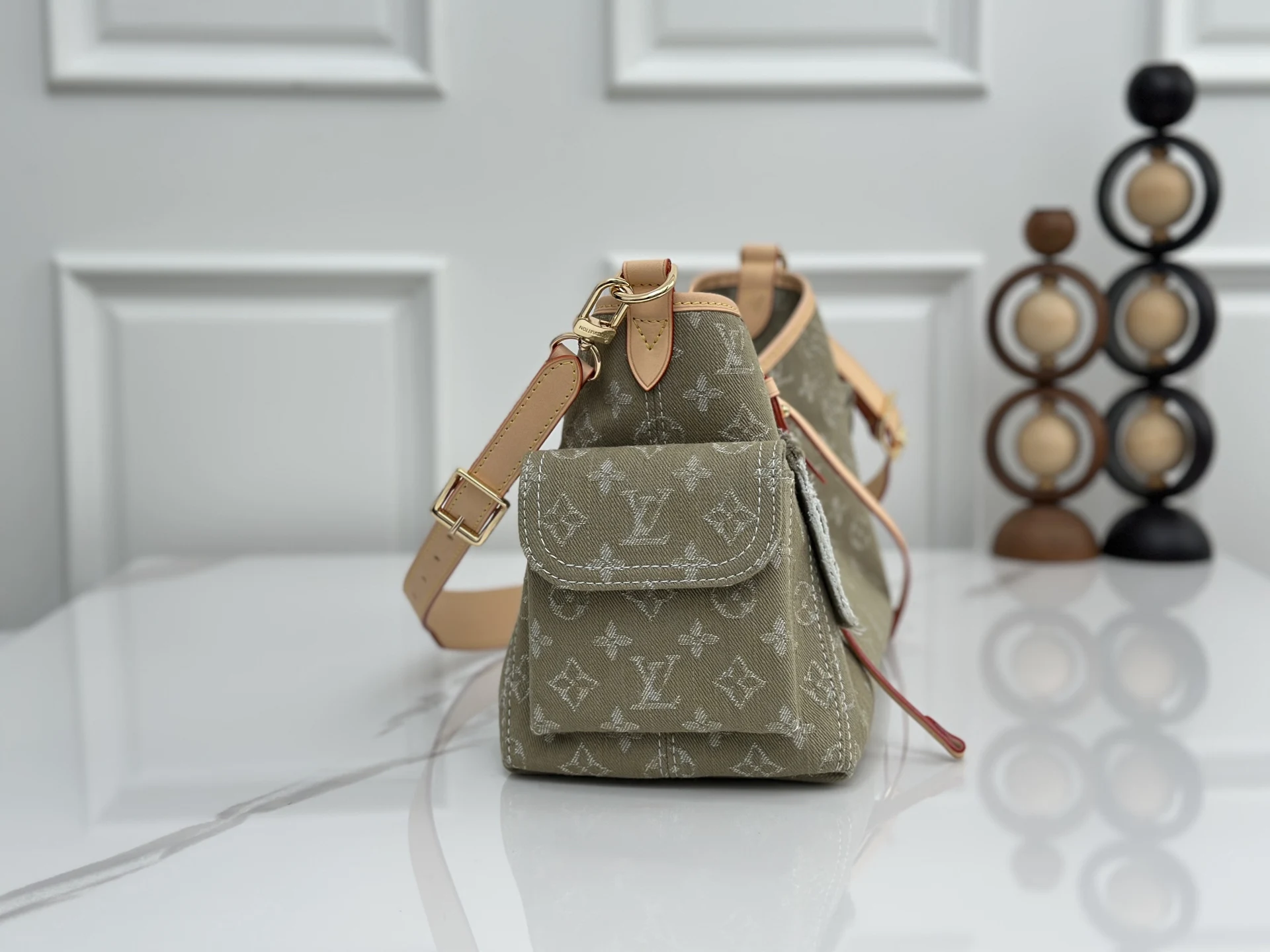 顶级原单 163动态芯片 M27623绿色 丹宁牛仔购物袋 Carryall Cargo 小号手袋 出自 Denim Rendez-Vous 系列 汲取应季灵感 演绎隽永风格 棉质包身搭载撞色皮革饰边与束带细节 此手袋缀饰金属件与标志性名牌 致敬路易威登制箱工艺传统 斜挎 肩背 手提皆宜 随心转换造型 尺寸 33.5 x 23 x 15 厘米