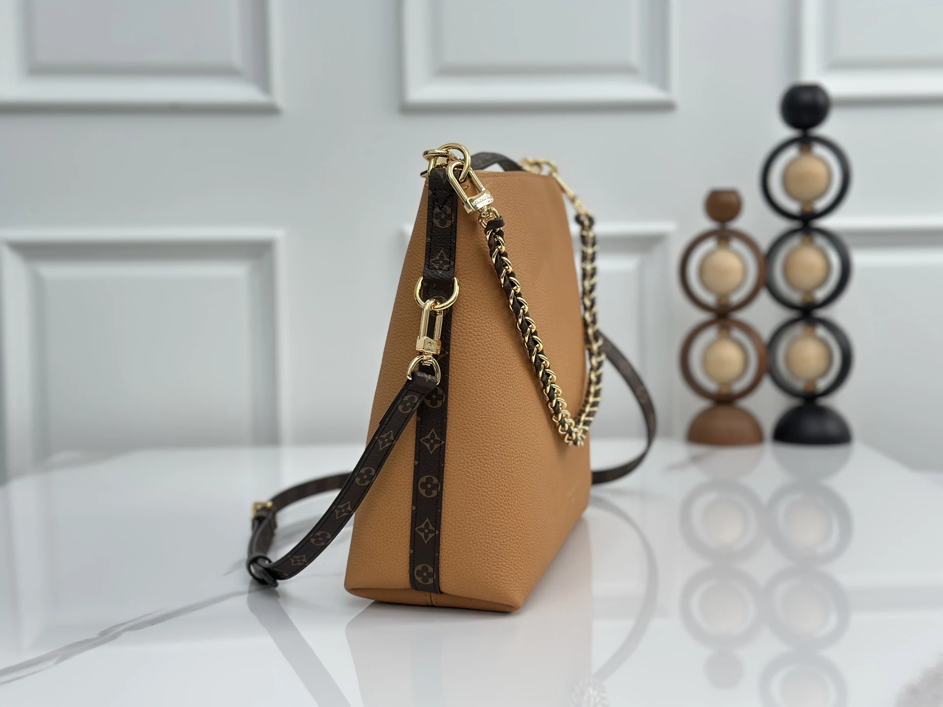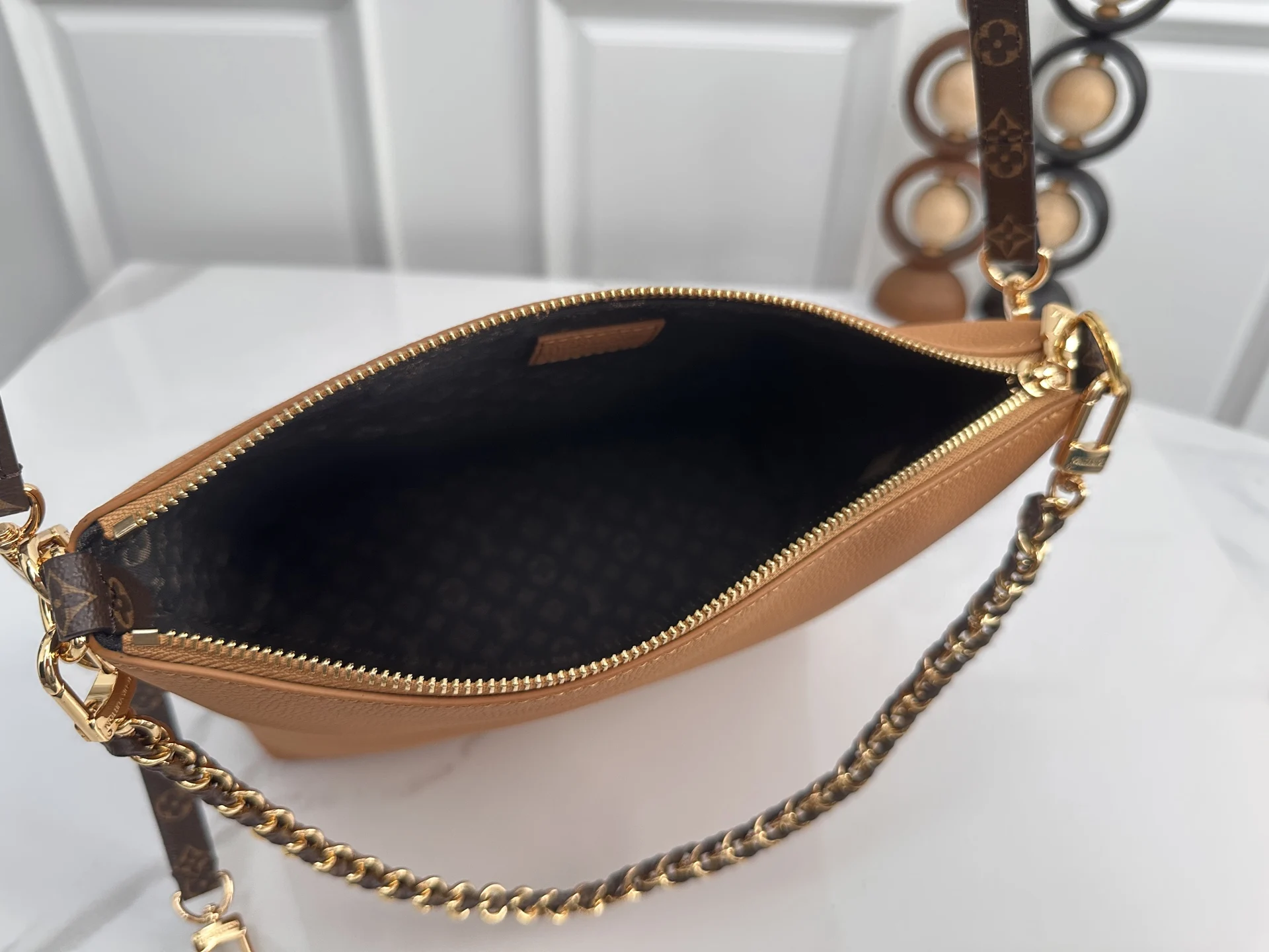 29195黑色 Multipass 手袋的灵感源自 2025 秋冬系列首次亮相的 Express 手袋 这款手袋采用随性垂坠的包型 搭配品牌标志性的 Monogram 帆布饰边 以耀目编织链条点缀 牛皮革涂层帆布饰边织物内衬金属件可收纳 11 寸平板电脑 智能手机 耳机 Clemence 夹 笔记本和太阳眼镜 链条 可拆卸 链条半长 30.0 厘米