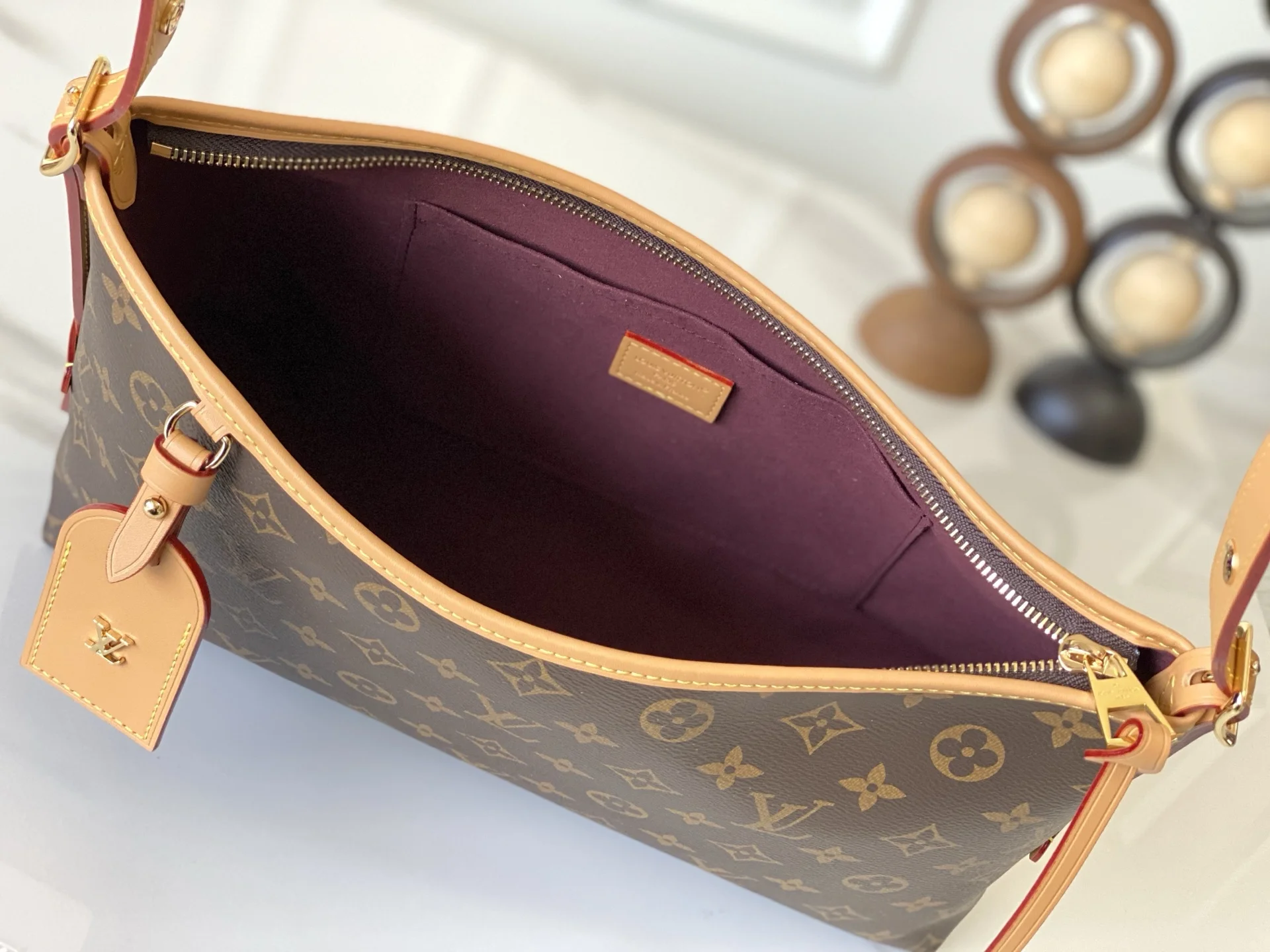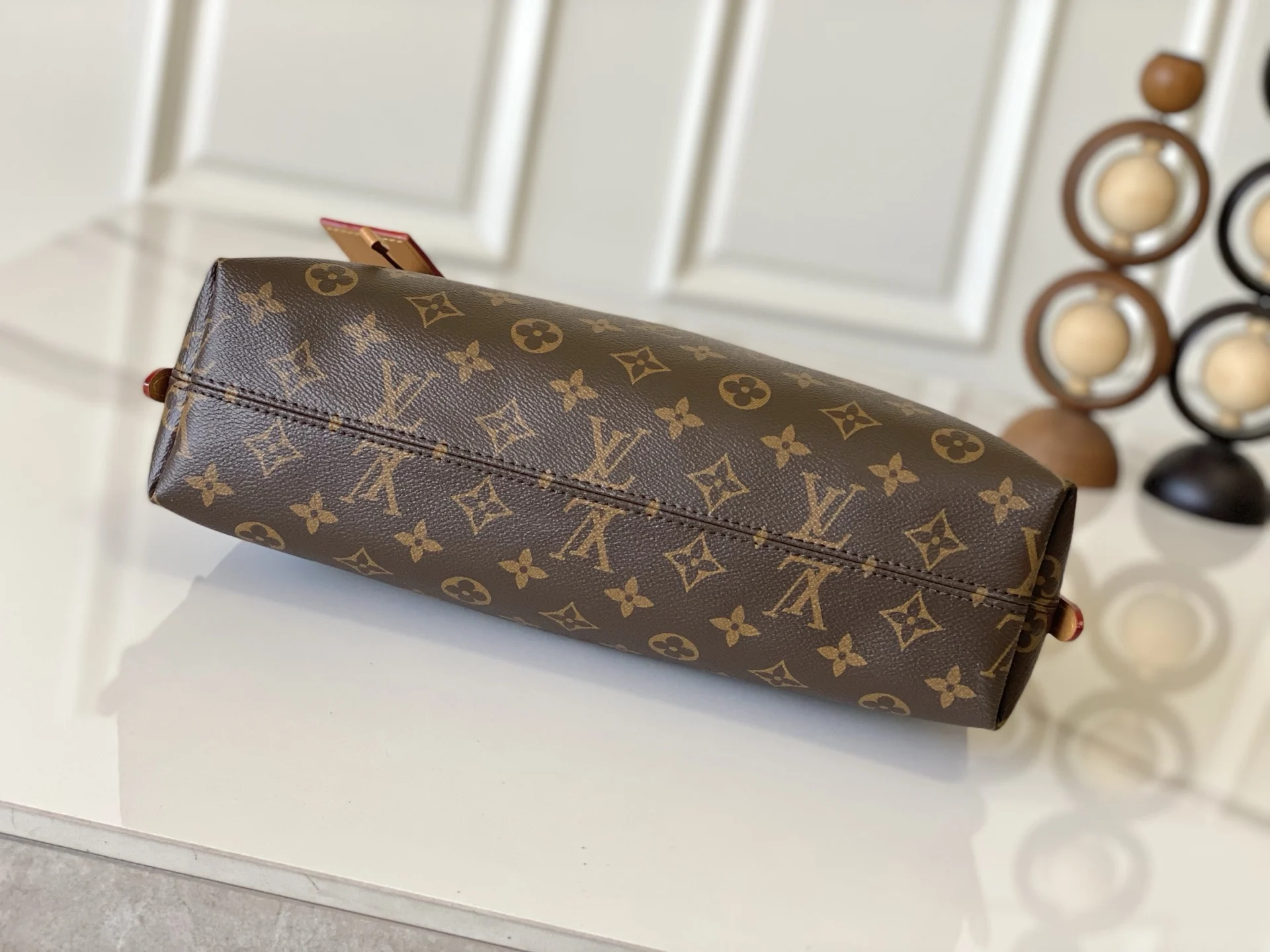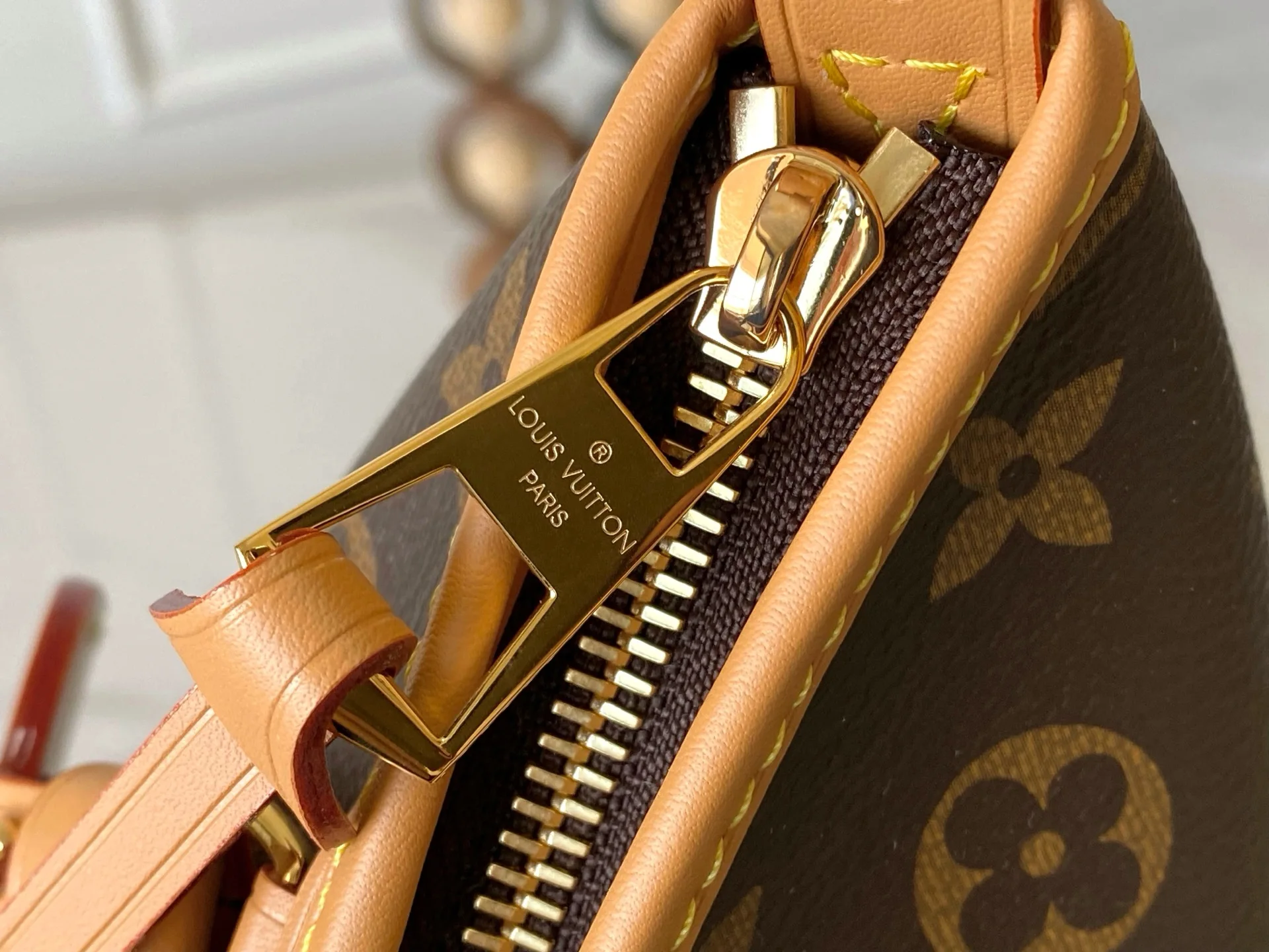 独家实拍 M28101老花 CarryAll EastWest手袋取材 Monogram 帆布和皮革饰边 成就都市生活的贴身伴侣 充裕构型设有齐整内层 大号内袋再添功能素 Monogram 帆布拉链手拿包通过皮革带固定,尺寸 20 x 10 x 33.5 厘米