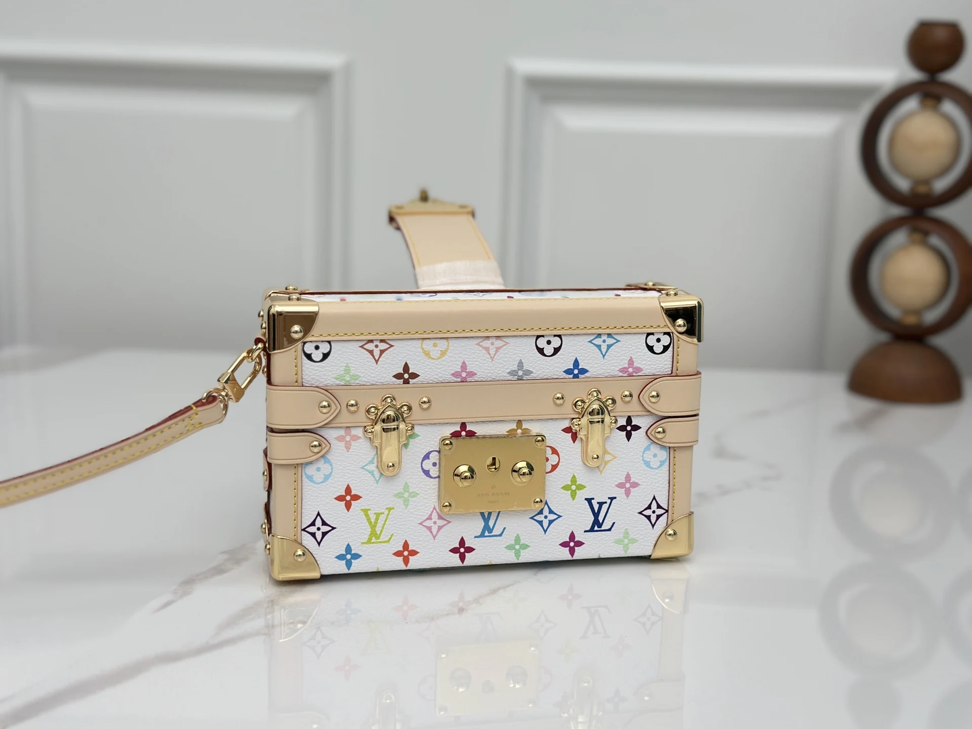 M28243白彩 村上隆硬盒子包 当季新款 PETITE MALLE 手袋 经典 Petite Malle 手袋加入路易威登 Monogram 图案问世 130 周年的庆贺之列 为 Monogram 帆布染上鲜明色彩 搭配行李箱风格包角和传统 S-lock 锁扣等标志性细节 内部标签点明庆贺系列身份 系上长肩带即可斜挎 12.5 x 6 x 20 厘..