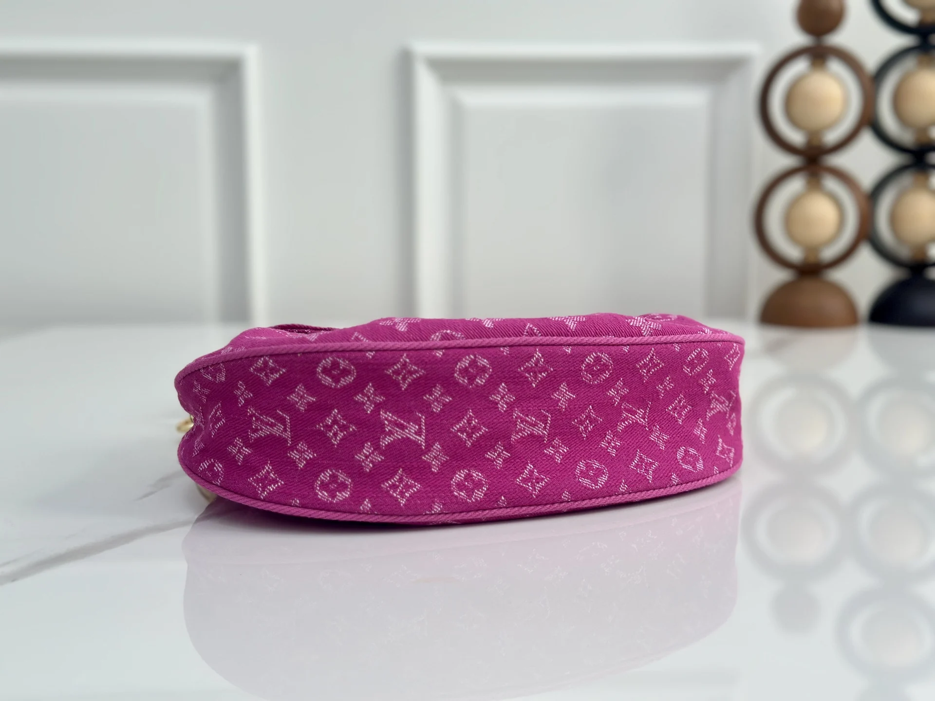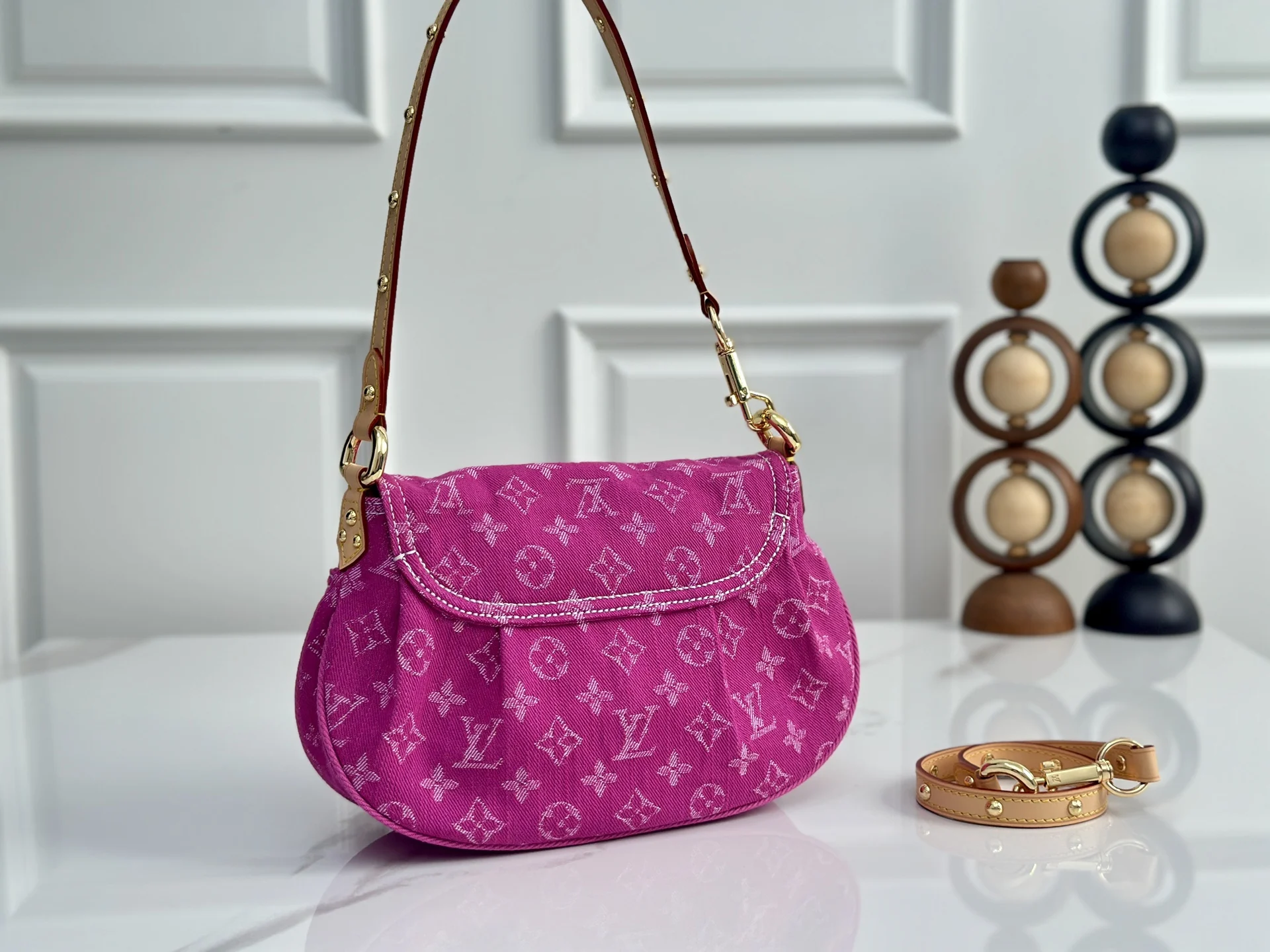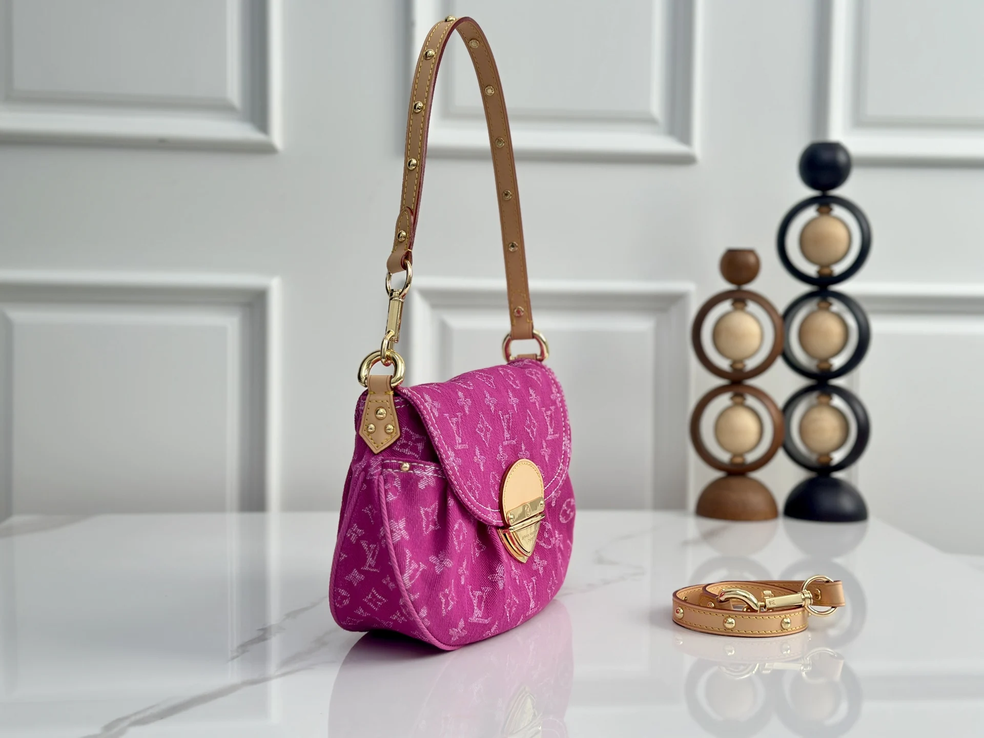 M28291本款 Rendez-Vous 系列 Sunset 手袋演绎当代风尚 鲜亮的丹宁布包身缀饰金属件 呼应当季色调 醒目插扣为百搭设计点睛 斜挎 肩背或手提皆宜 随心演绎多样风格 包带半长 23.0 厘米