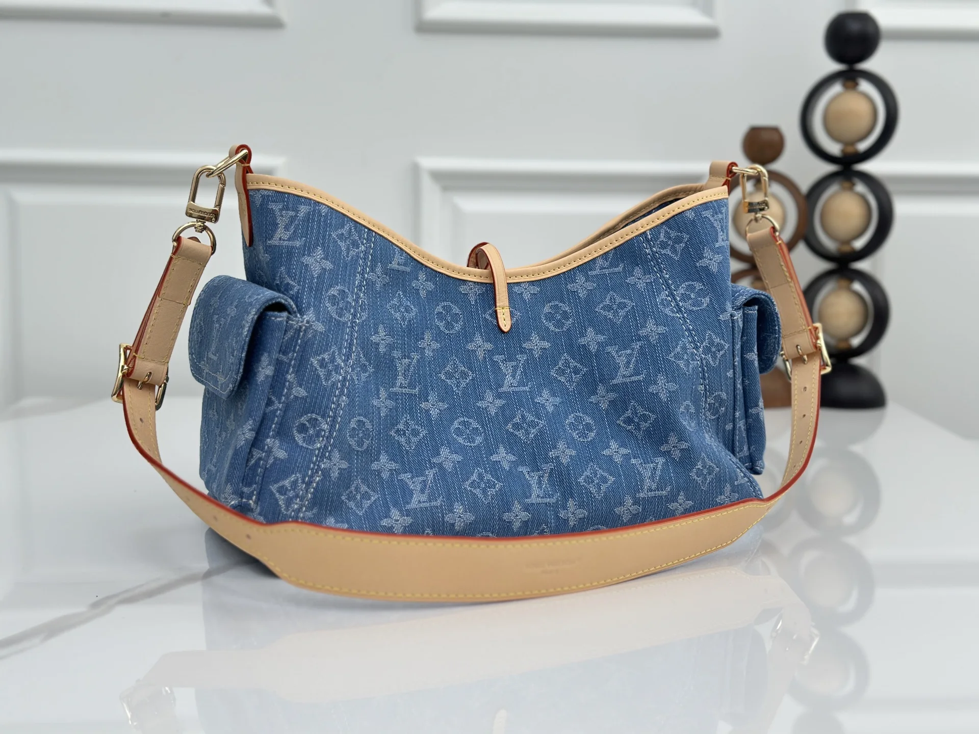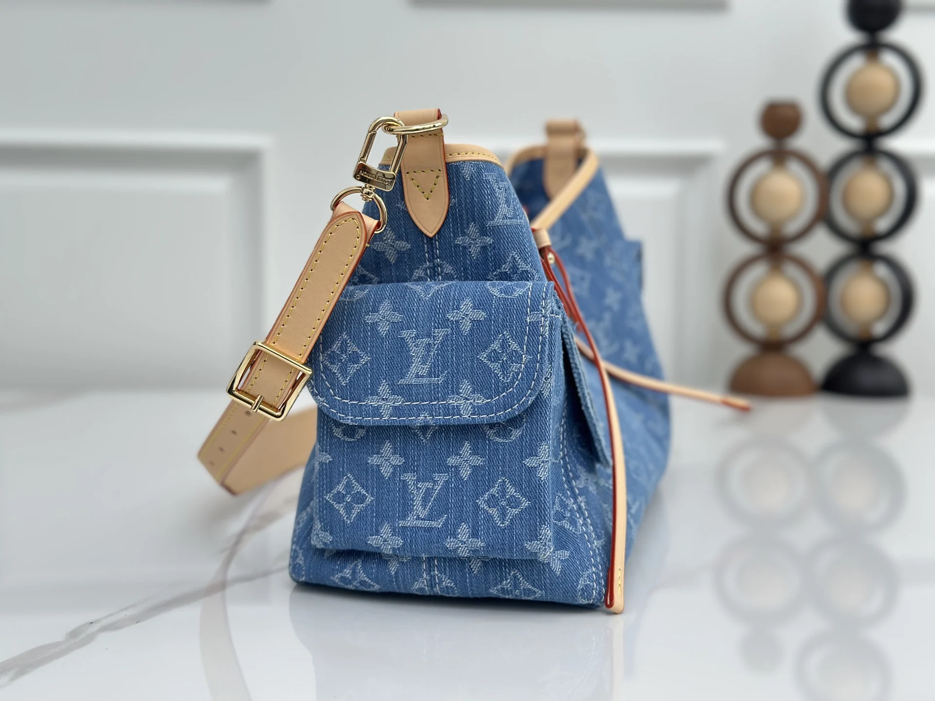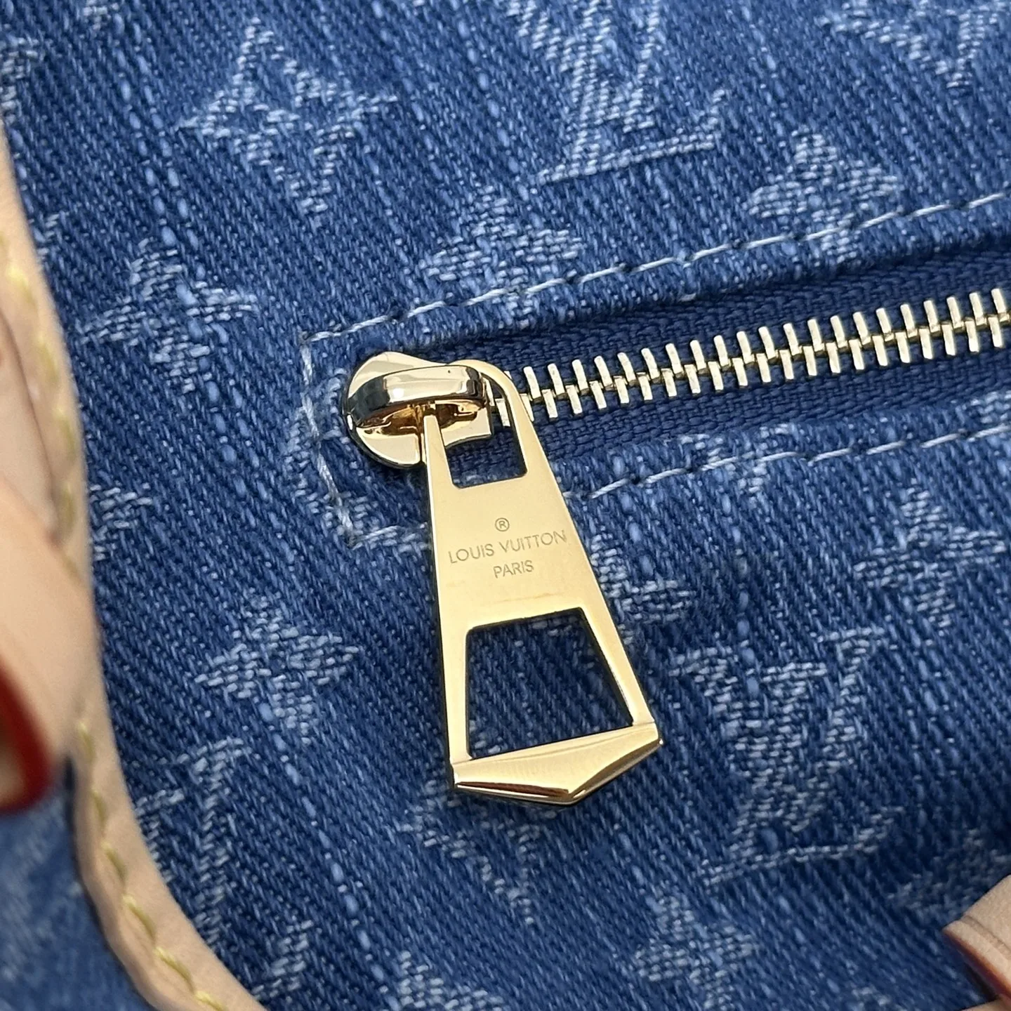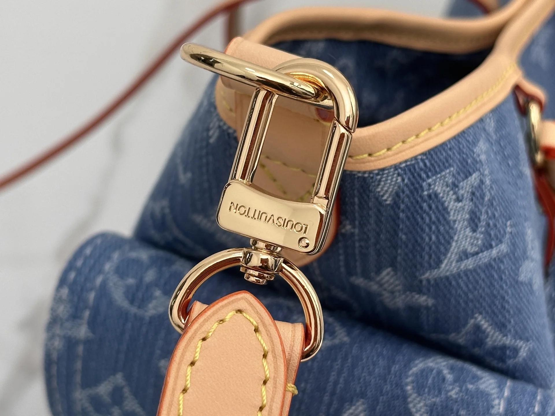 顶级原单 163动态芯片 M28287蓝色 丹宁牛仔购物袋 Carryall Cargo 小号手袋 出自 Denim Rendez-Vous 系列 汲取应季灵感 演绎隽永风格 棉质包身搭载撞色皮革饰边与束带细节 此手袋缀饰金属件与标志性名牌 致敬路易威登制箱工艺传统 斜挎 肩背 手提皆宜 随心转换造型 尺寸 33.5 x 23 x 15 厘米