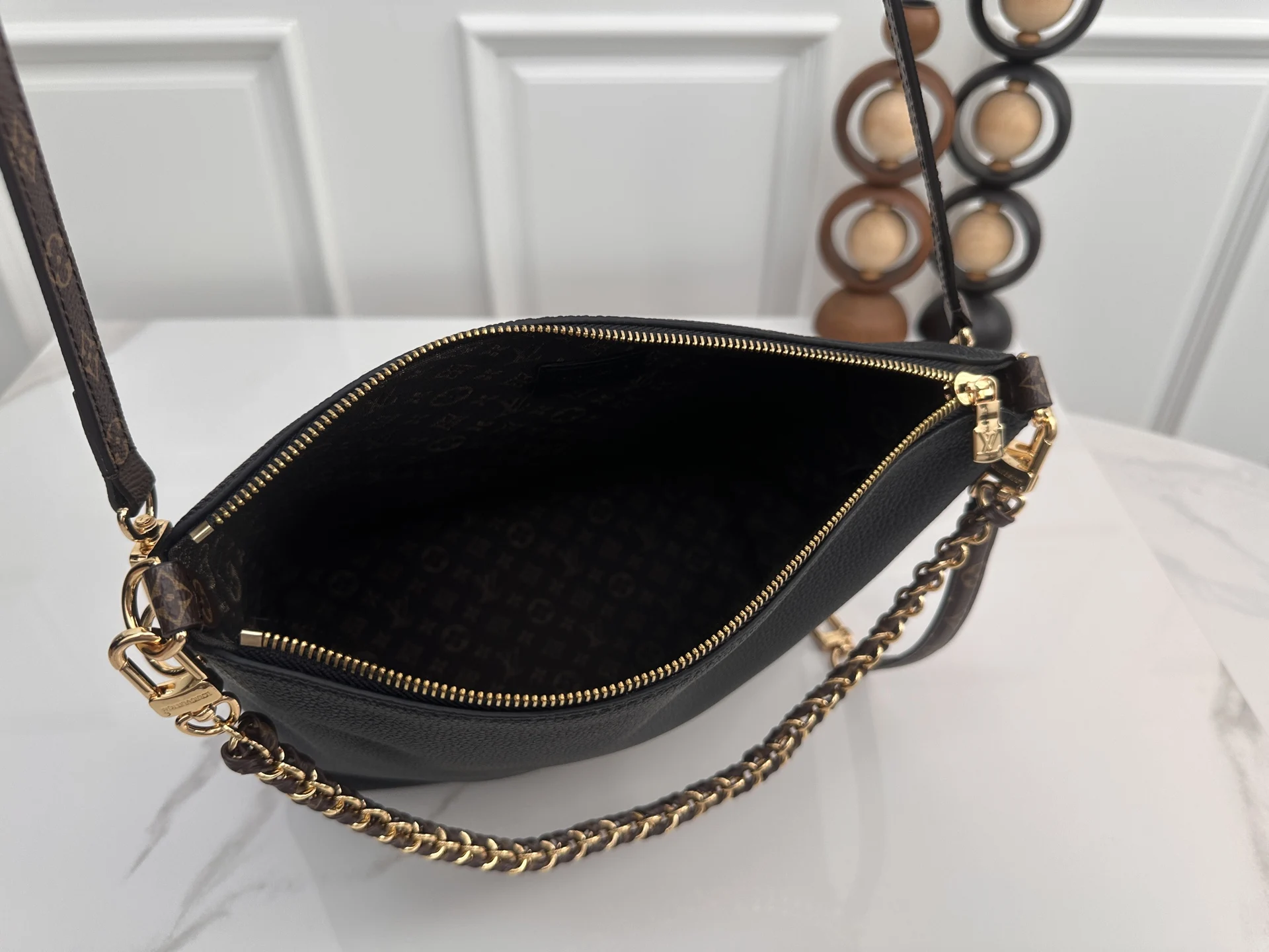 顶级原单 变码芯片 本款M29195黑色 M28029棕色 Multipass 手袋的灵感源自 2025 秋冬系列首次亮相的 Express 手袋 这款手袋采用随性垂坠的包型 搭配品牌标志性的 Monogram 帆布饰边 以耀目编织链条点缀 可以多种方式背携 并可容纳平板电脑等日常所需