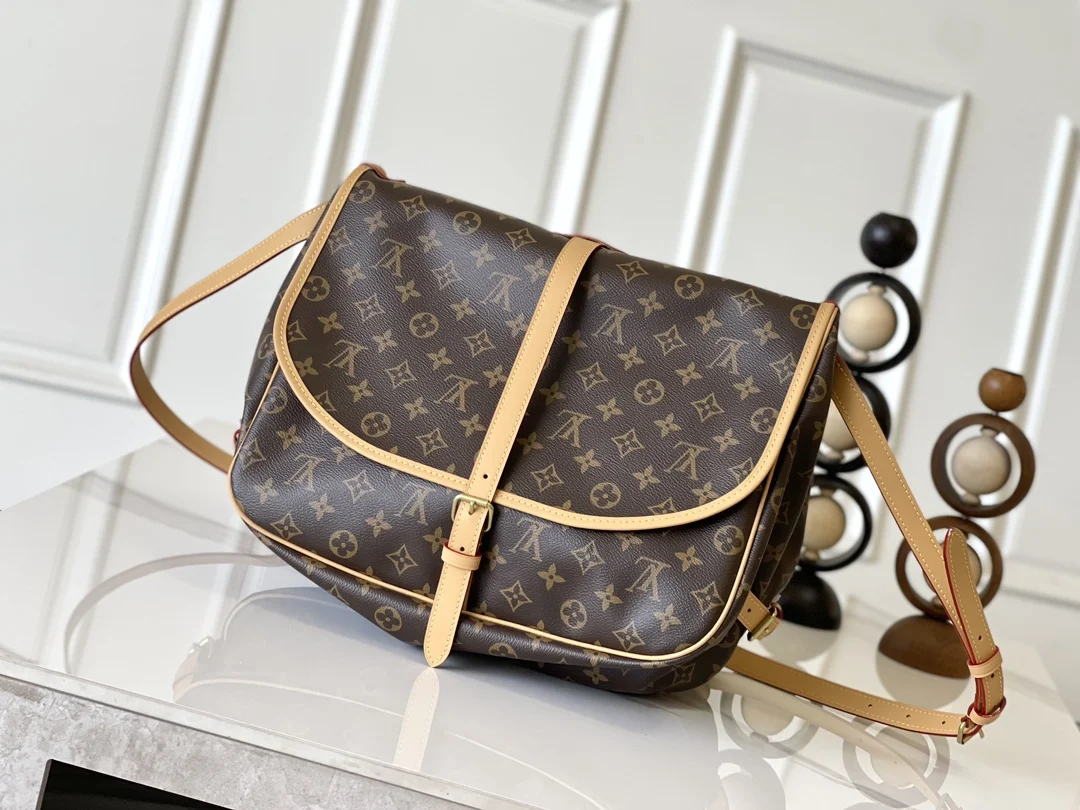 采用 Monogram 帆布制作的 Saumur 中号手袋展现了路易威登自然的优雅气质 随意斜挎更显时尚感染力 精致的牛皮饰边勾勒出极富女人味的外形