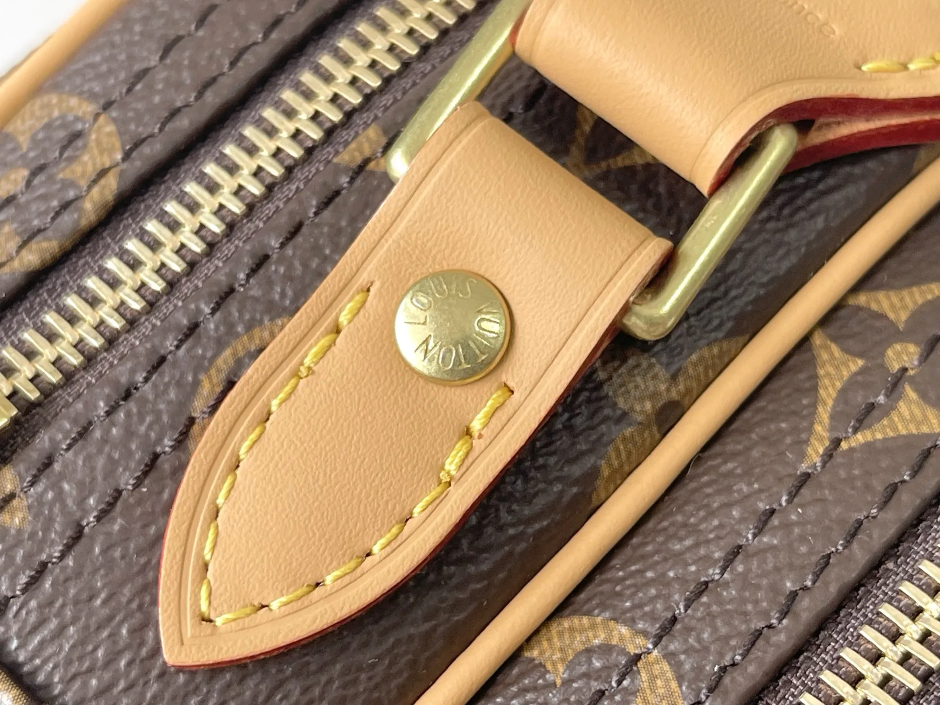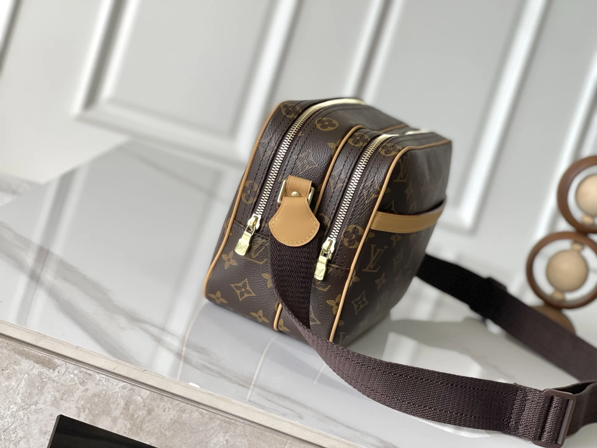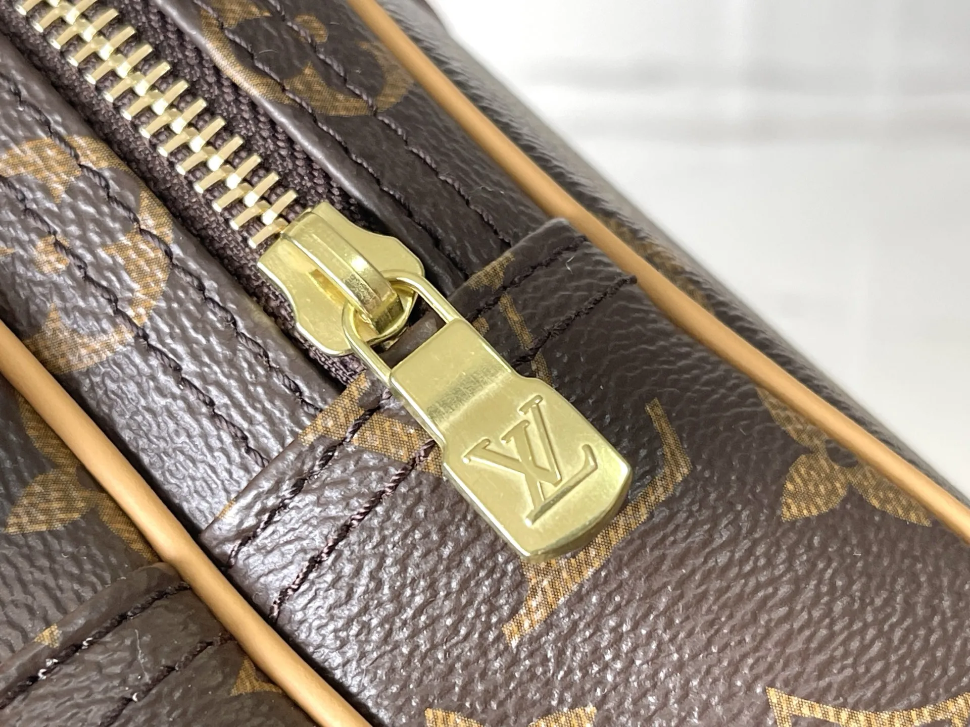M45254老花/163芯片 VINTAGE 记者包 中古包相机包系列 中古包系列 经典斜挎包 男士邮差包相机包 此款手袋采用monogram帆布与变色皮贴饰 中古老花配黄皮四角包边小挎包皮肩拖男士邮差包相机包 可斜挎 尺寸 27 19cm