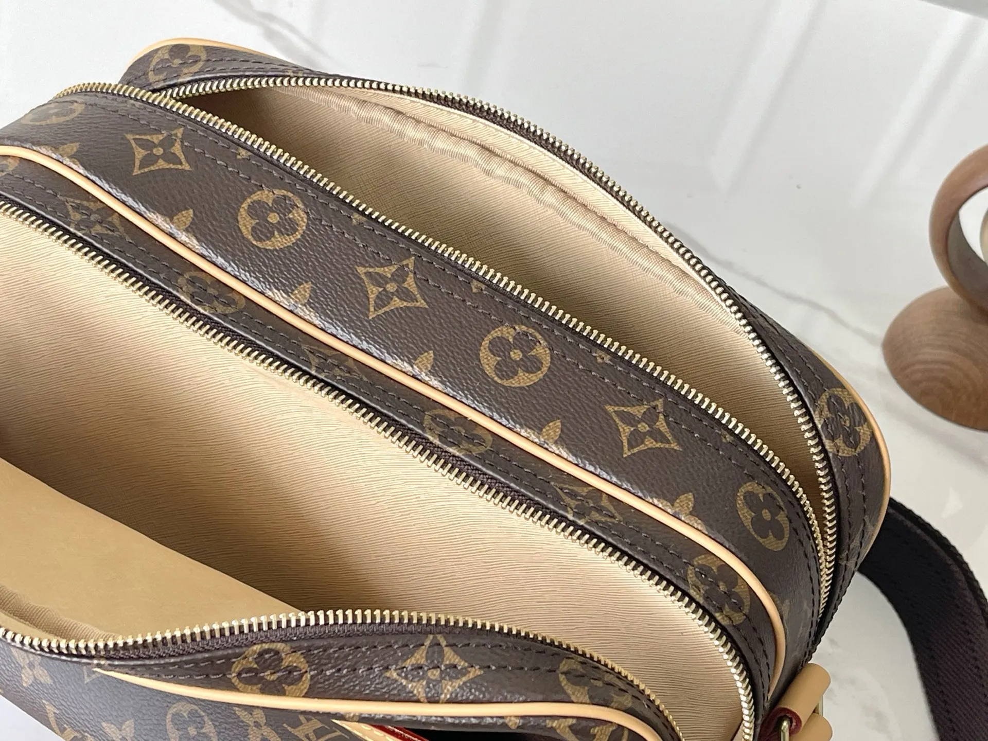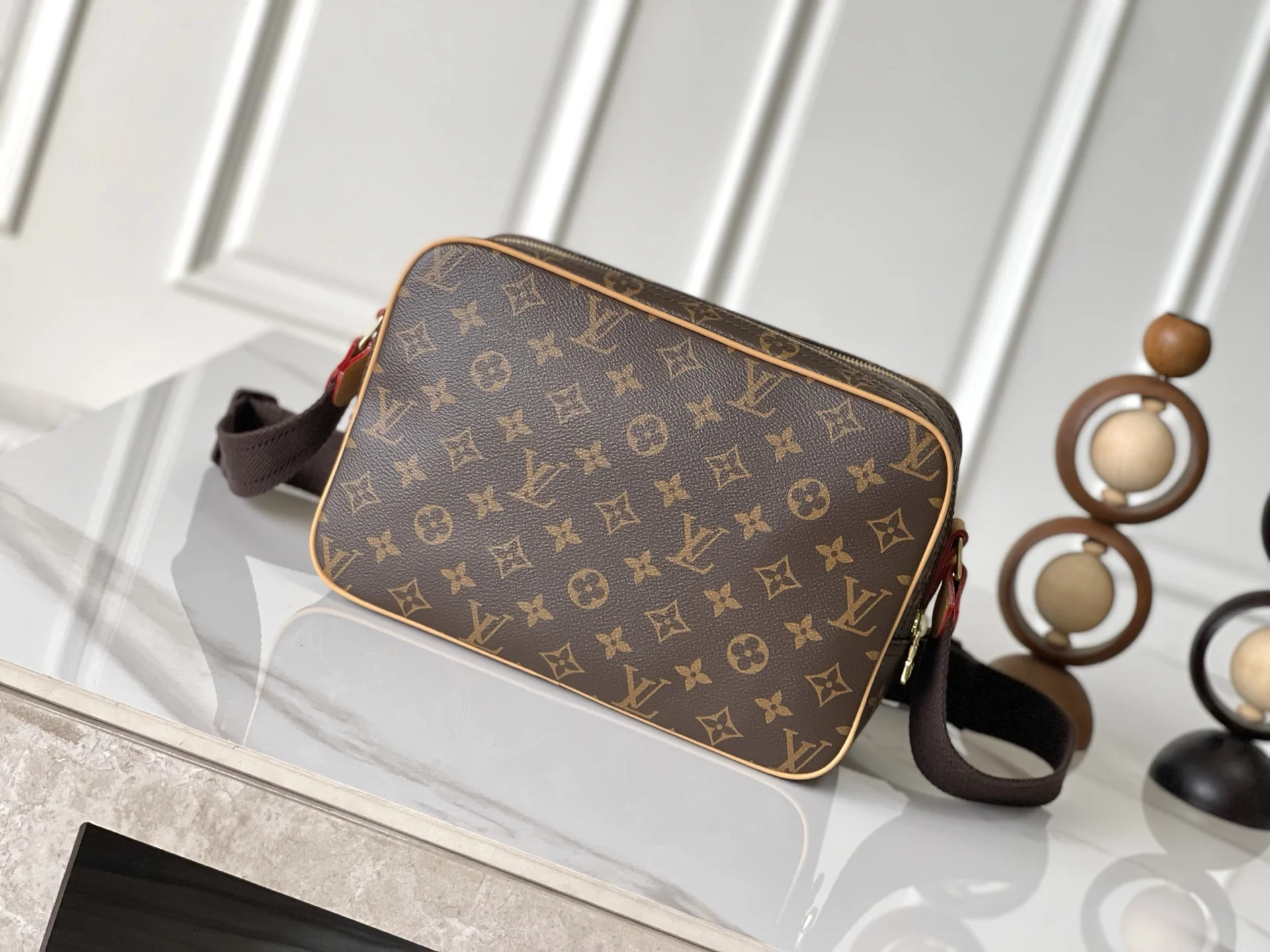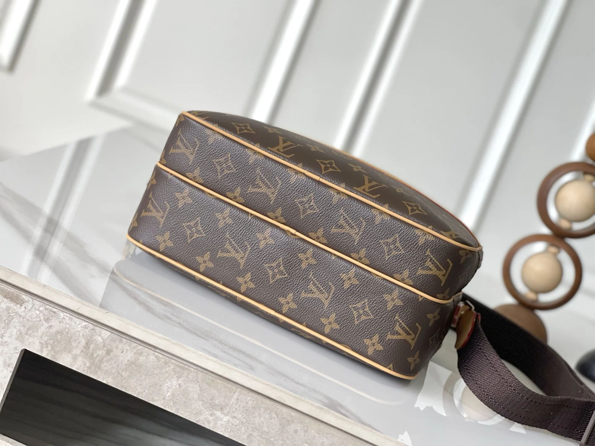 M45254老花/163芯片 VINTAGE 记者包 中古包相机包系列 中古包系列 经典斜挎包 男士邮差包相机包 此款手袋采用monogram帆布与变色皮贴饰 中古老花配黄皮四角包边小挎包皮肩拖男士邮差包相机包 可斜挎 尺寸 27 19cm