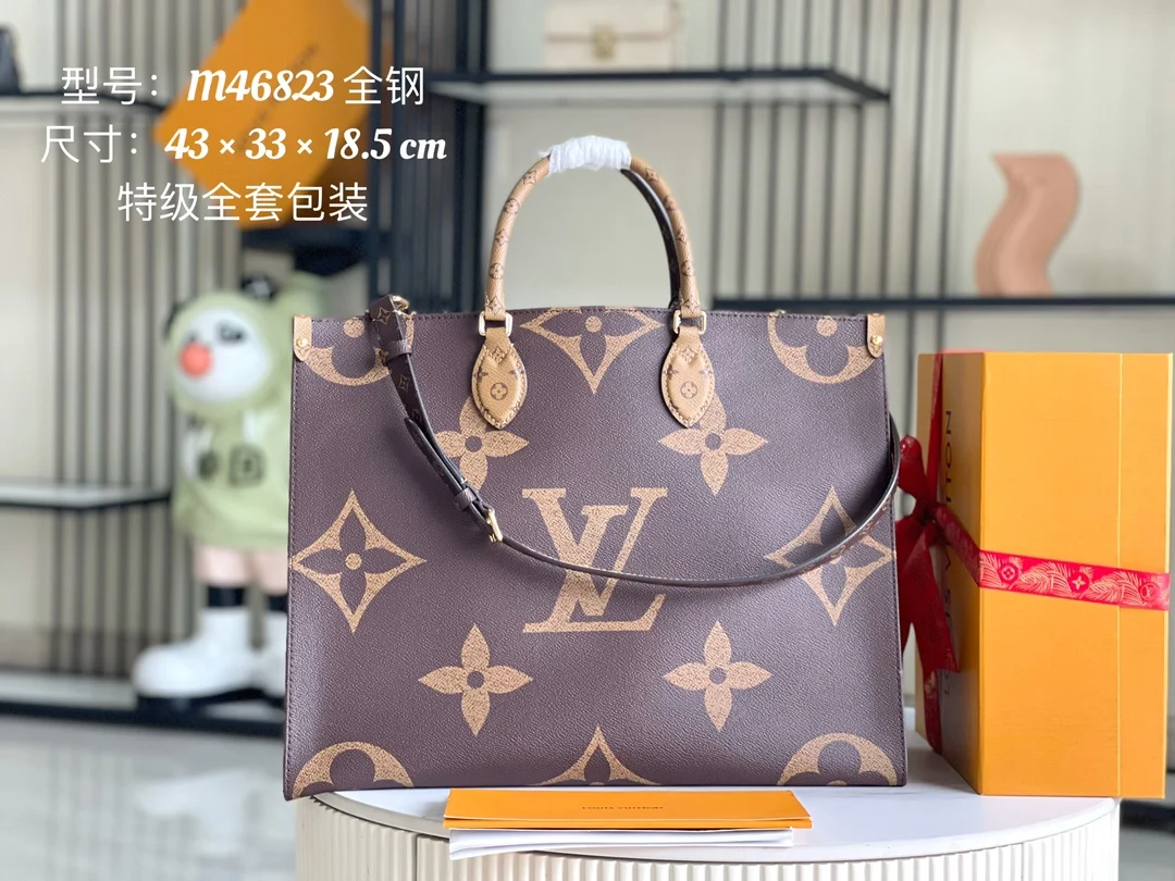 特级全钢五金 原厂皮 M46823 变码芯片 皮料是正品代工厂意大利A级皮料 特级正品 :所谓的特级正品 是在于品质 五金 面料 手工 油边 A级出品 拍摄图跟产品一致丶配图上的全套包装.尺寸:43x33x18.5CM