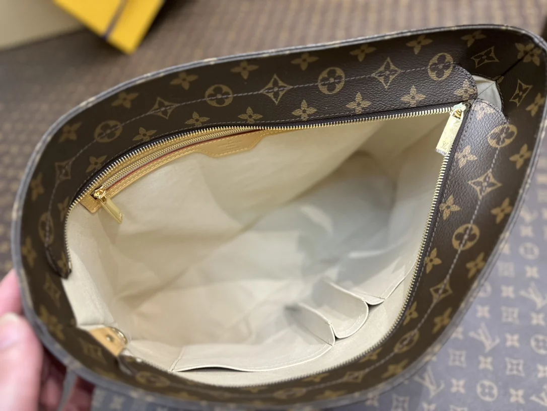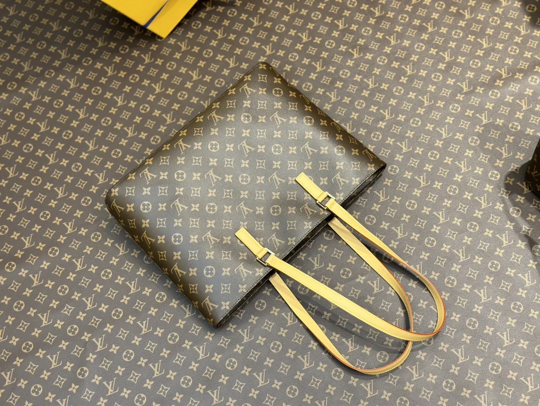M51155 Vivian luco菜篮子 外层采用Monogram帆布一织物内衬一天然牛皮饰边 经典柔软Monogram面料搭配变色黄皮饰边 以一个日常购物完会拿到的购物袋为蓝本展开设计 小牛皮做材质制作 配以变色皮手柄及内袋细节 大容量包身 通勤包又一新选择 Size:30*40.5*10.5